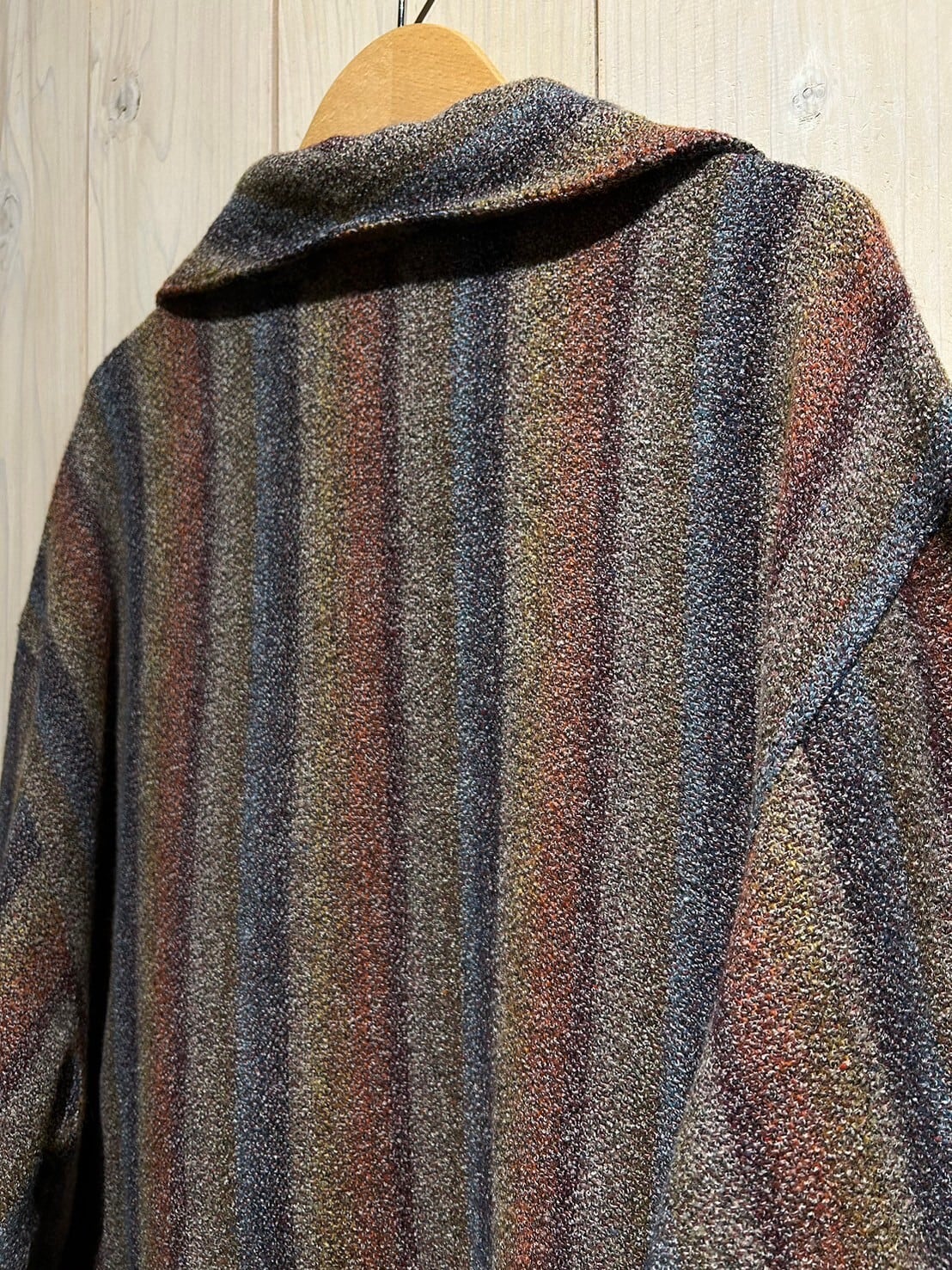 多彩な色使いによる美しいストライプをニッティングによって表現した、メランジニットのガウンジャケット。