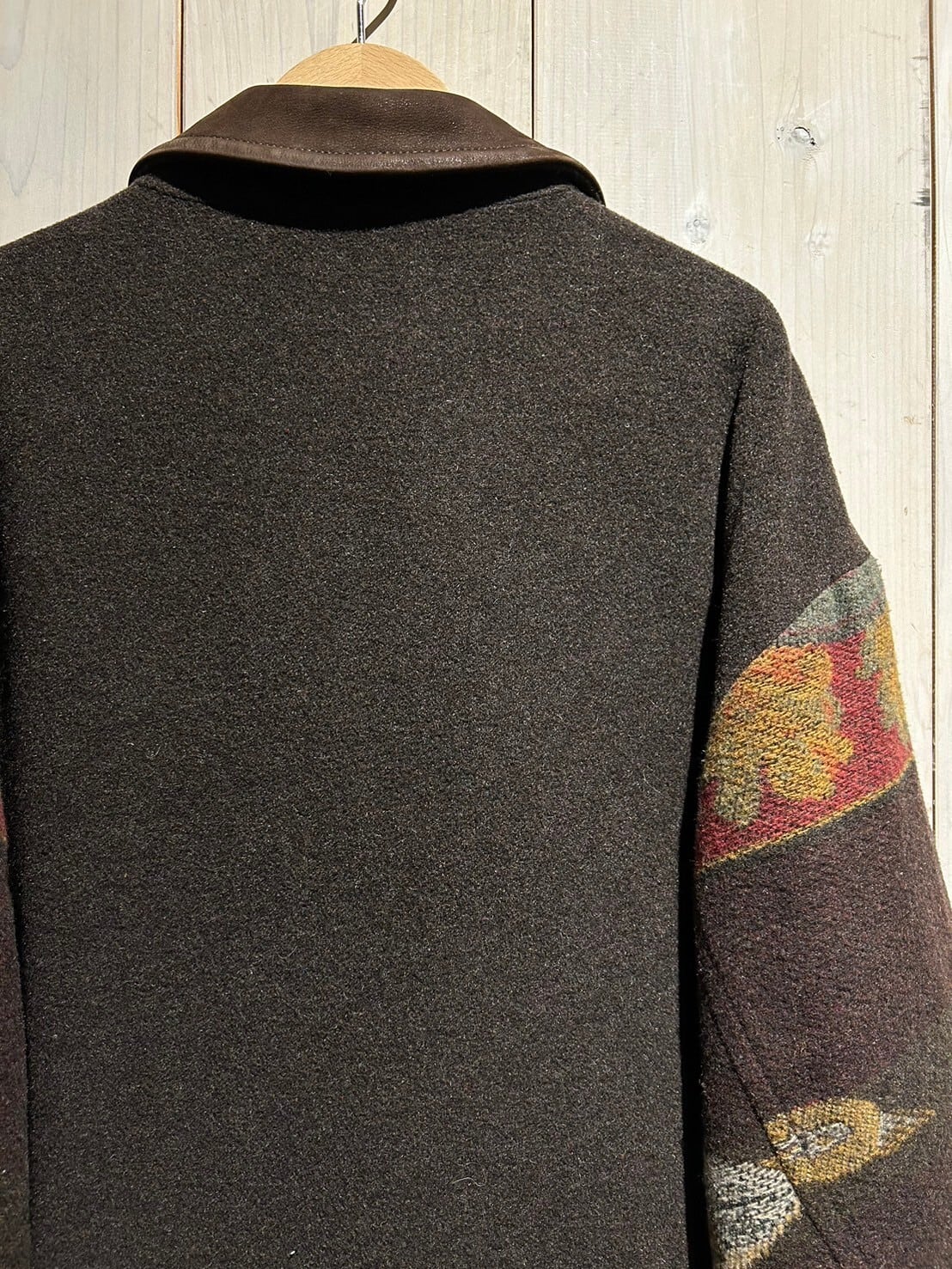 襟には上質な柔らかなレザーを切り替え、首元の摩耗に耐えうるディテール。この上質な仕上がりに加えてダメージや汚れ等がが無いことが魅力。ヴィンテージにおいてウールの穴あきや縮みは非常に多く、コンディションが良好なものって本当に少ない…