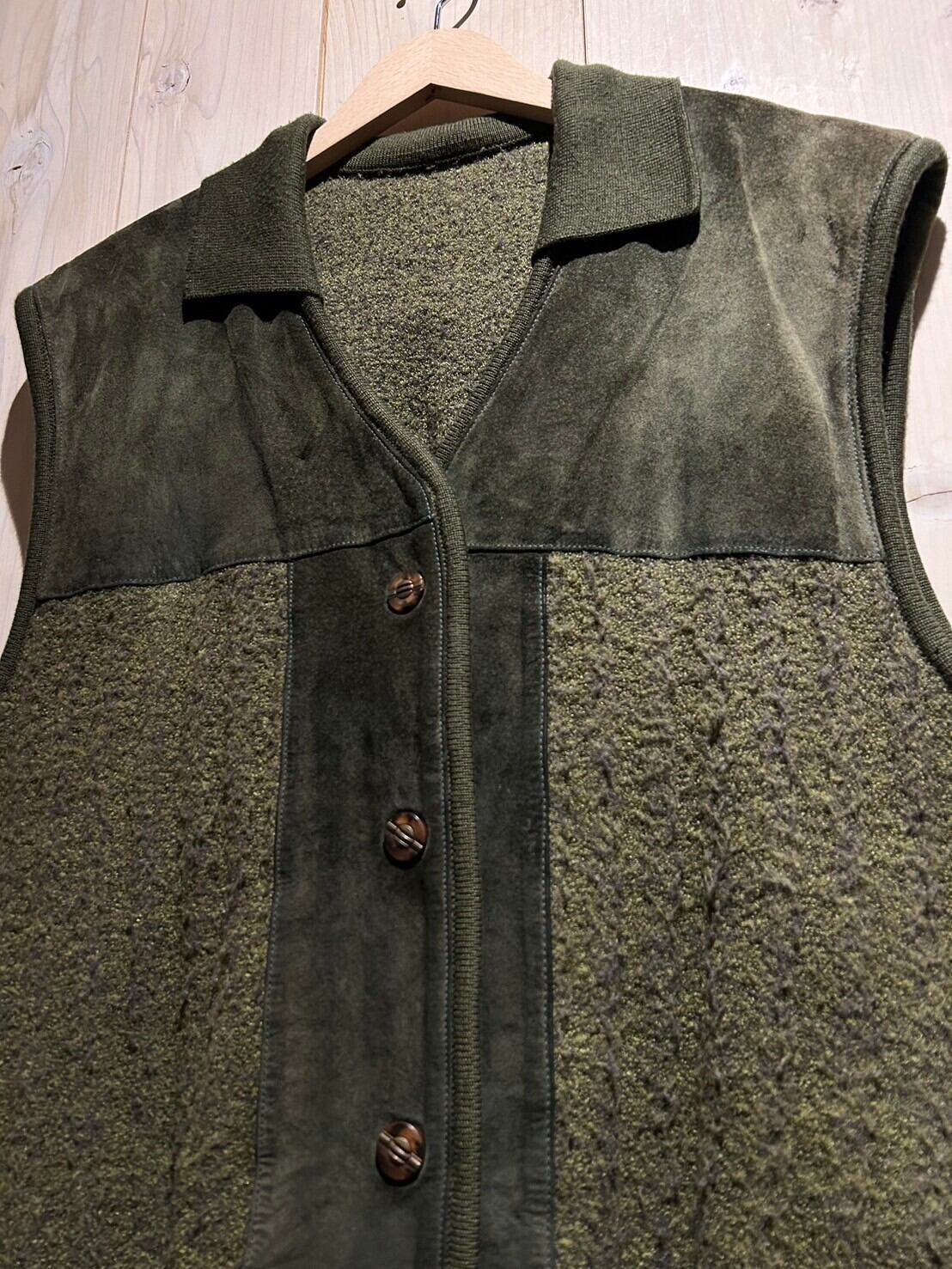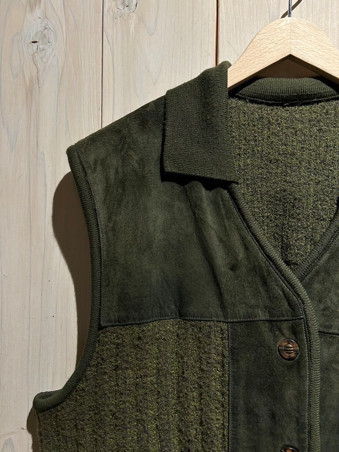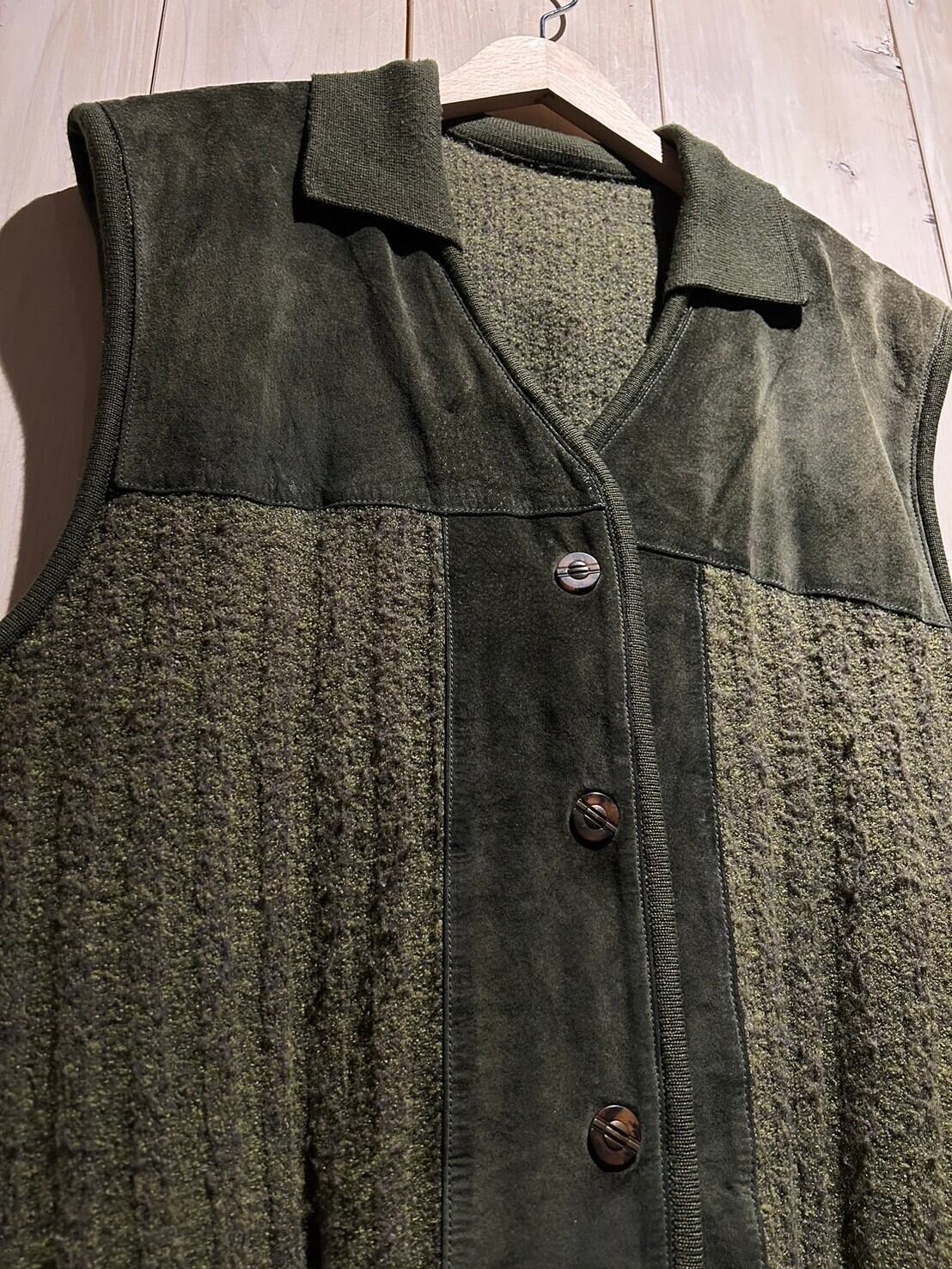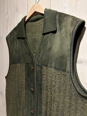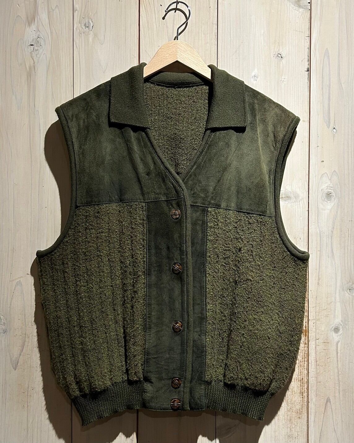 フワッと柔らかなニットのボディに、しっとりとしなやかなスエードレザーを切り替えたニットベスト。
