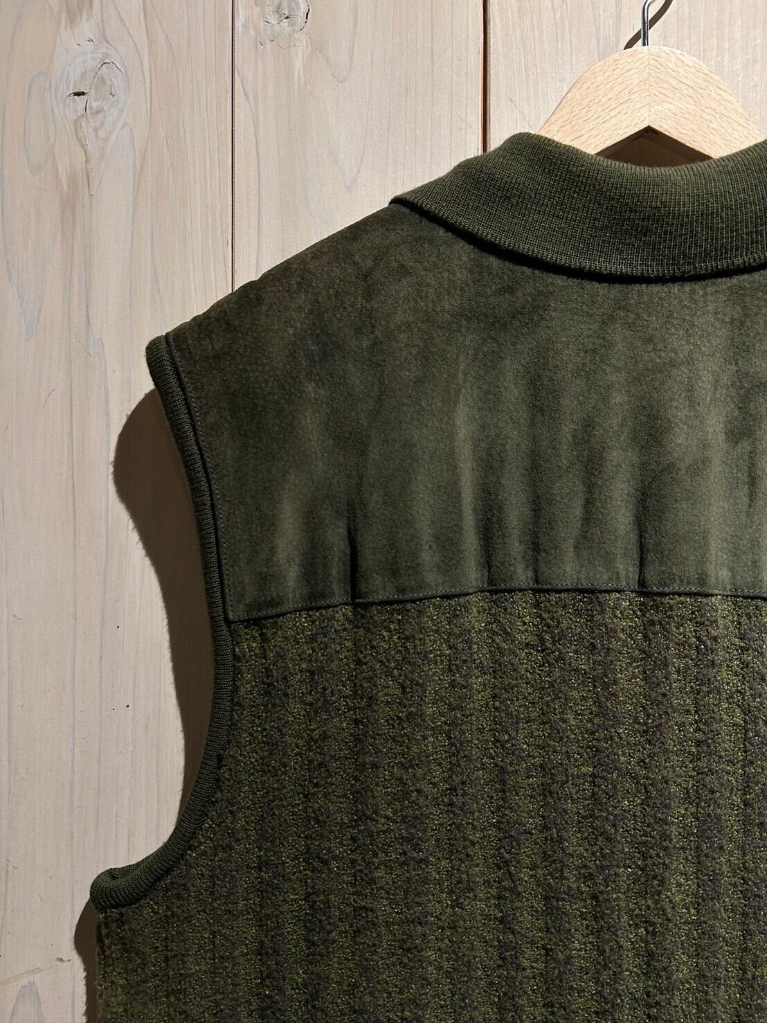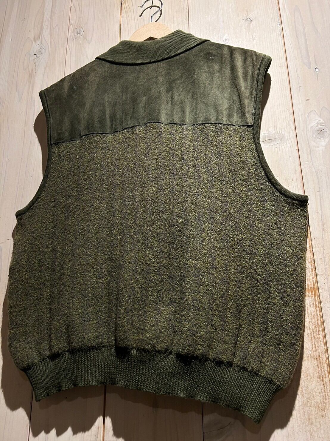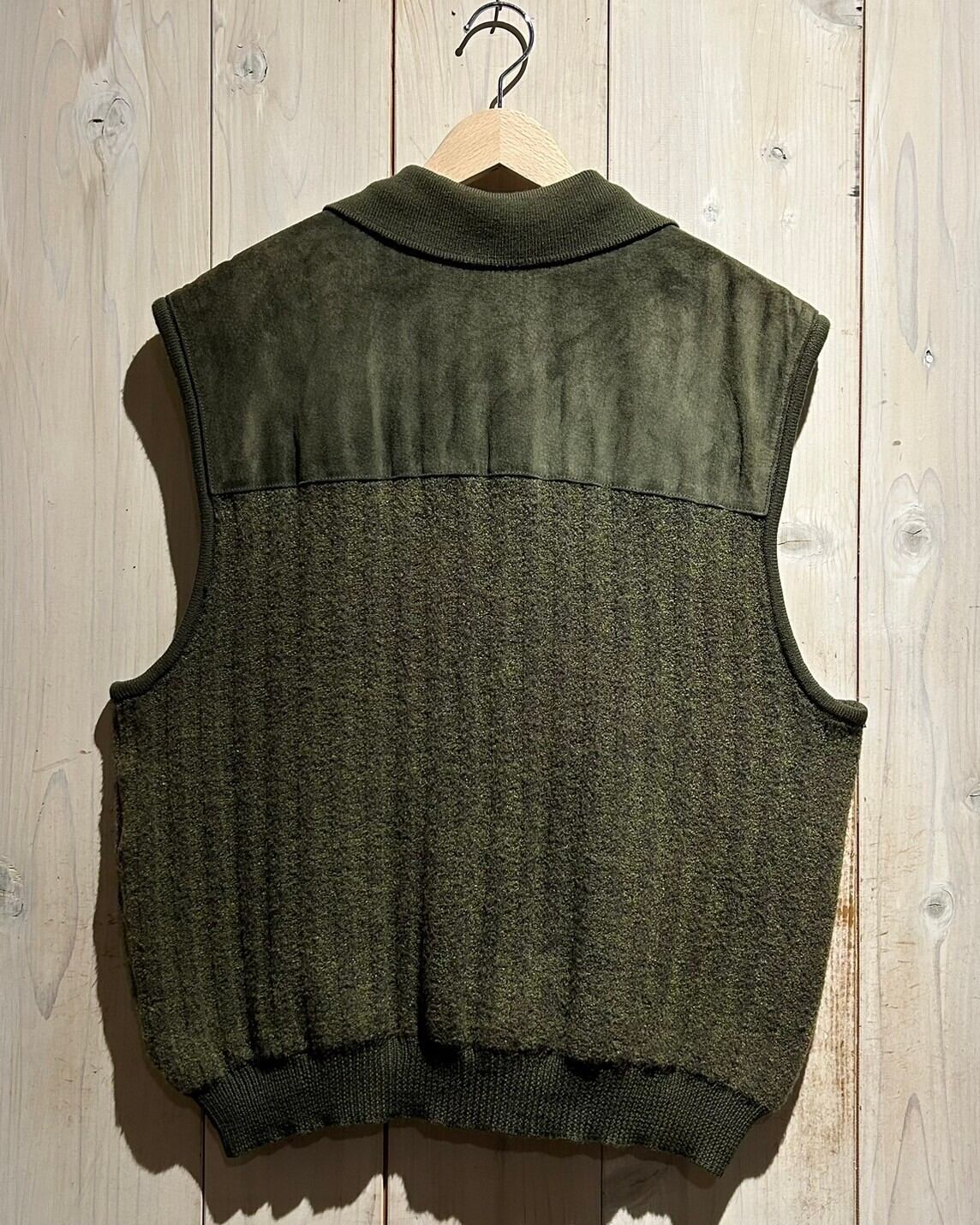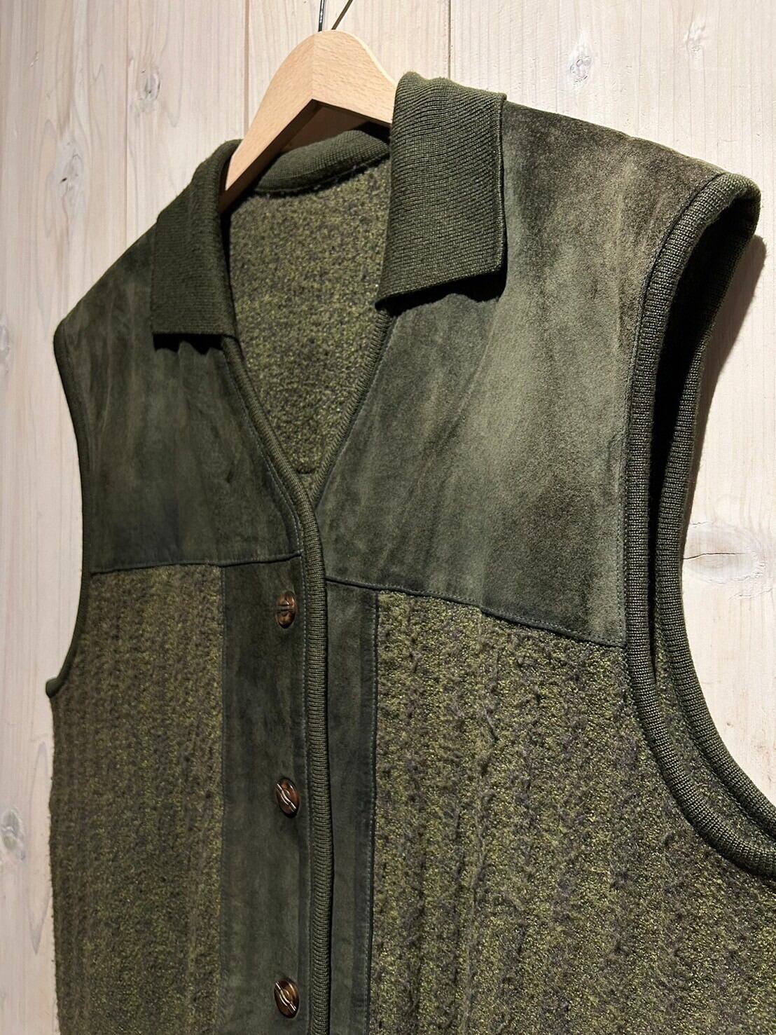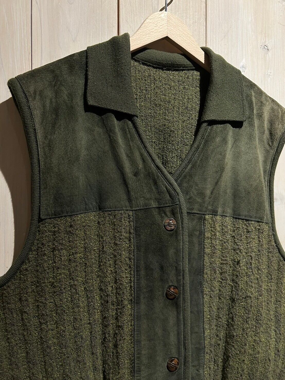 フワッと柔らかなニットのボディに、しっとりとしなやかなスエードレザーを切り替えたニットベスト。