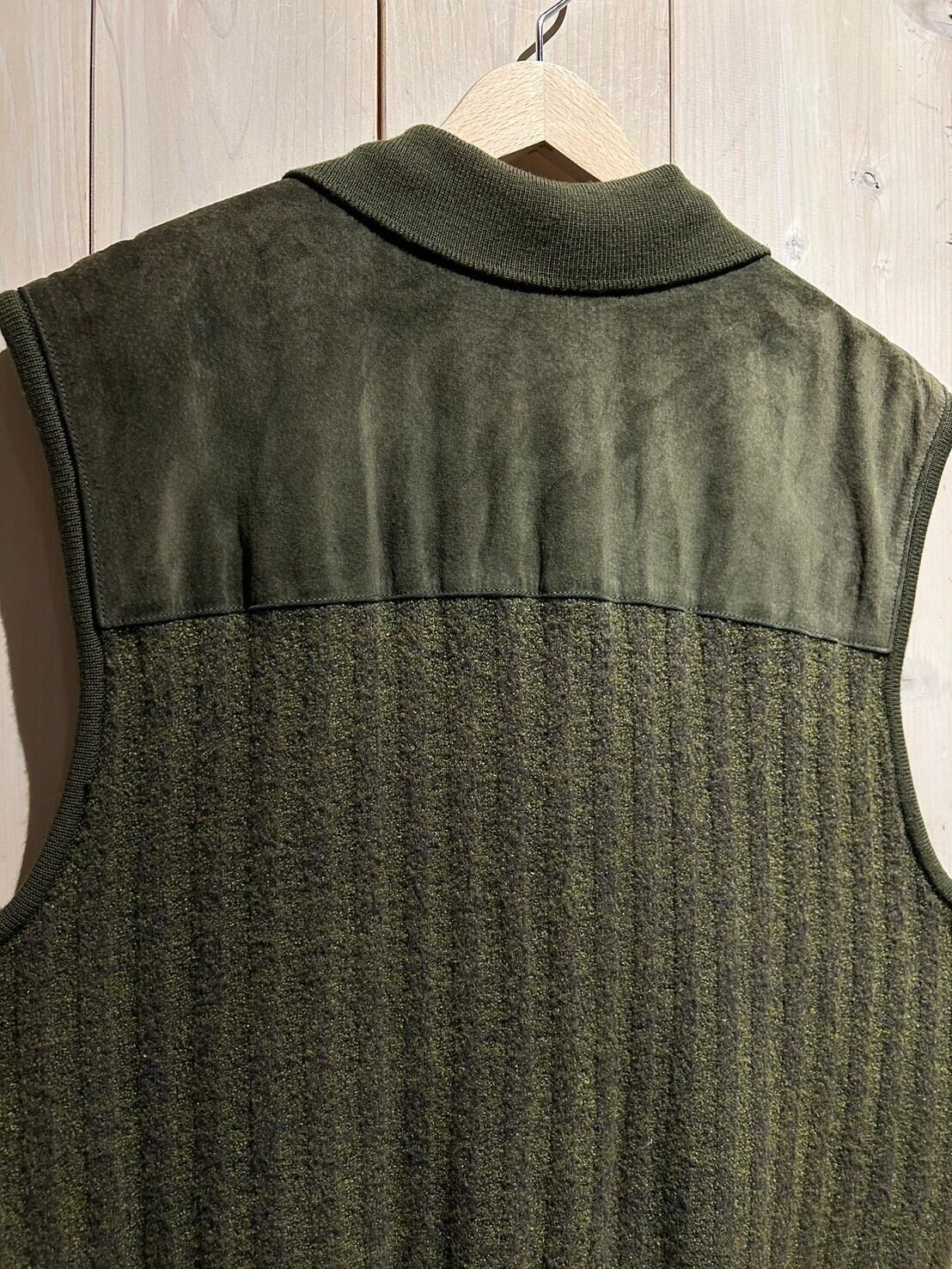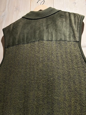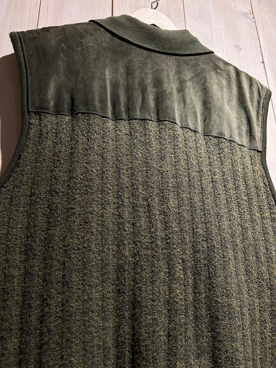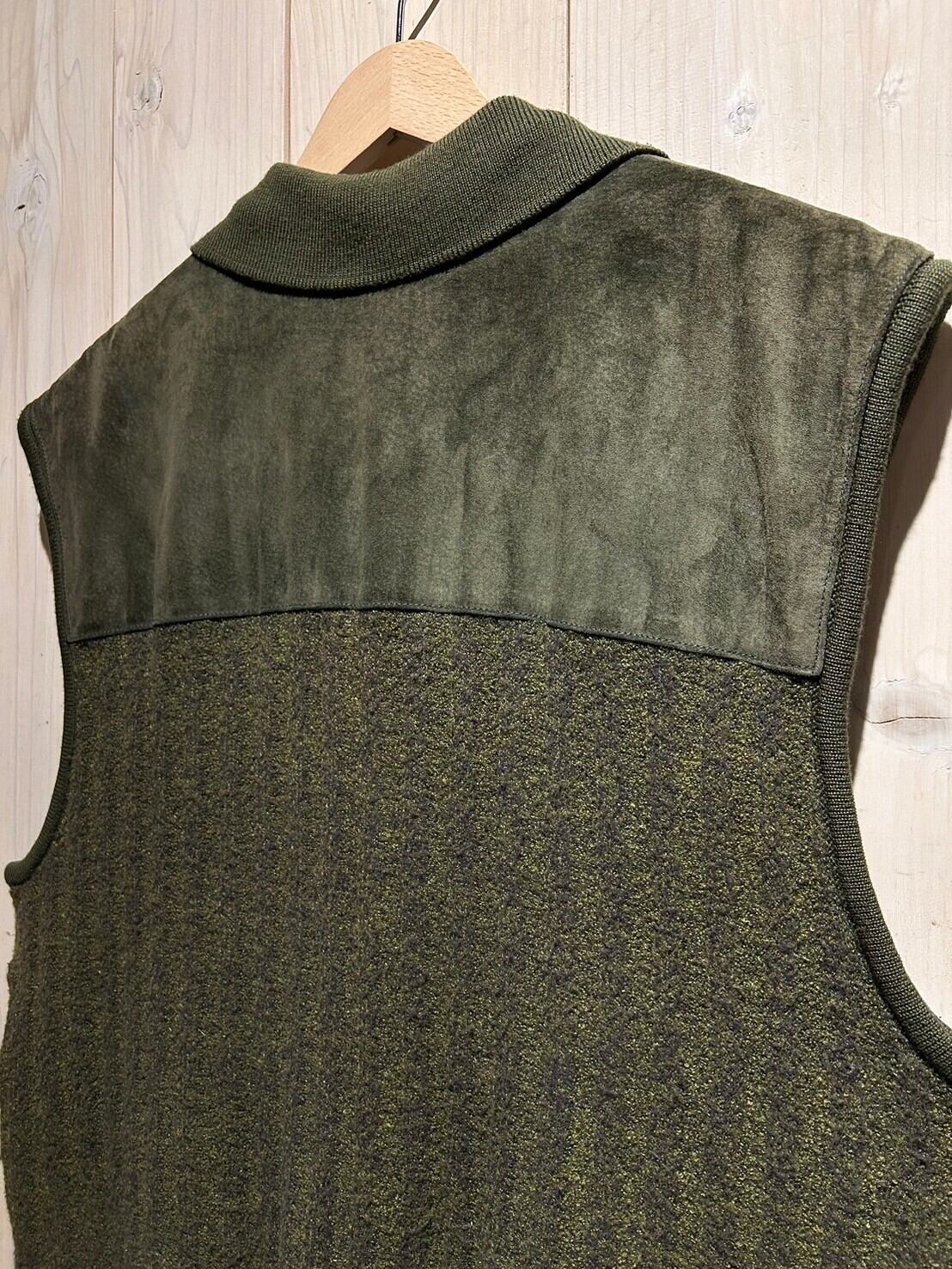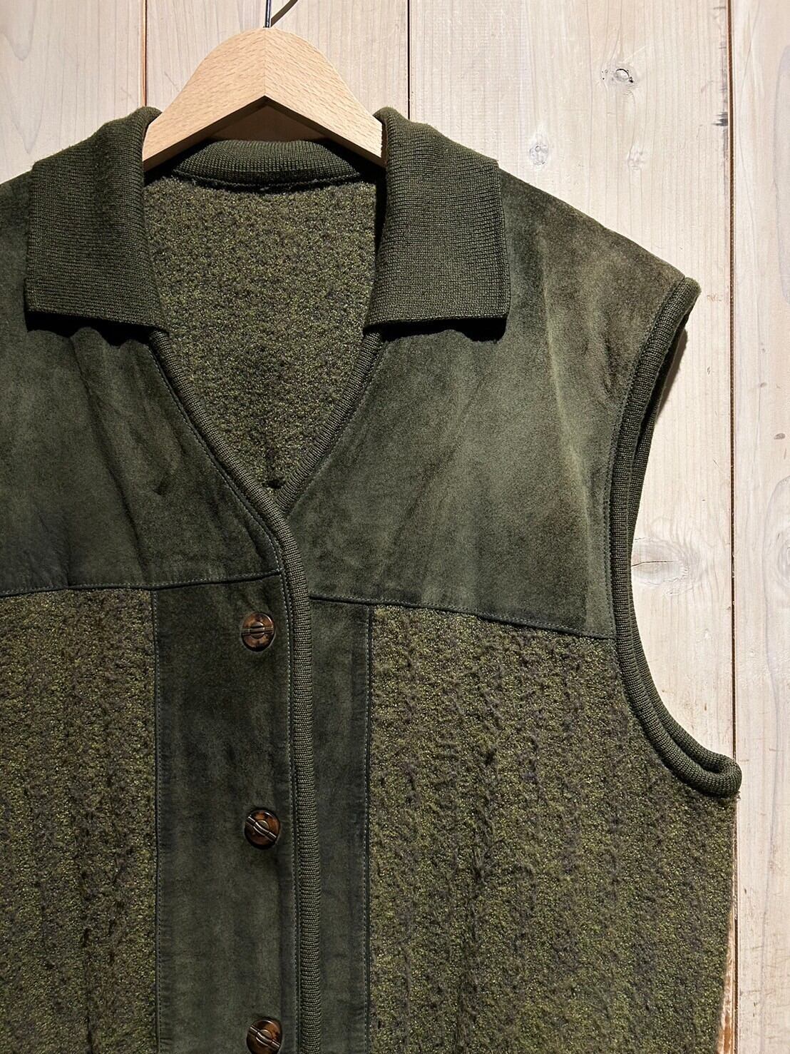 フワッと柔らかなニットのボディに、しっとりとしなやかなスエードレザーを切り替えたニットベスト。