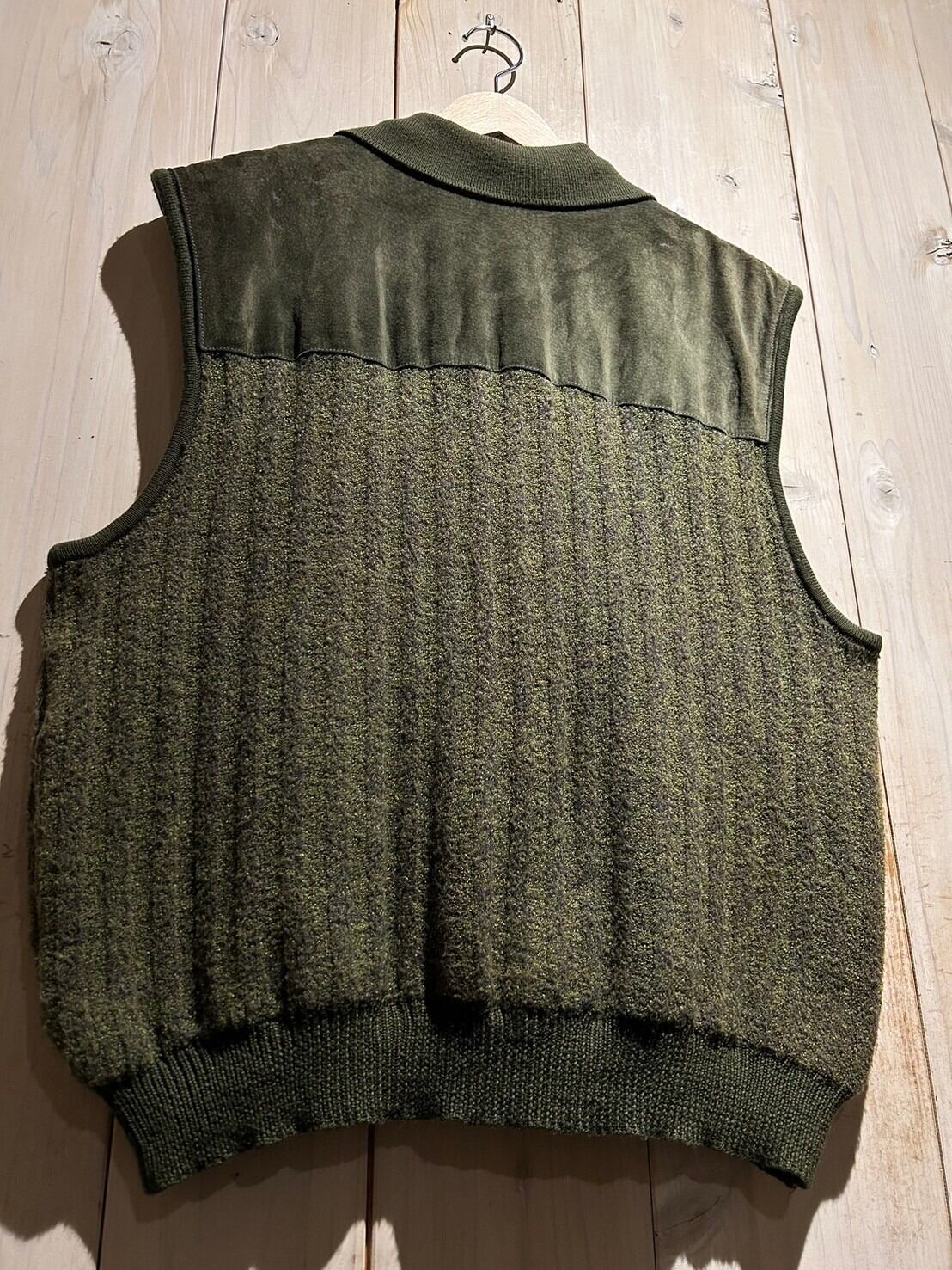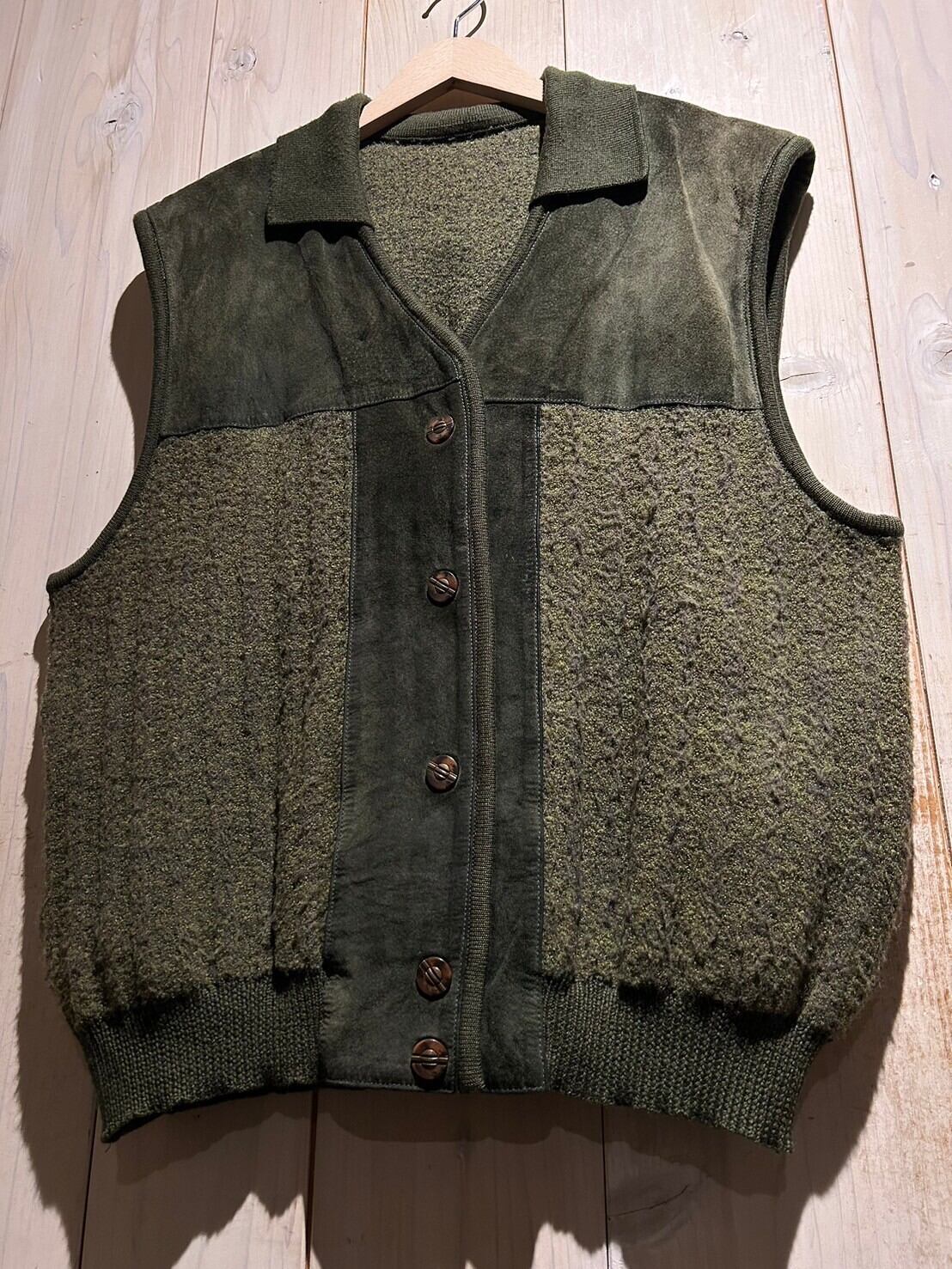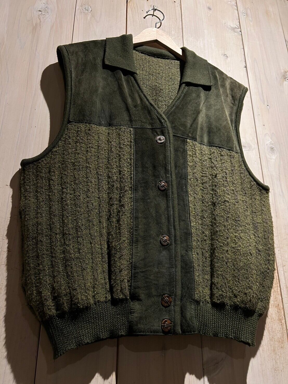 これからの季節のメイン素材であるレザーとニットを掛け合わせたことで生まれた、ヴィンテージ的な価値、ファッション性も兼ね備えたベストの逸品です。