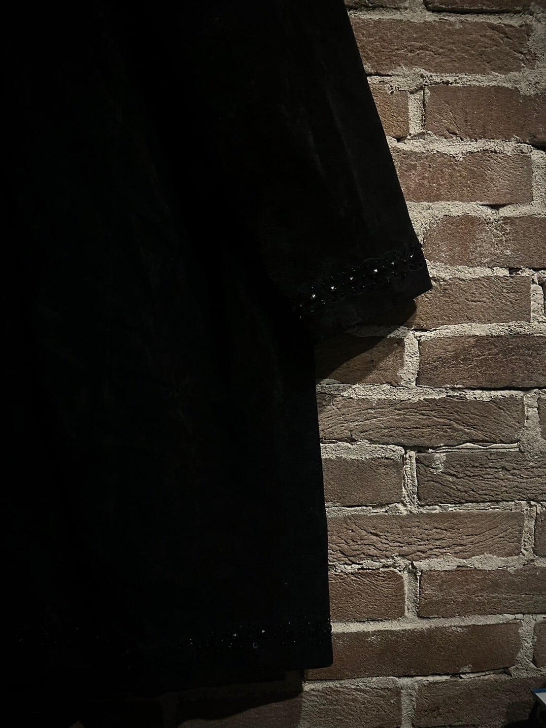 マットな質感のスエードにビジューの煌びやかな光沢がマッチした、モードかつラグジュアリーな雰囲気漂う仕上がりに。