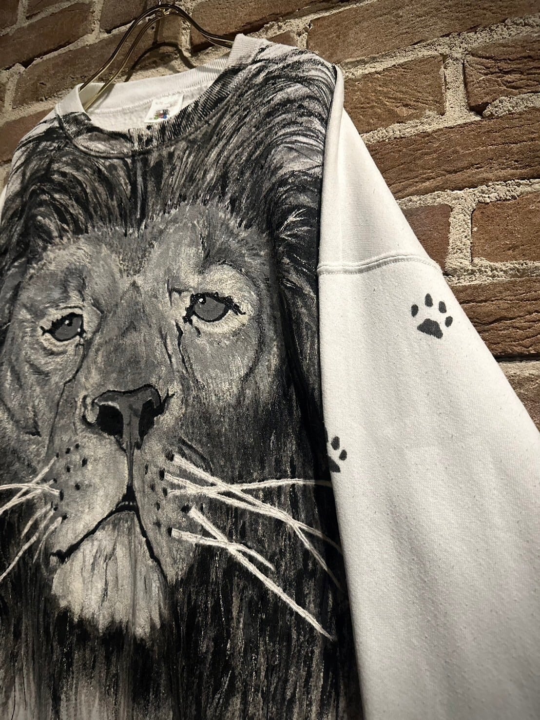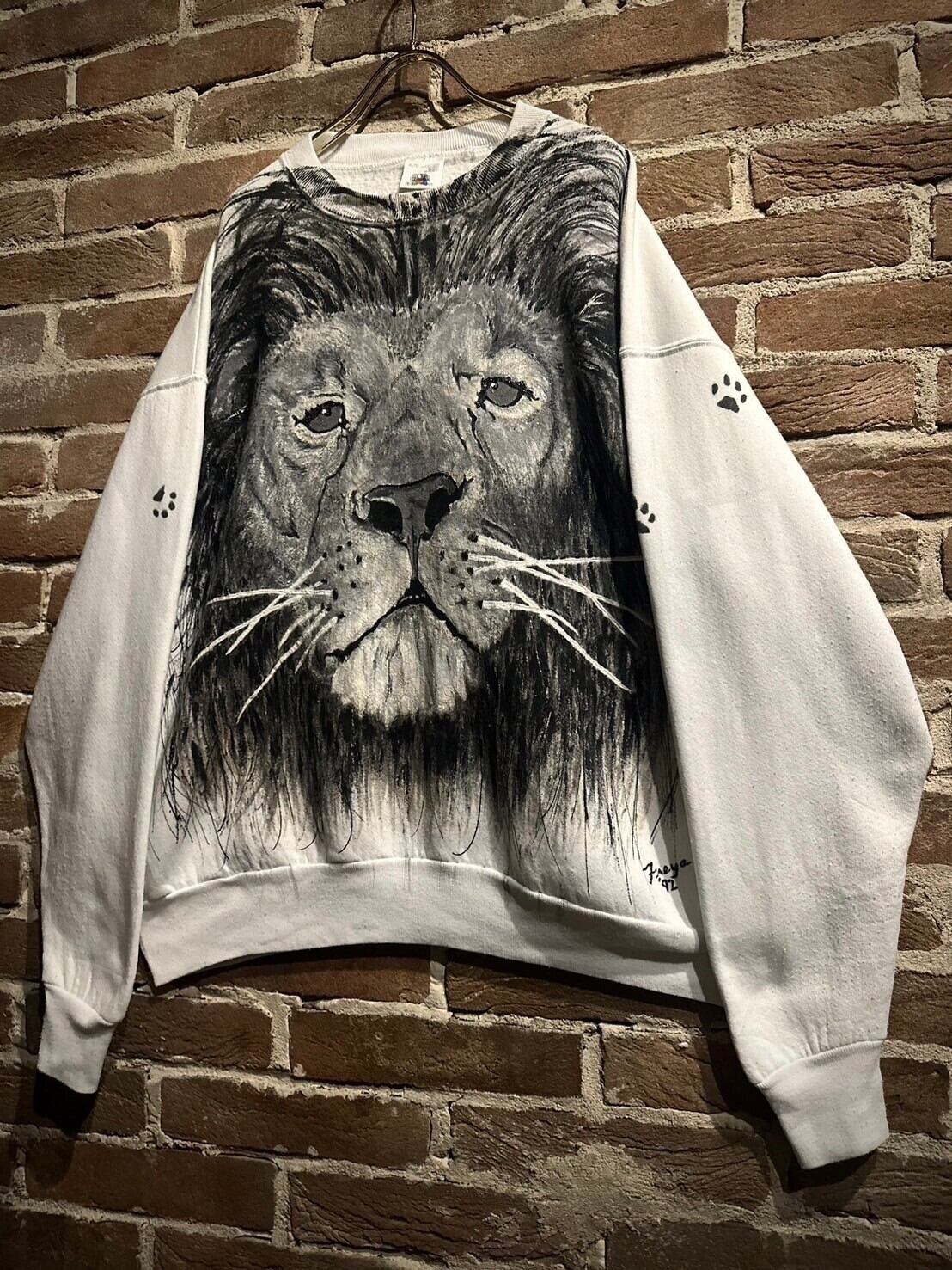 着心地の良いホワイトのスウェットのボディに、ハンドペイントでライオン載せたスウェット。大胆ながらも繊細に描かれ、前所有者のセンスが伺えます。