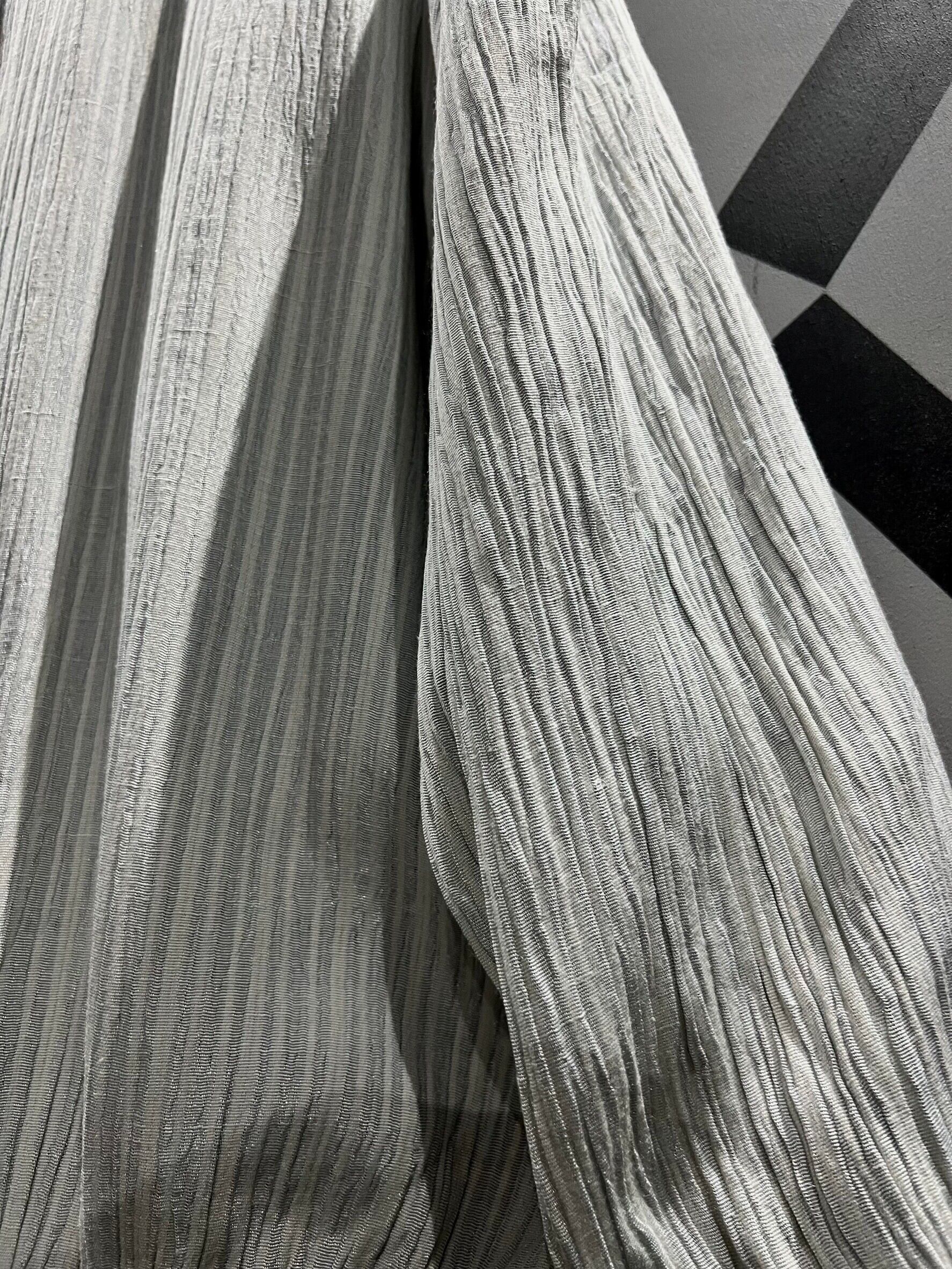 シュリンク加工が施された、ホワイト×ライトブルーの凹凸のある独特な質感の生地をボディに採用。