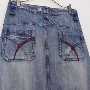 味わい深いデニムの風合いとポップなデザインの掛け合わせによる、MIX感のあるデザインが素晴らしいデニムスカートの稀有な逸品です。