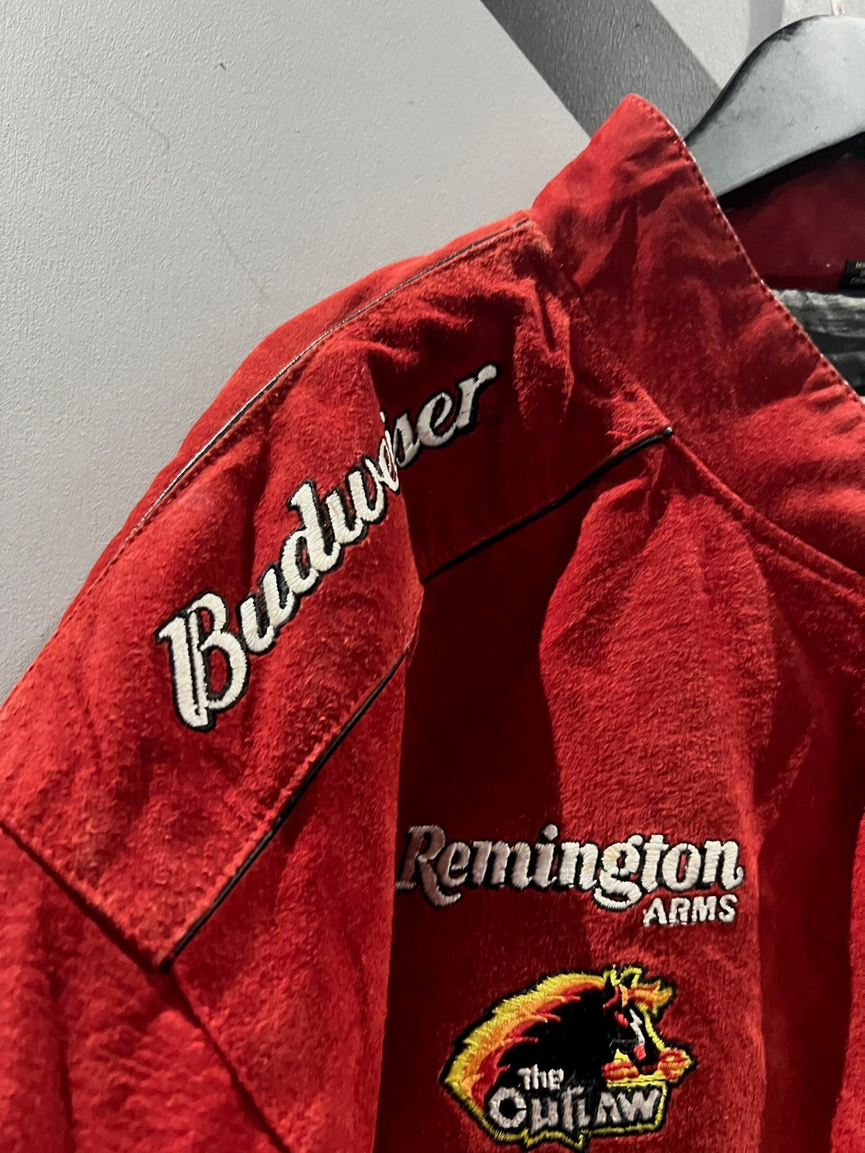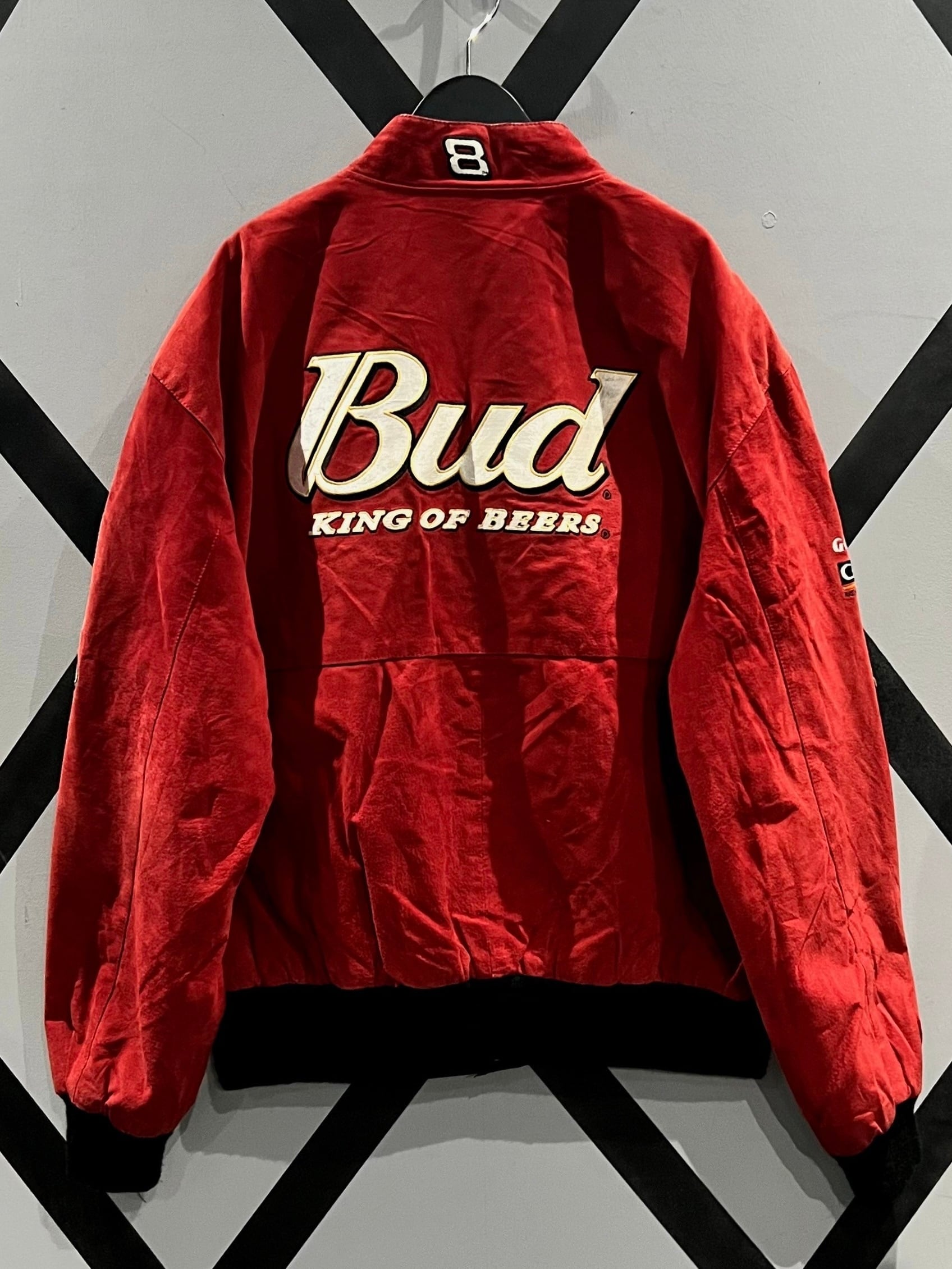 しっとりと柔らかなスエードレザーを用いた、"King of Beers"をキャッチコピーとする"Budwiser"のレーシングジャケット。