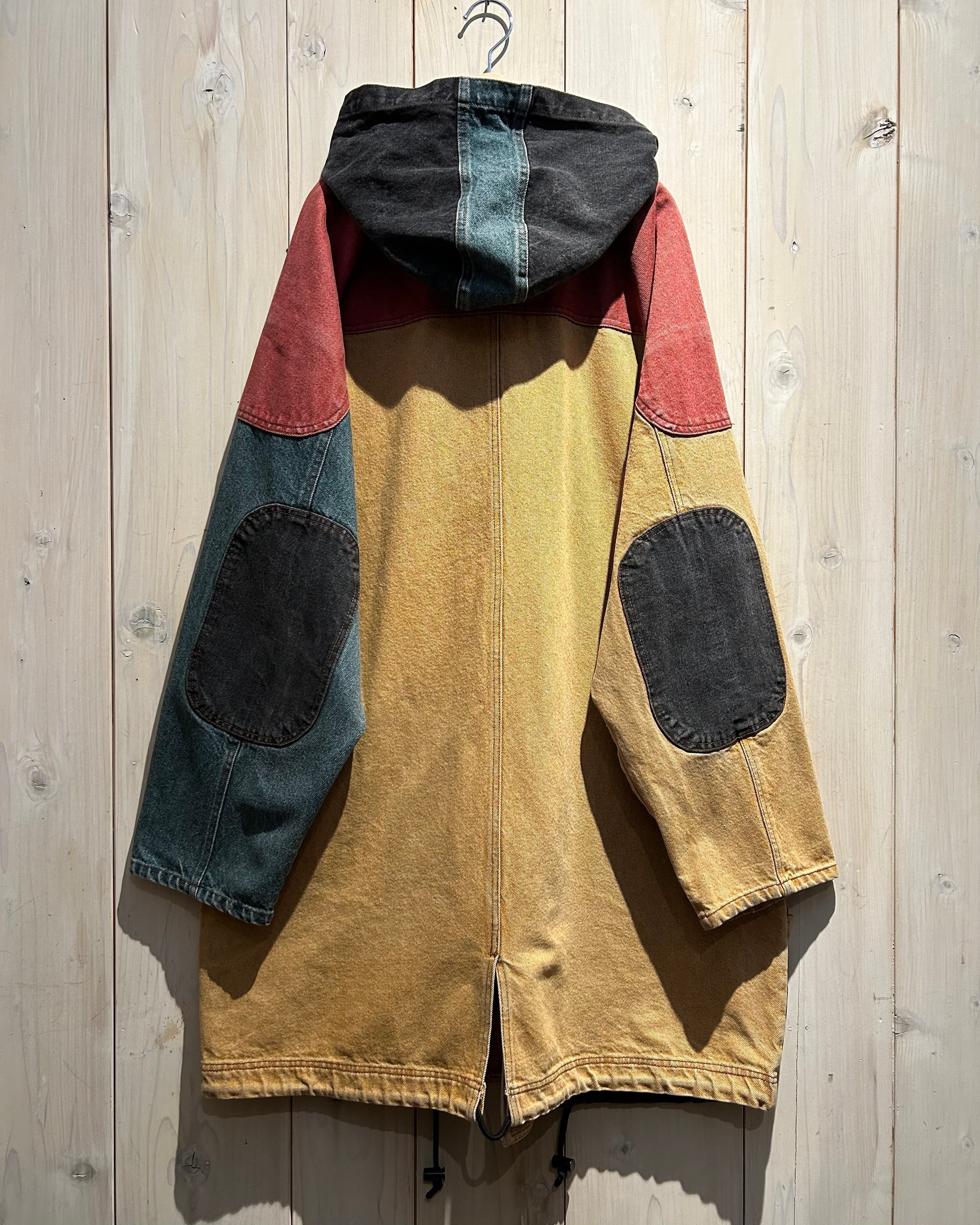 コシがありながらも柔らかく、しなやかなデニムを様々なカラーリングで切り替えた、80's ヴィンテージの稀有な1着をご紹介致します。