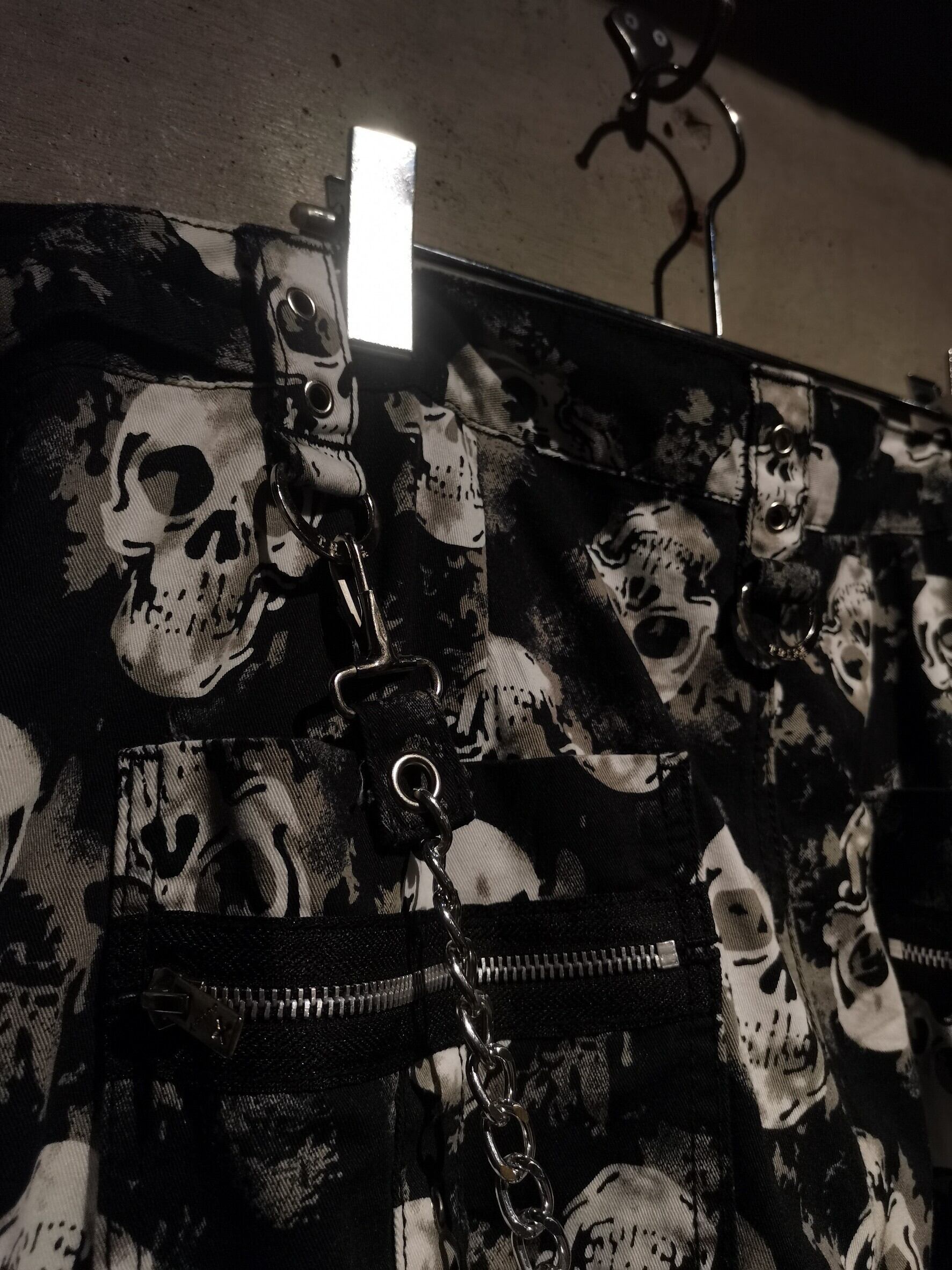 ブラックのボディをベースに、スカルをボディ全体載せた稀有なボンテージパンツ。ボンテージパンツ自体稀少価値がググッと上がっている中、総柄モノなんてそうそうお目にかかれません。