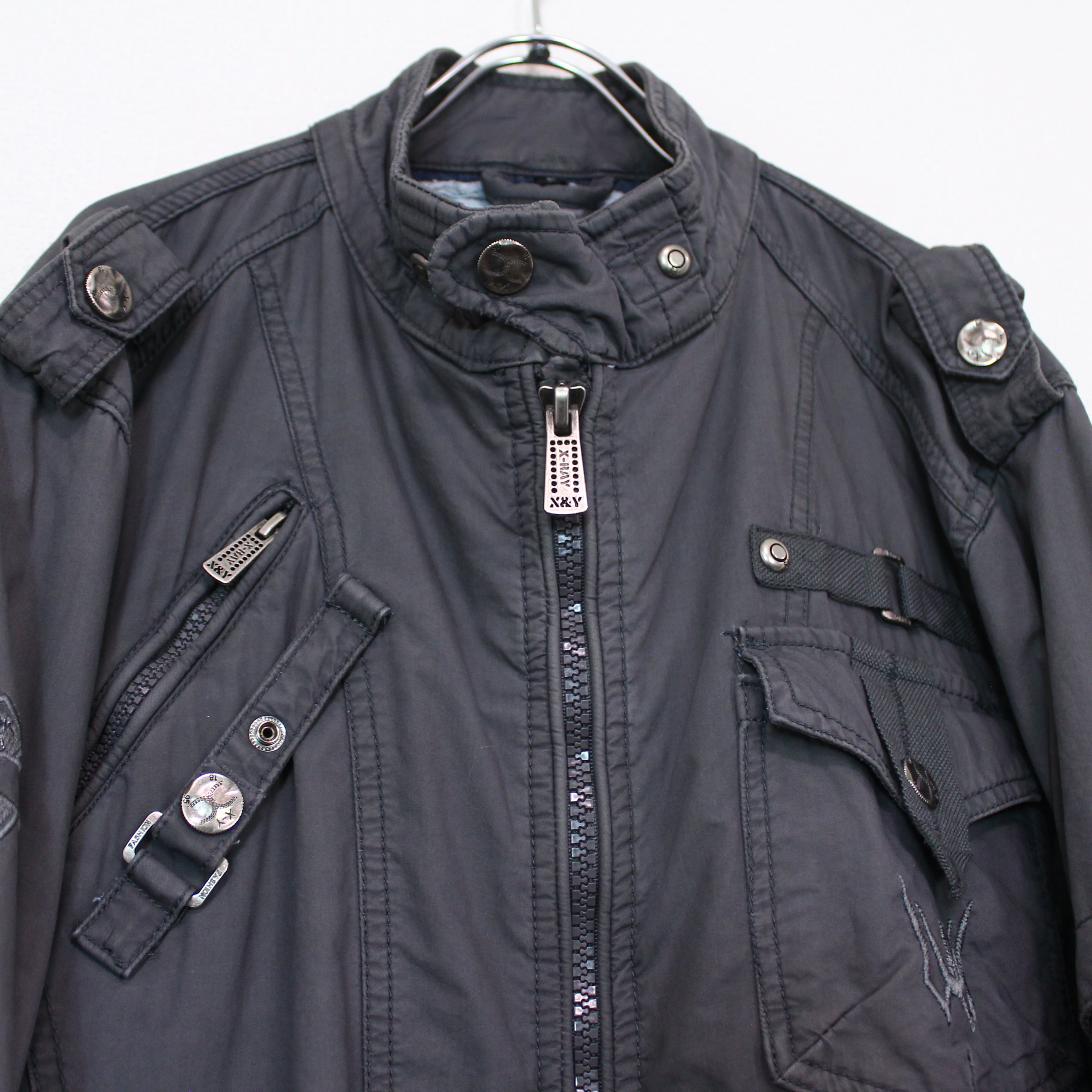 ハリのあるコットンを用いたボディに、バイカージャケットならではの高い機能性を誇るギミックを盛り込んだ1着。