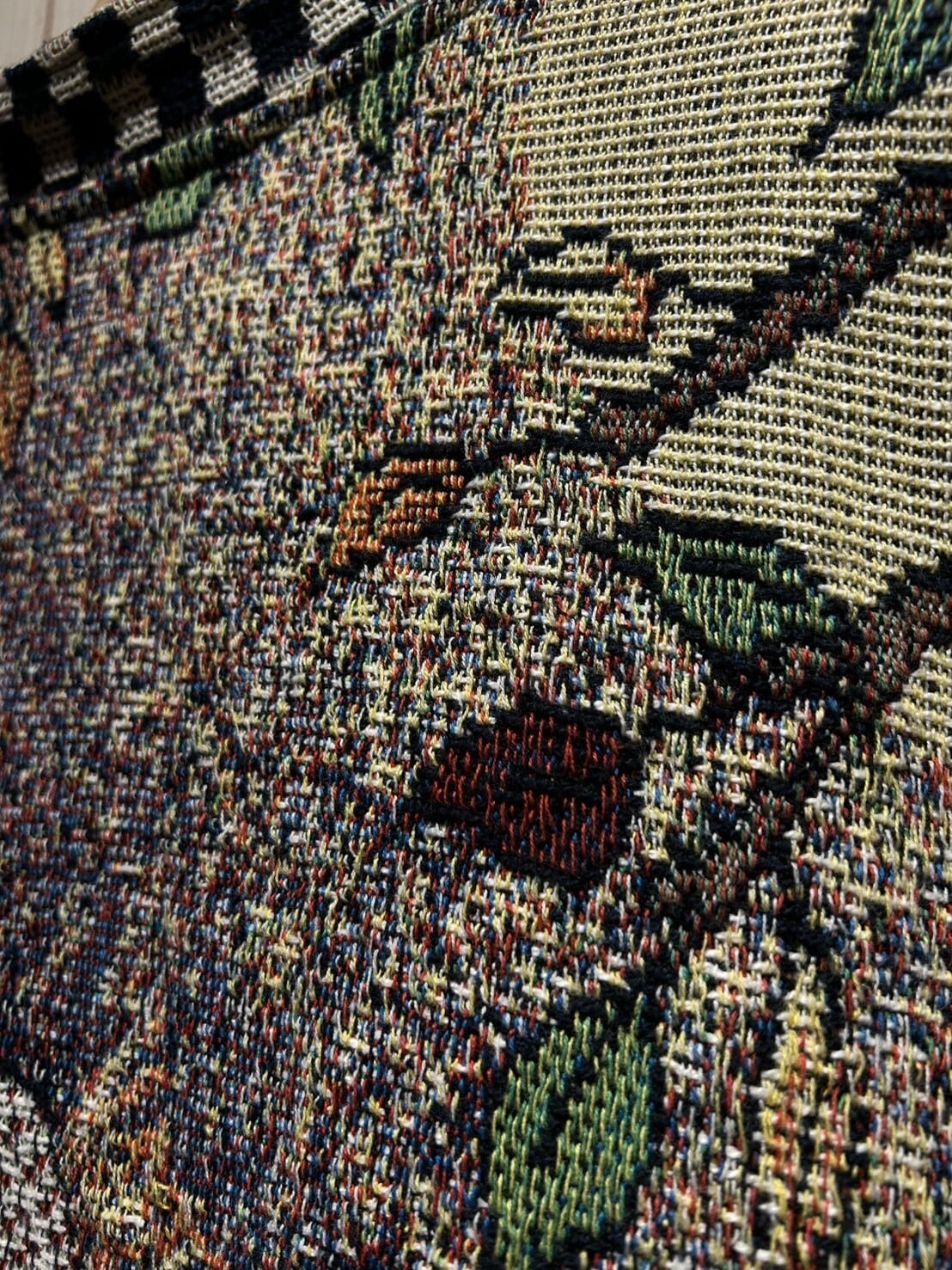 近くで見ると分かるのですが、立体感やグラデーションを出す為に何色もの糸が使用され織り込まれた繊細かつ緻密な作り込みに圧倒されます、、、