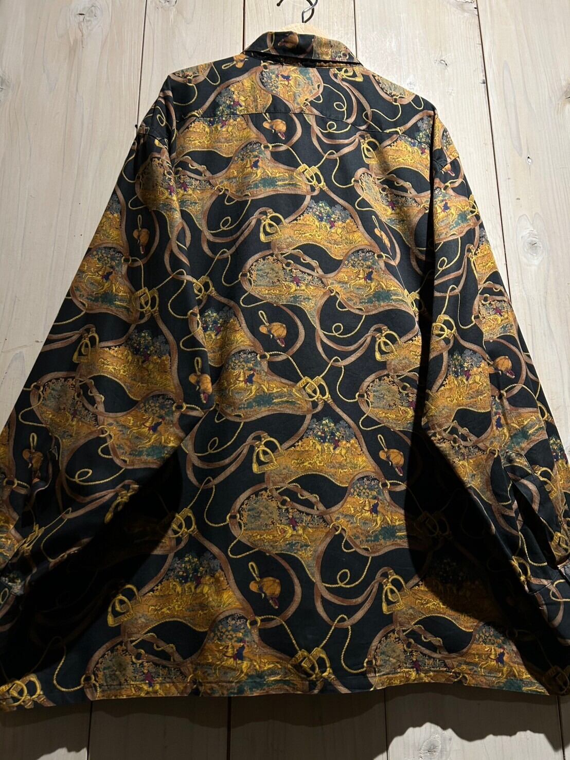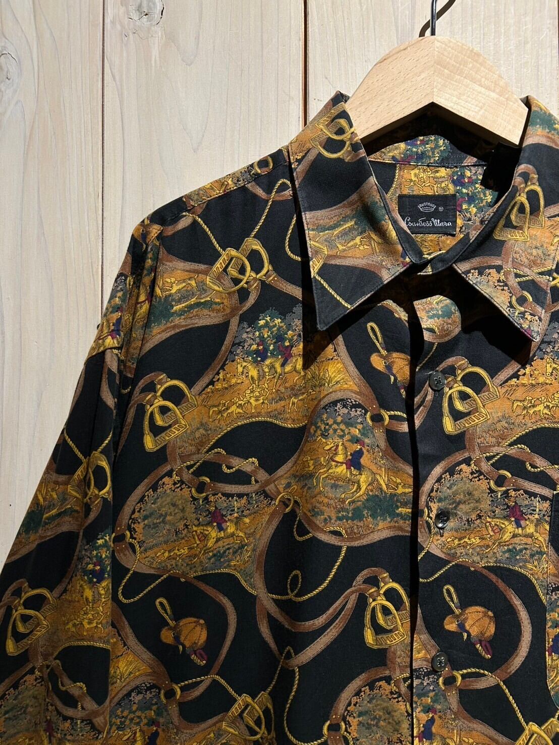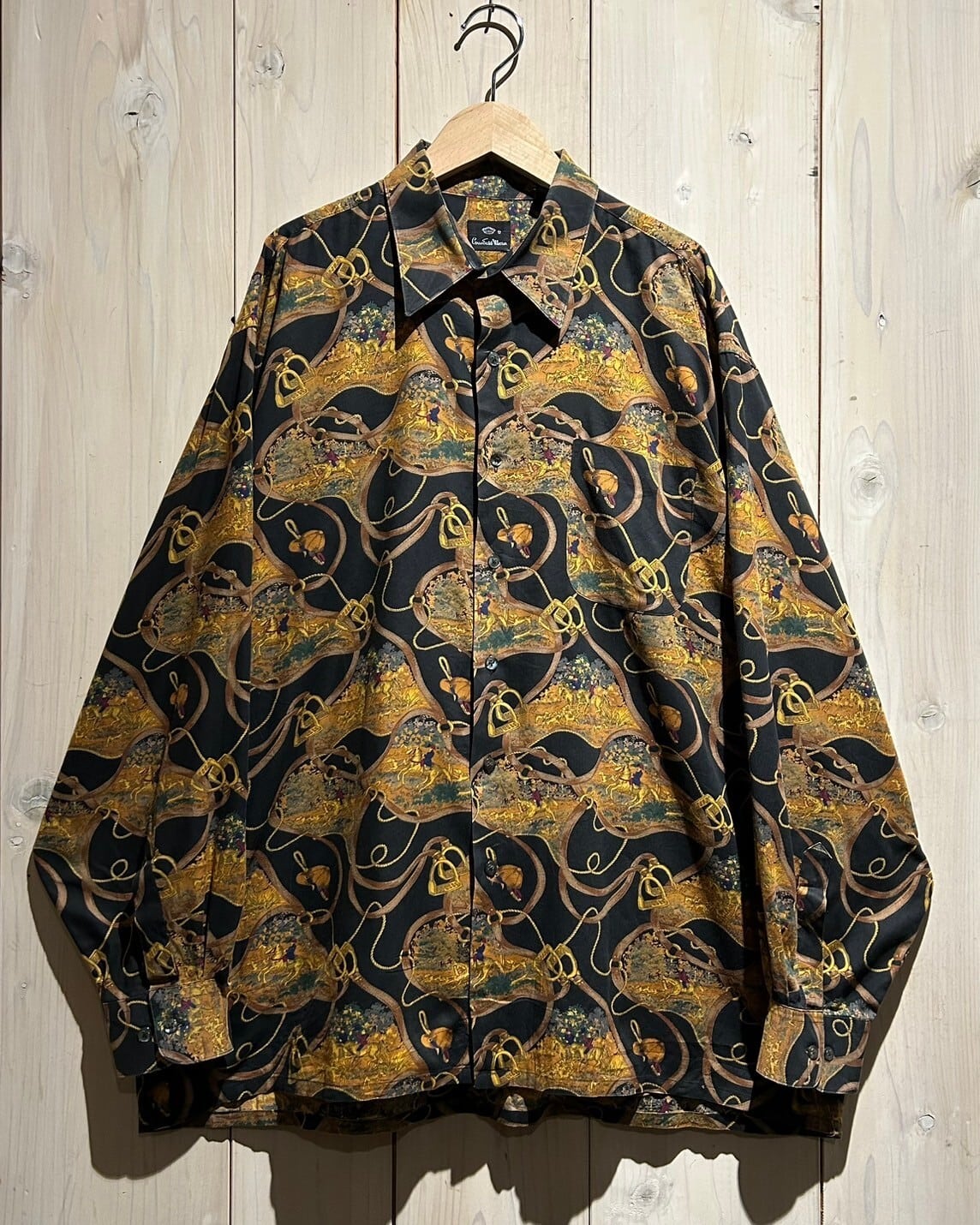 ハリのあるブラックベースのボディに、エルメスなどラグジュアリーブランドでも用いられる馬や馬具をモチーフにデザインに落とし込んだ長袖シャツ。