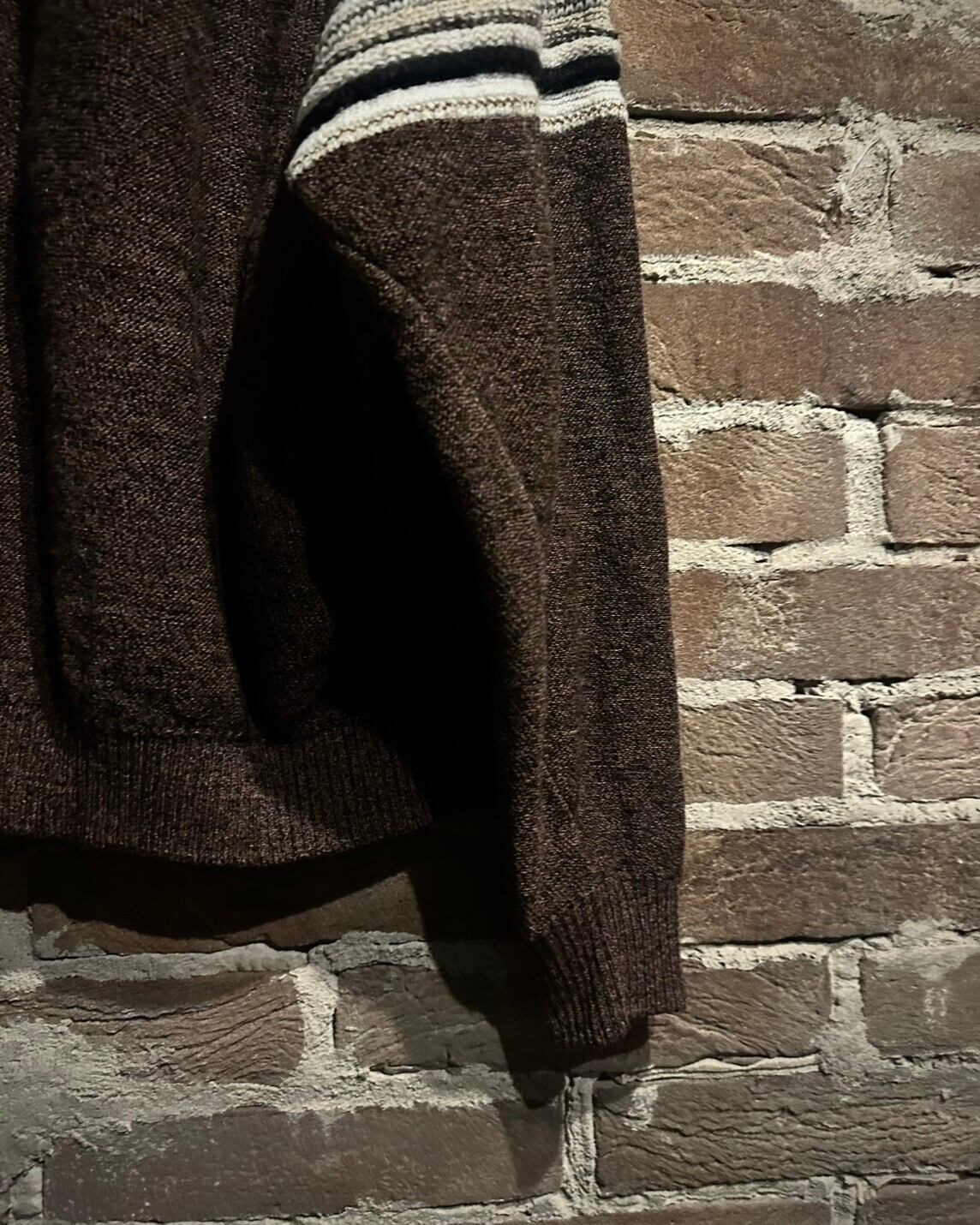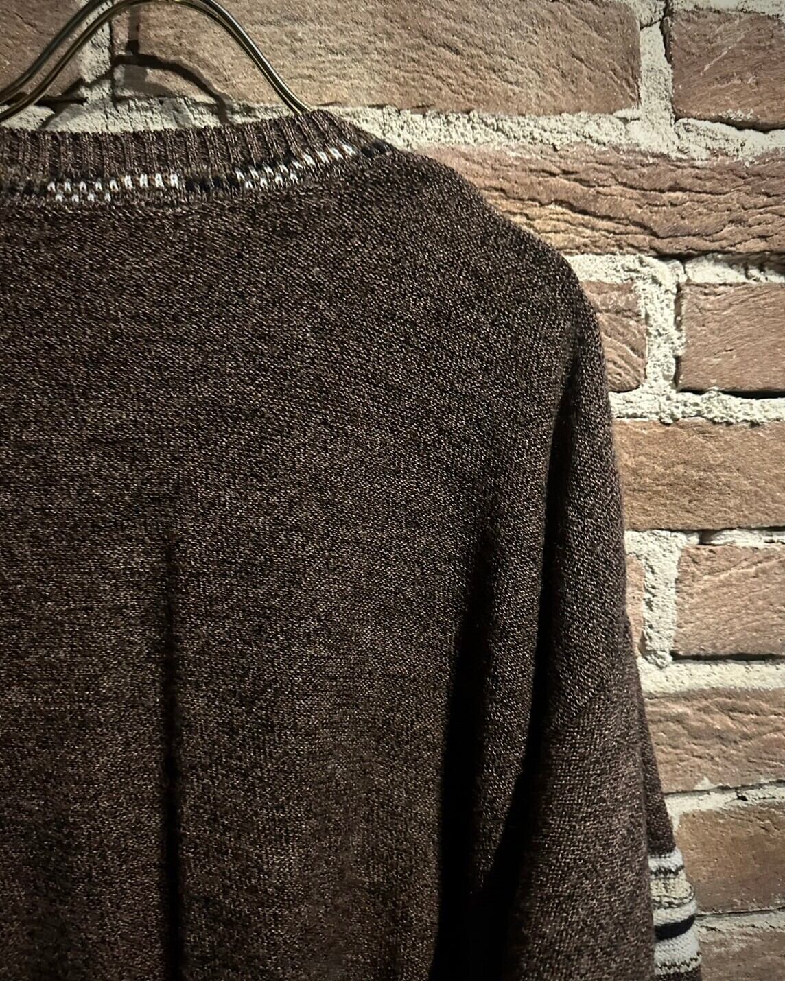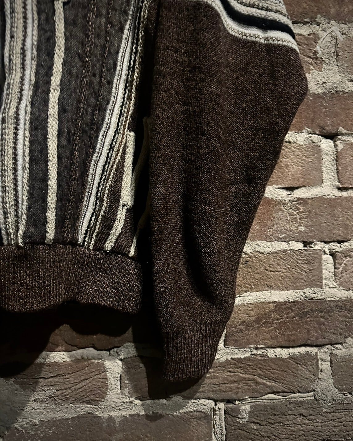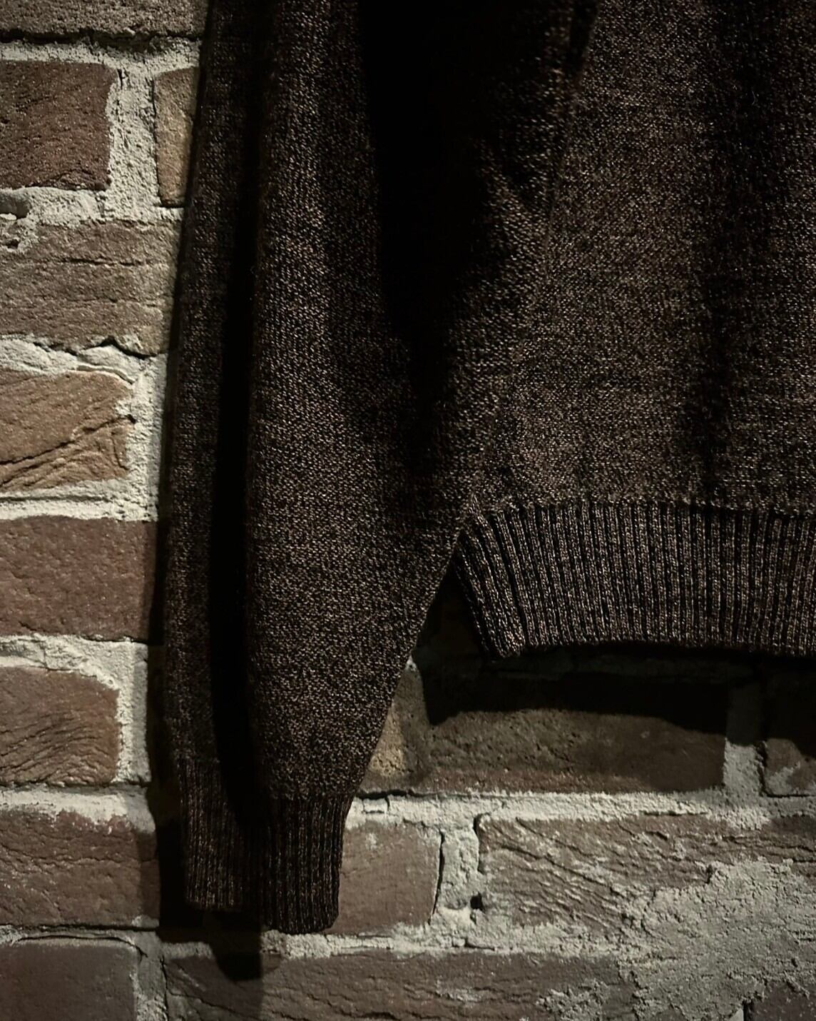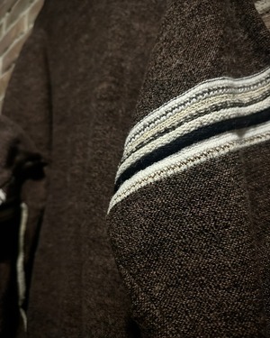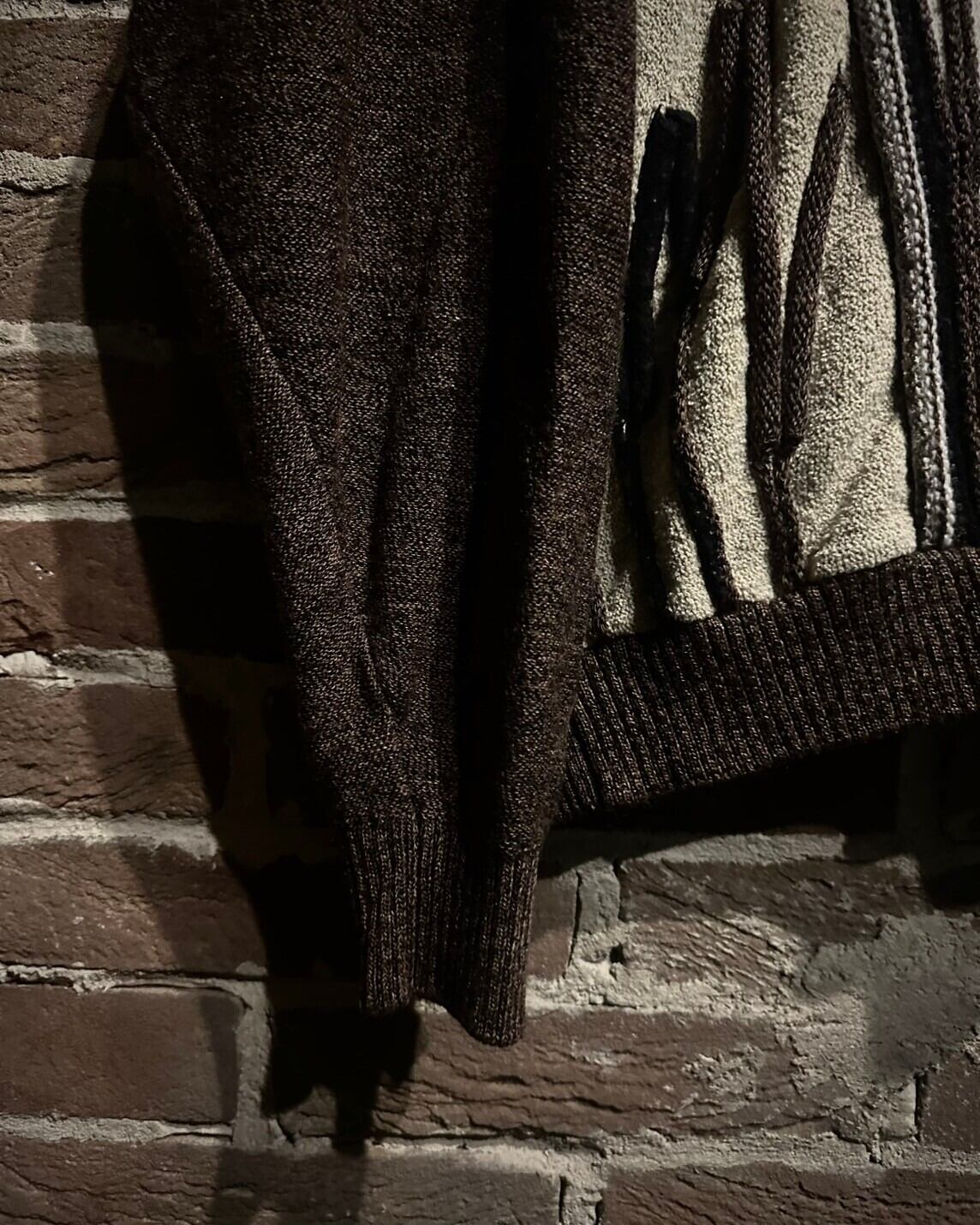 ウールを混紡した、柔らかくフワッと肌触りの良いニットをベースに、フロントにロープのような立体感のあるニットを載せた稀有な逸品。