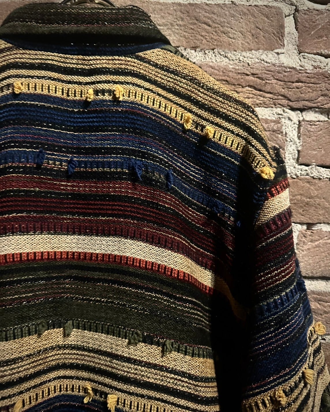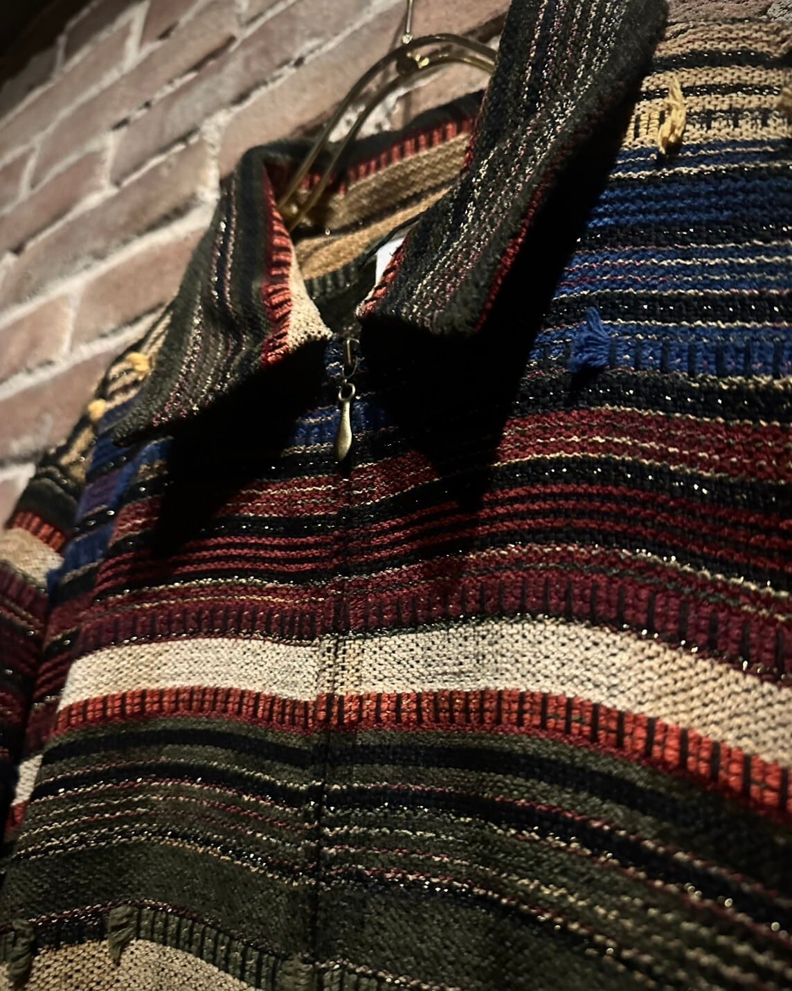 シェニール織りを用いて、多彩なカラーリングをボーダー状に織り込んだ、唯一無二なフレーバーがムンムンに漂うジャケット。