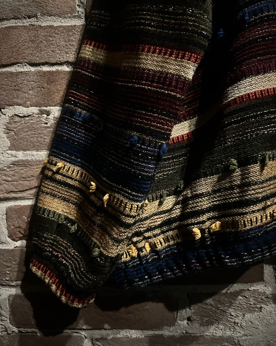 当店十八番のアーティスティックかつモードな逸品。上質なシェニール織りを用いた稀有かつスペシャルな1着です。