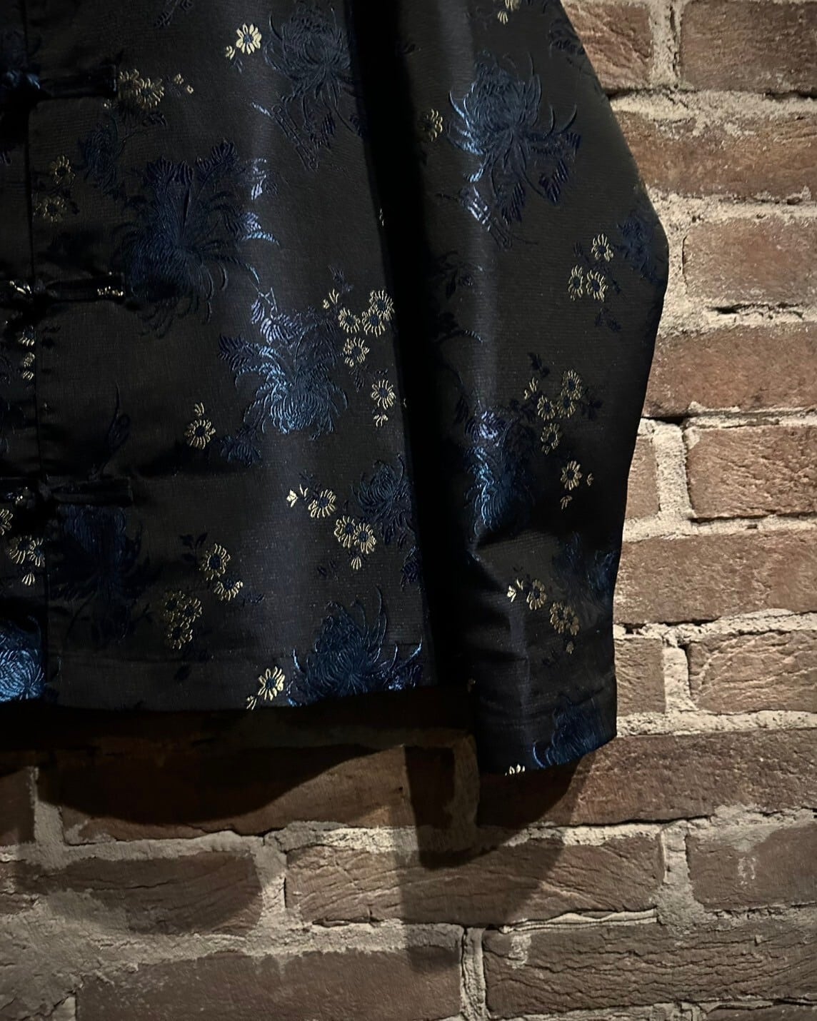 繊細な織りによって、美しい花々達が咲き誇るように映し出された、スペシャルなチャイナディテールを載せたジャケット。