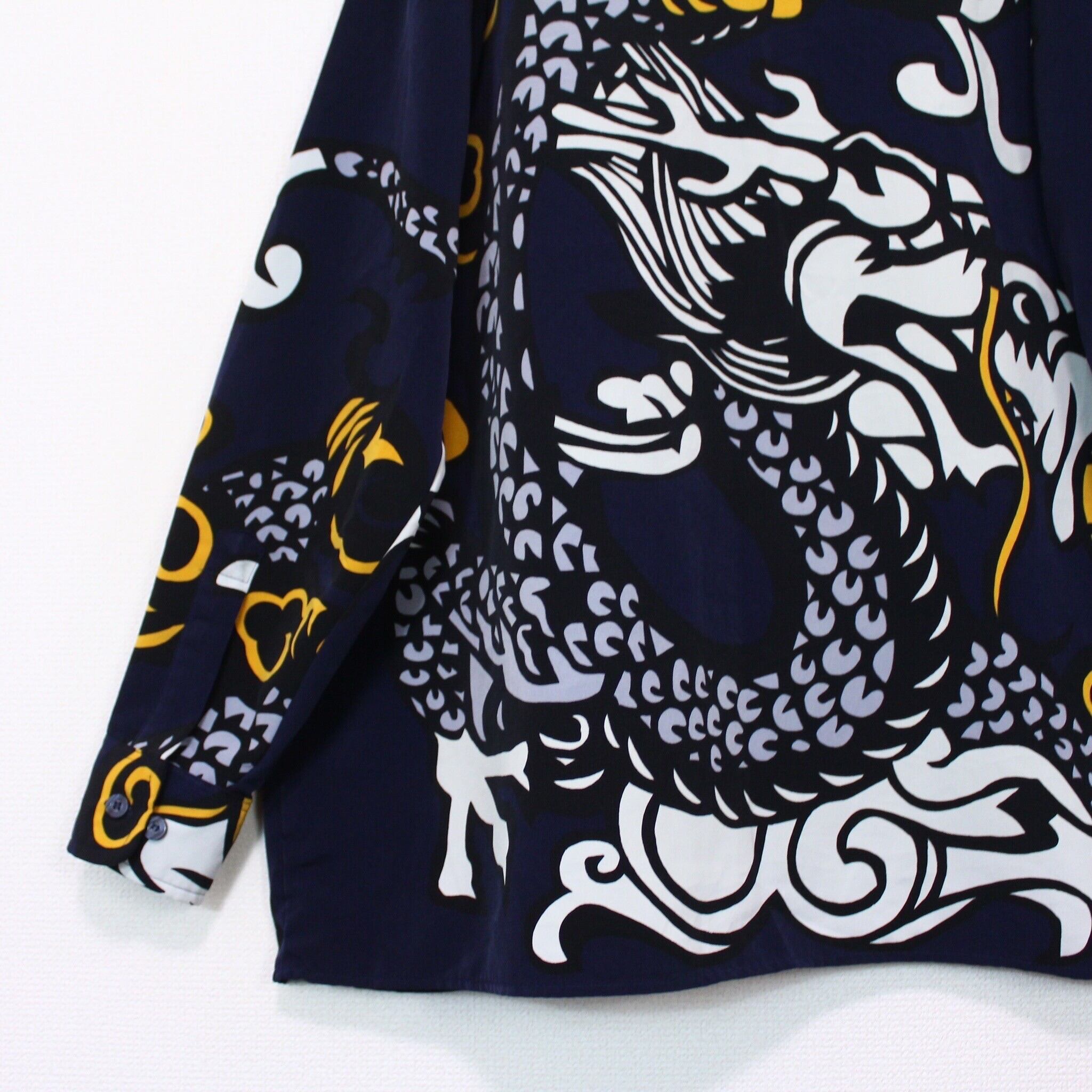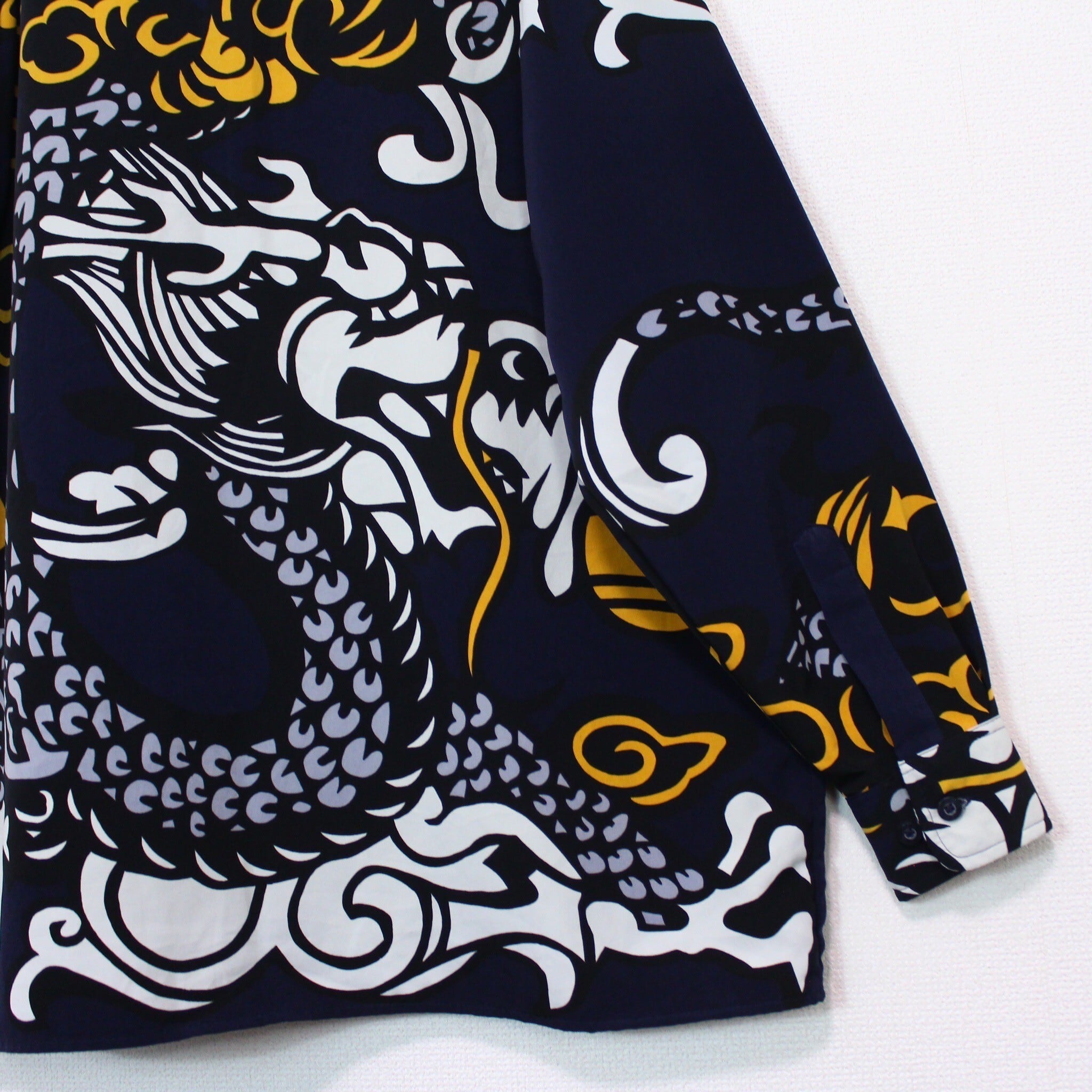 ネイビーのボディをベースに、オリエンタルな雰囲気を漂わせる"龍"のデザインを大ぶりに載せた長袖シャツ。