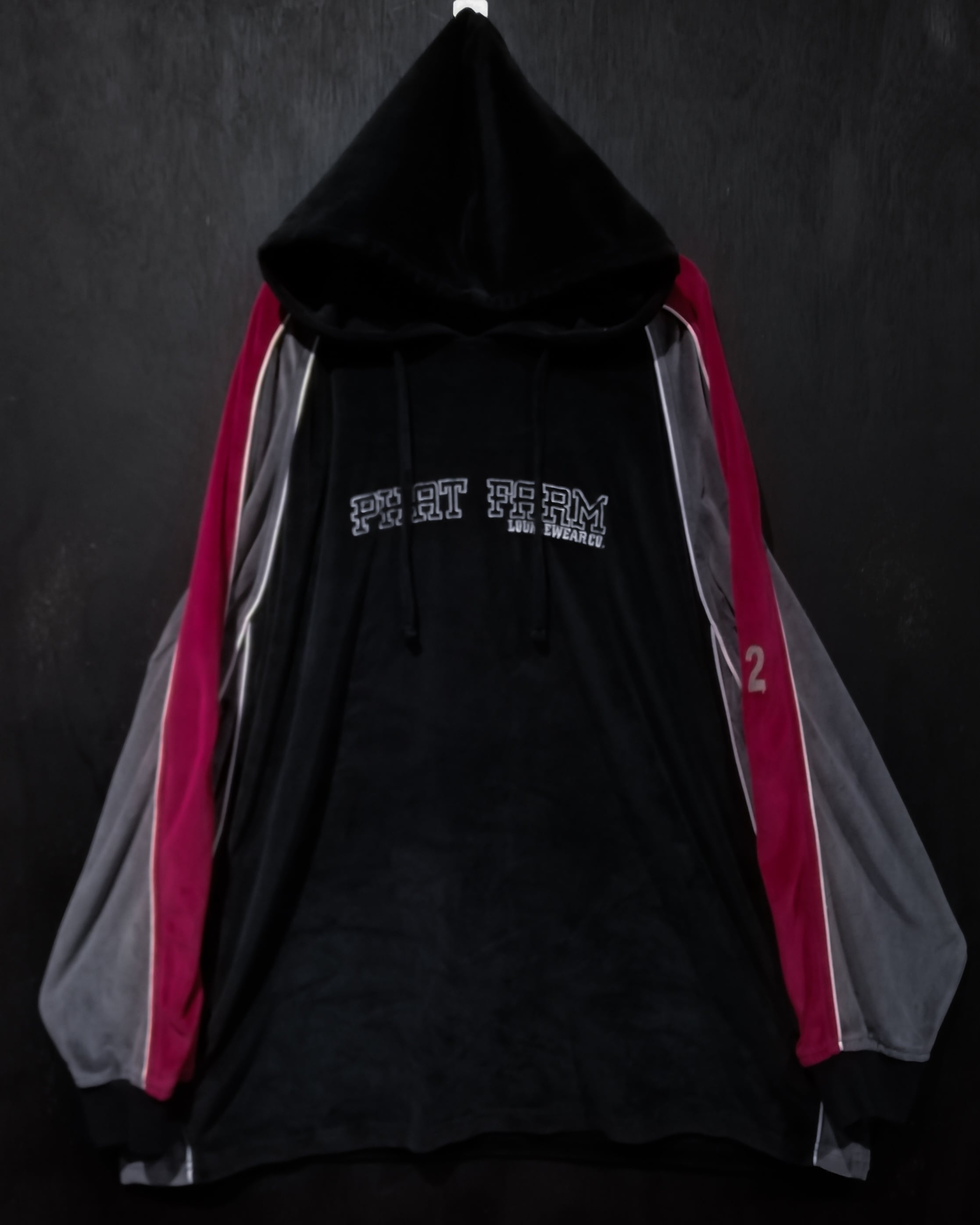 品質とデザイン性、そしてバックカルチャーを兼ね備えた"PHAT FARM"からの、素材使い、デザインに秀でたベロアのフーディです。