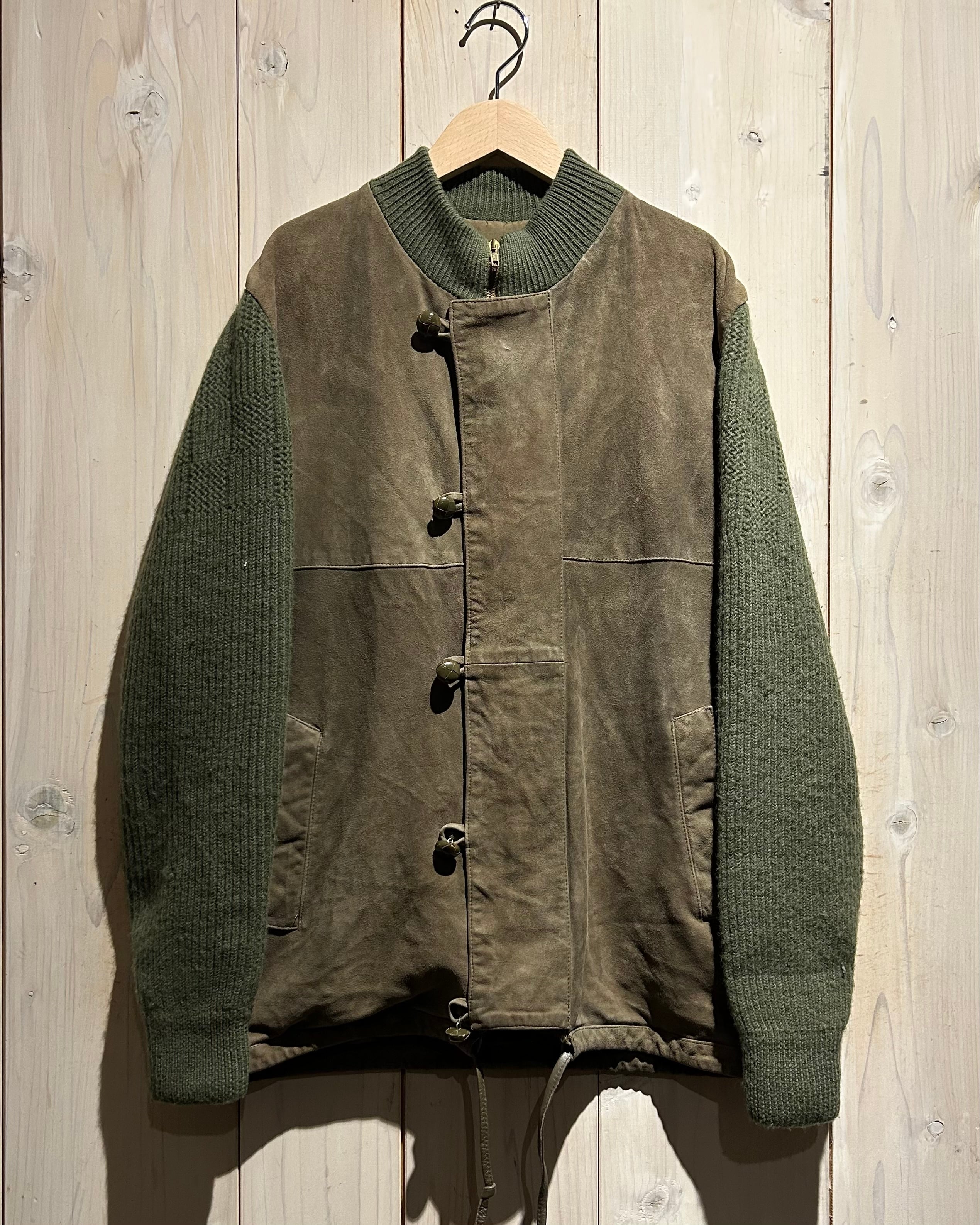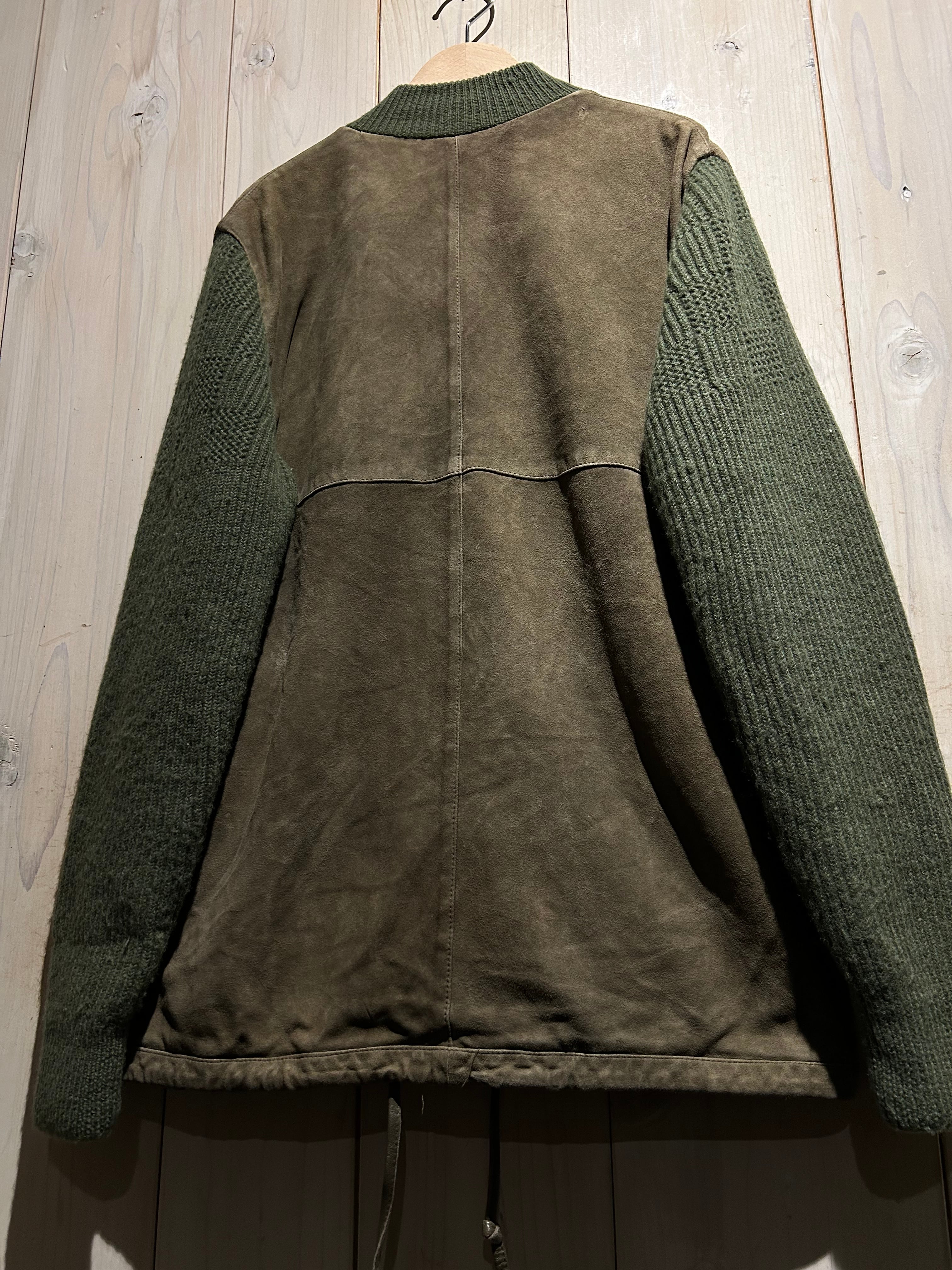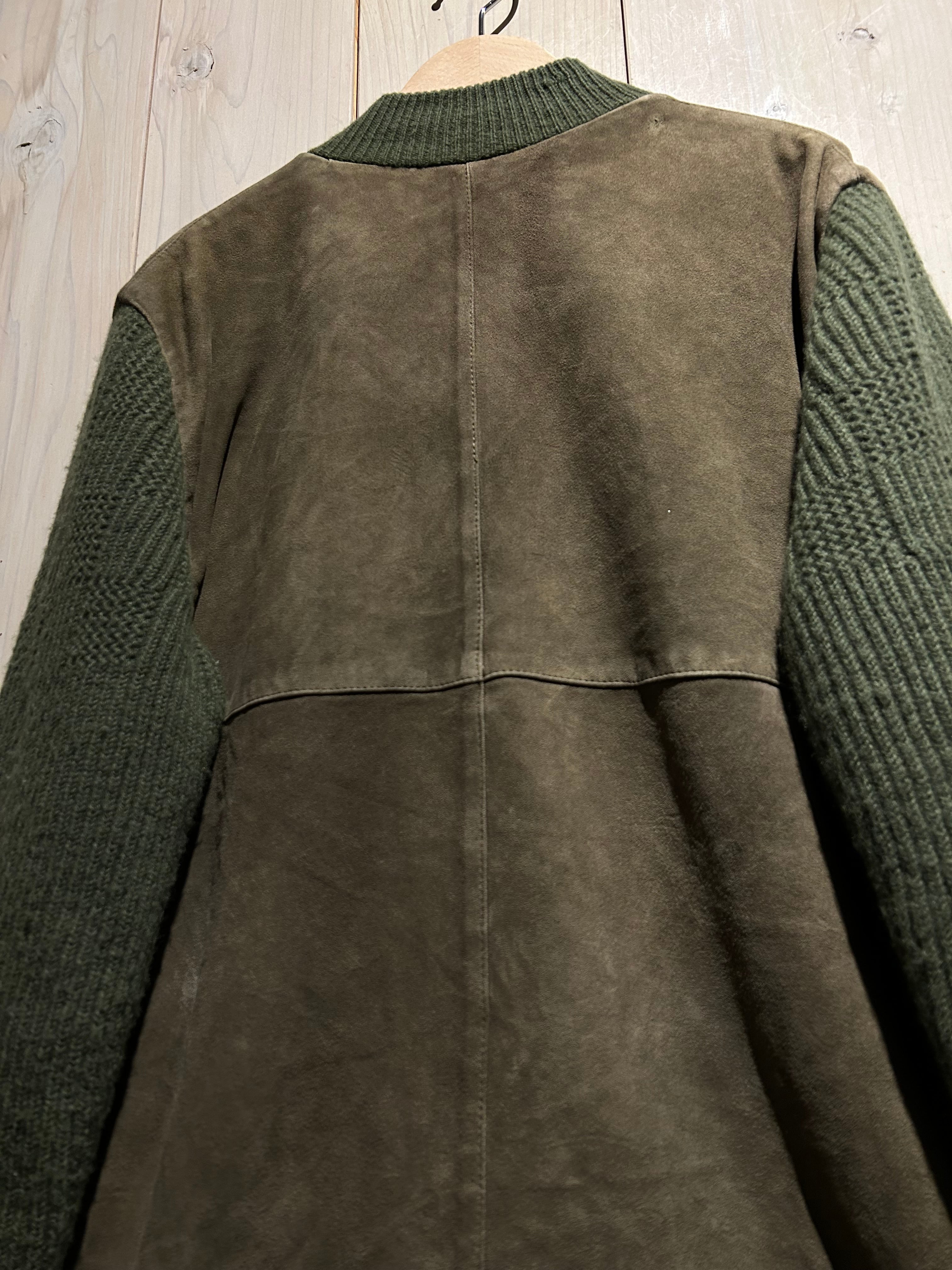 温かみのある柔らかなニットと、しっとりと手触りの滑らかなスエードレザーを掛け合わせた、ユーロヴィンテージ、イタリーメイドのニットジャケット。