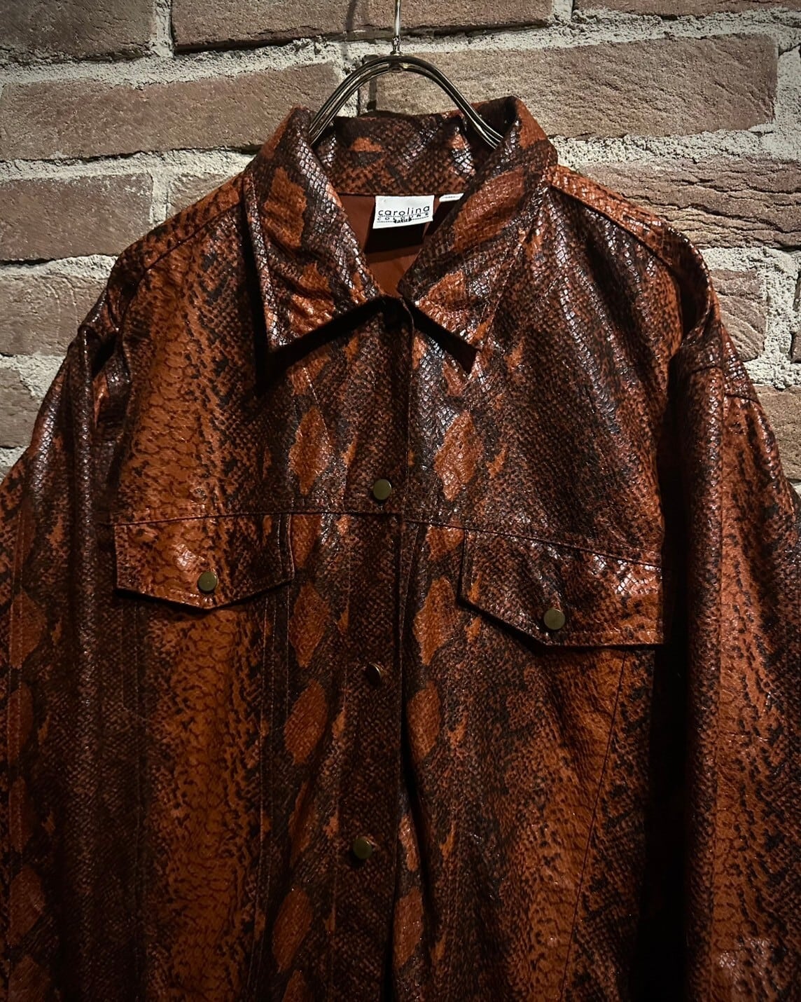パイソン柄×トラッカージャケットの絶妙な塩梅のデザインバランスを誇り、上質なポリエステル素材でシーズンレスにお楽しみ頂ける、ファッション性の高いスペシャルな逸品です。