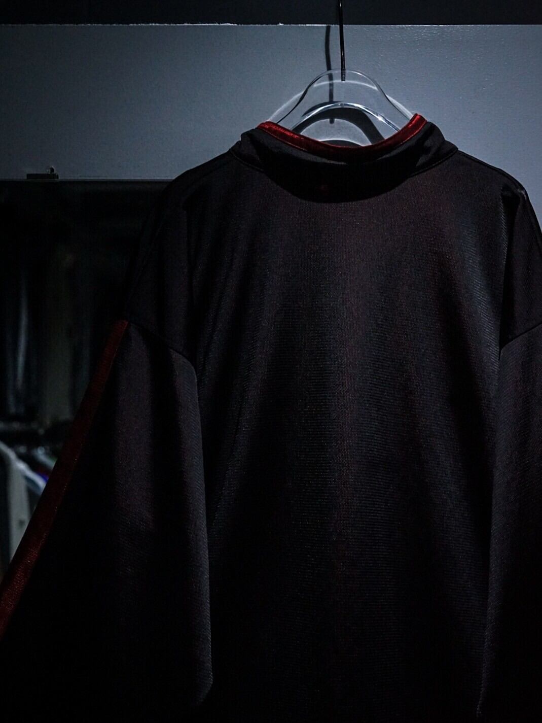 ブラックのボディに、赤色のメタリックな糸を織り込んだスポーティかつテクニカルな表情が魅力的なハーフジッププルオーバー。