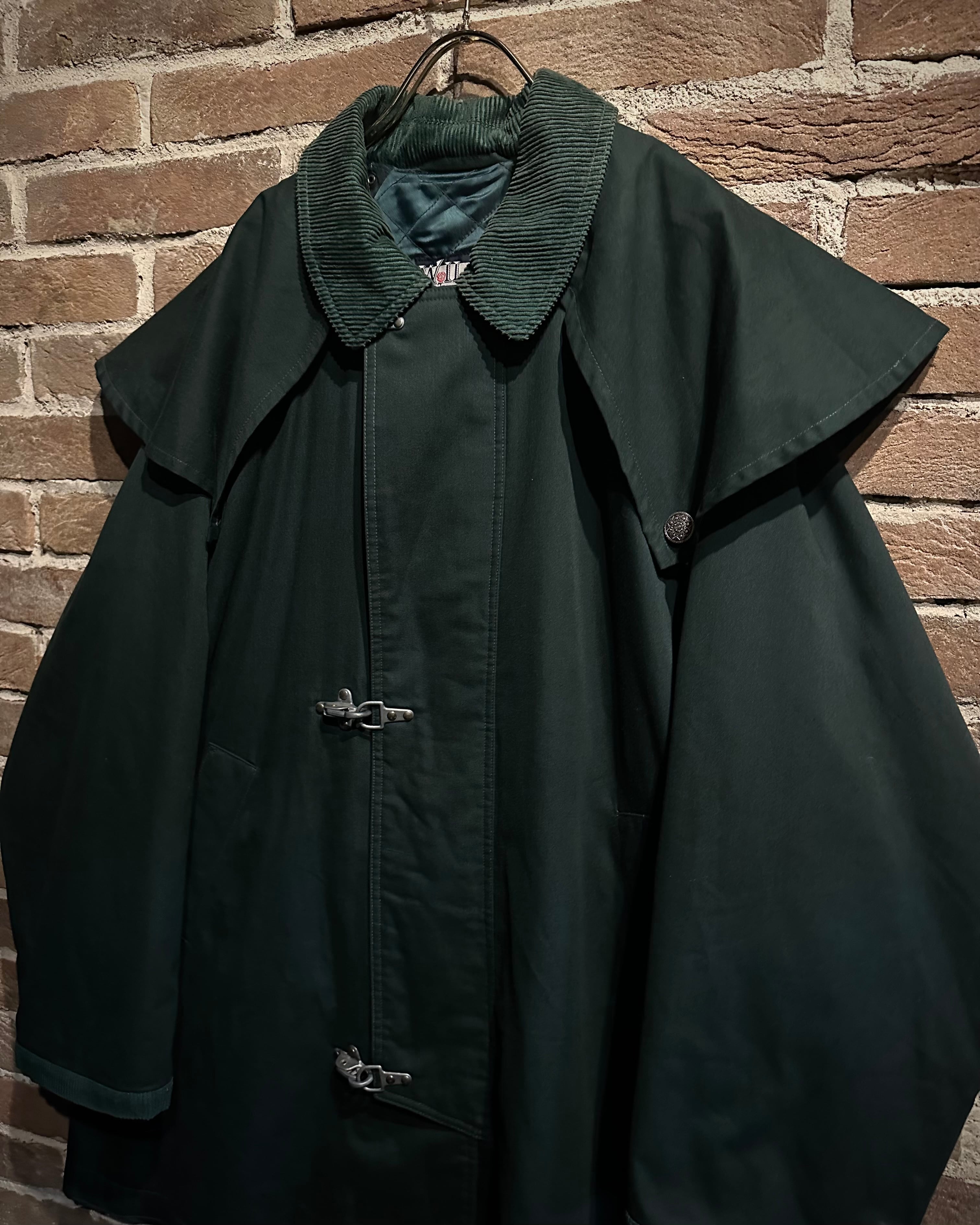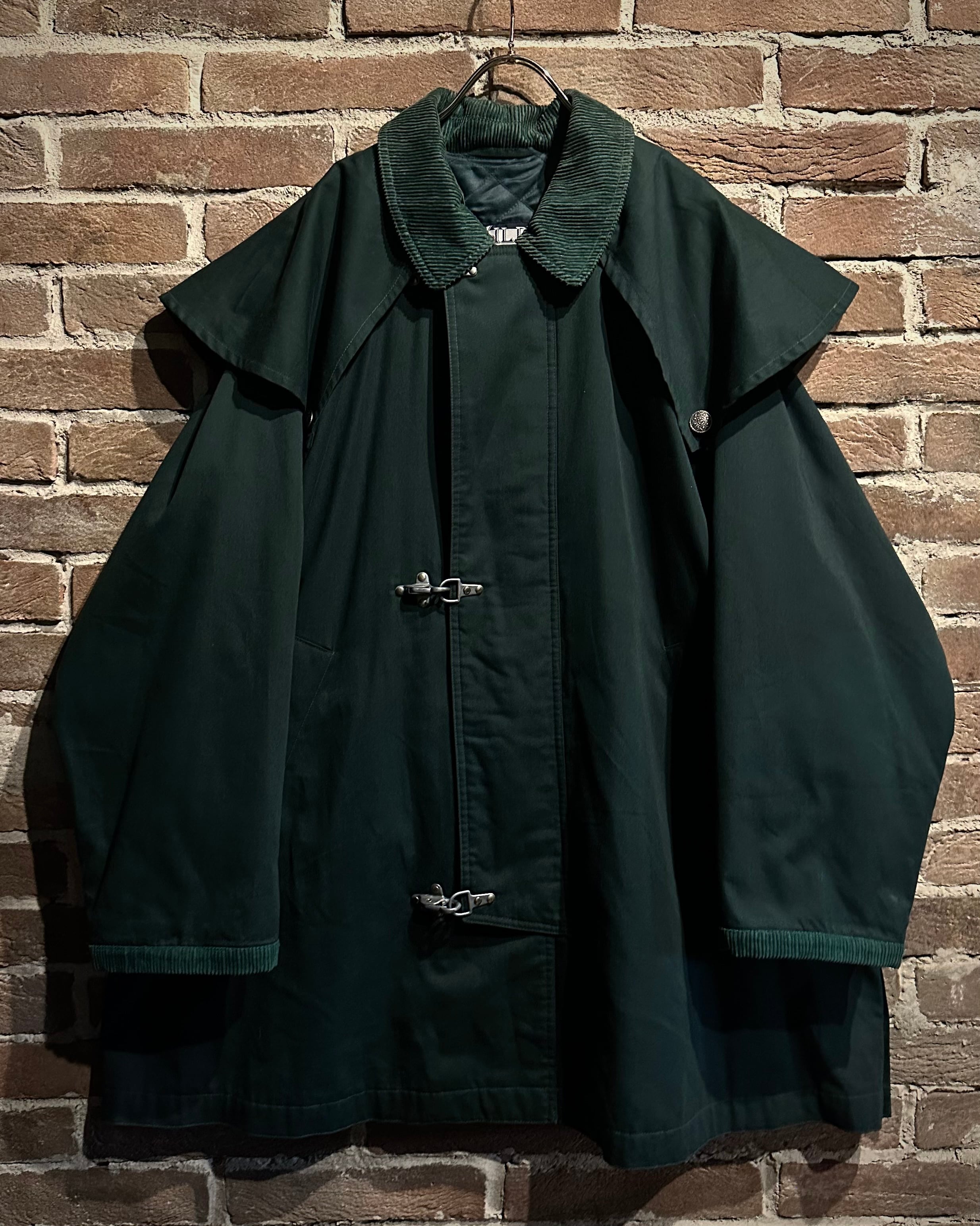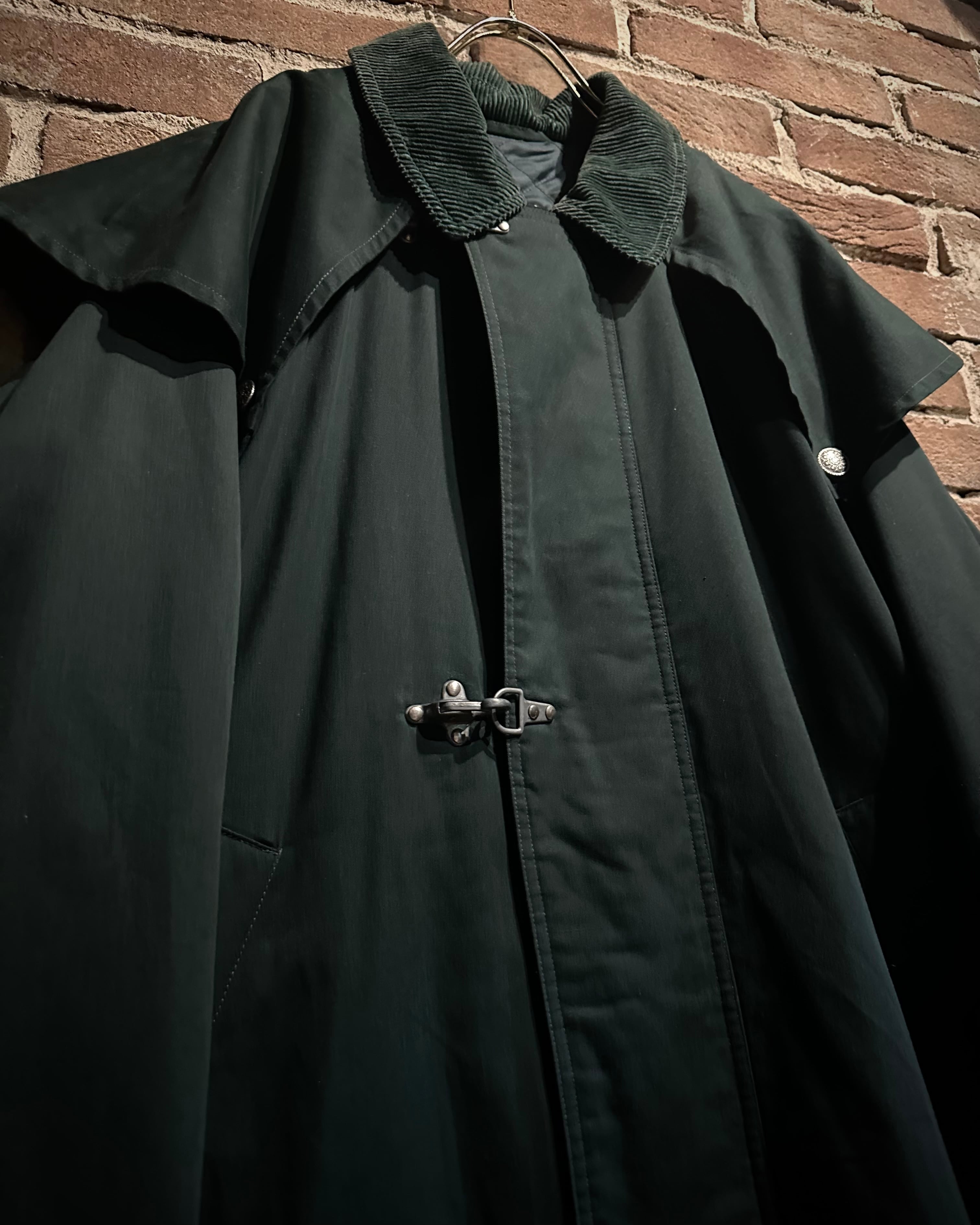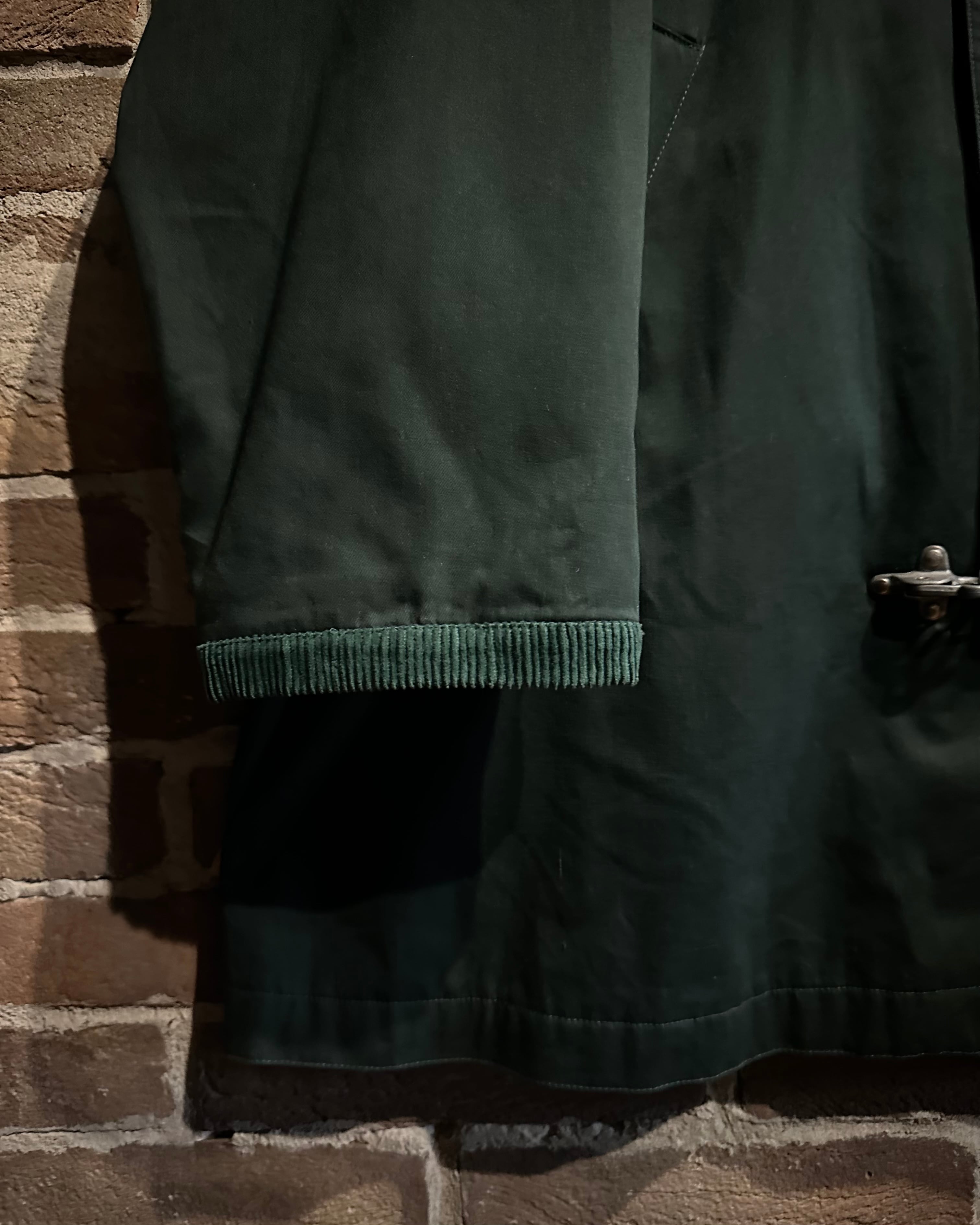 深みのあるグリーンのボディに、名だたるブランド達がデザインソースとしてサンプリングしているファイヤーマンバックルを載せたカバーオールジャケット。
