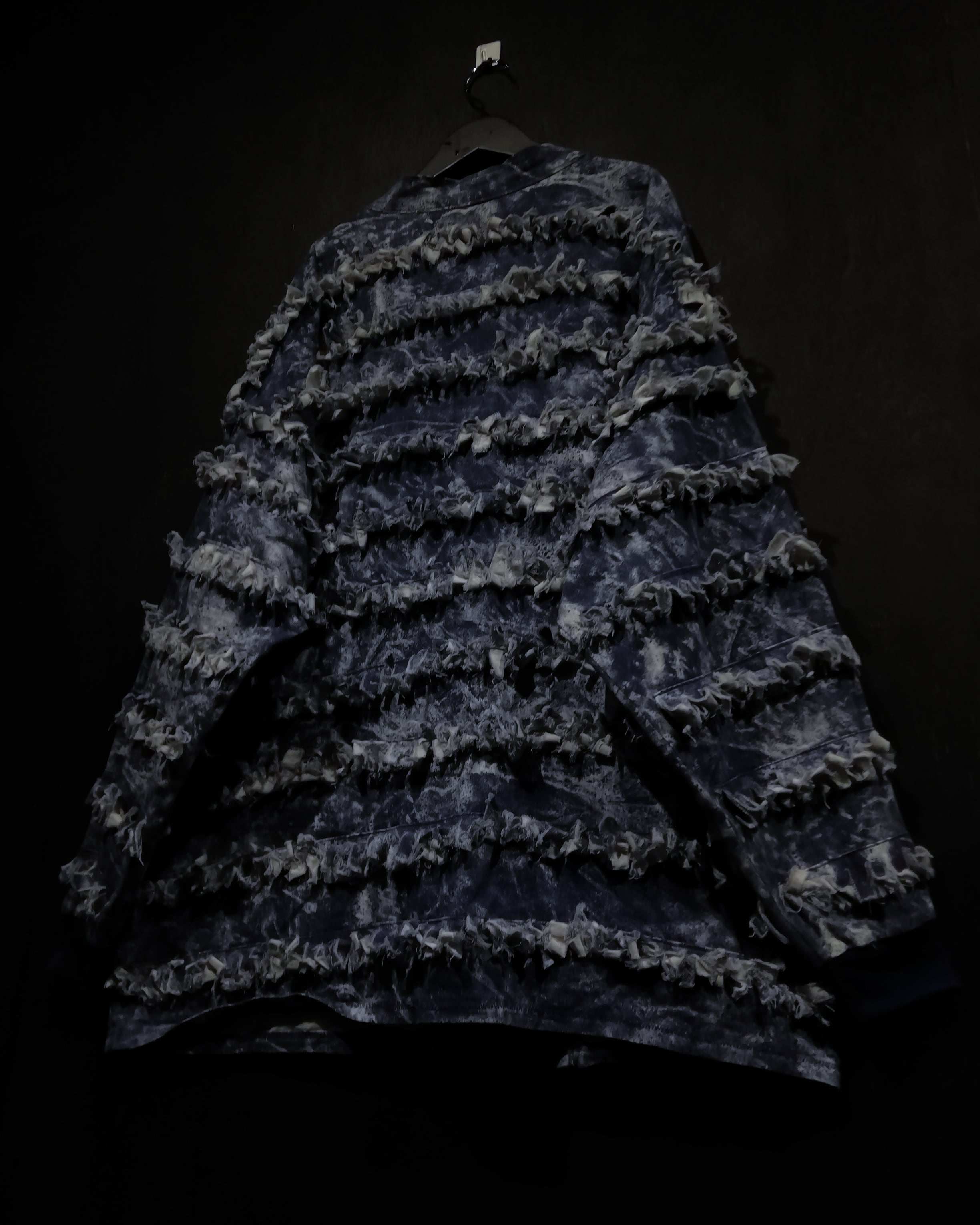 ブリーチの様な色の落ちを表現したボディをベースに、みっちりとフリンジを施した羽織型のジャケット。