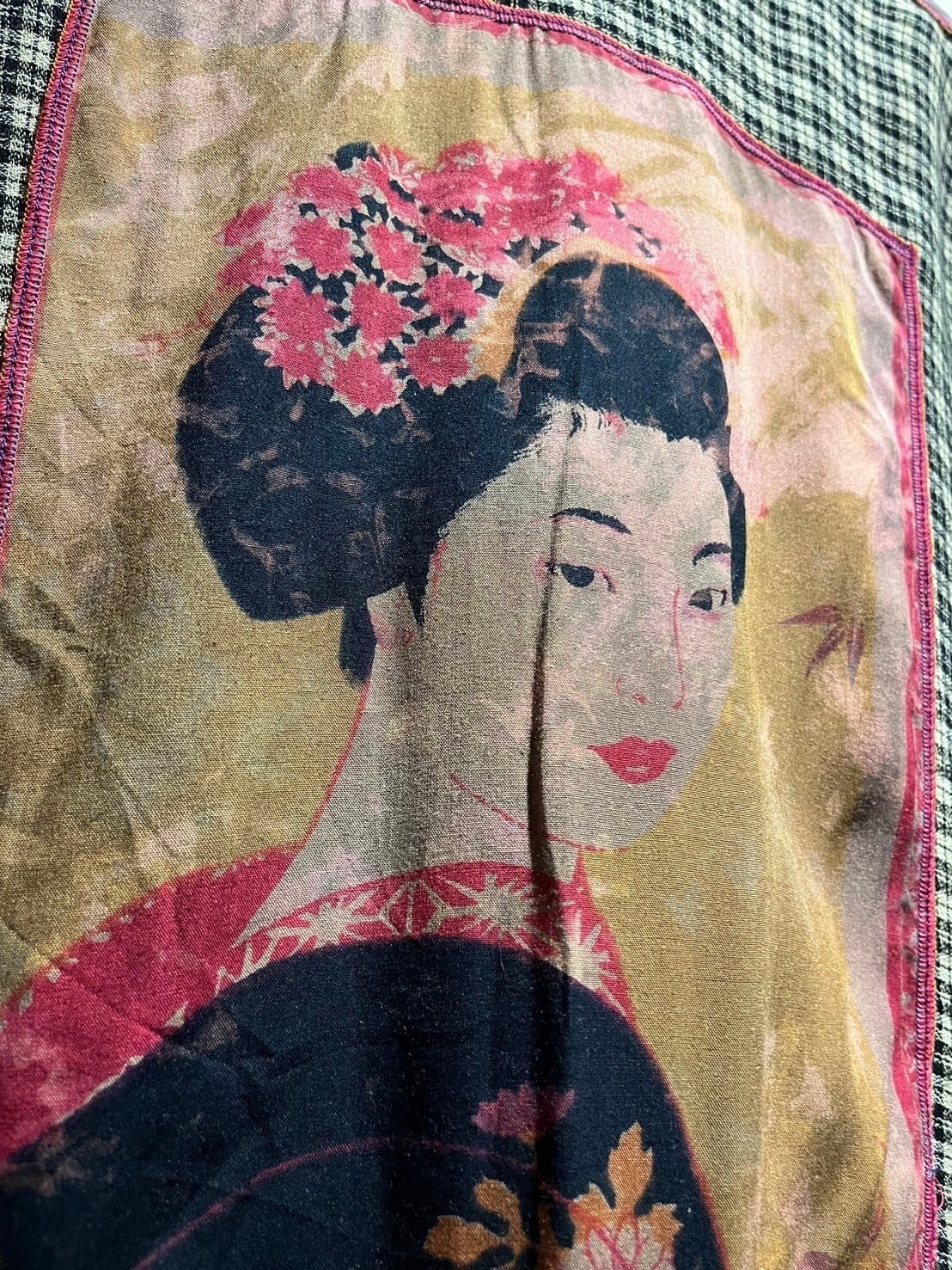 着物を着た美しい女性を前後に配置。デザインとして相反するものを掛け合わせ、巧みに1着のお洋服へと仕上げた作り手のハイなセンスに唸ってしまいます、、、