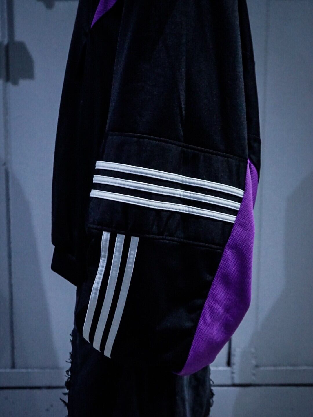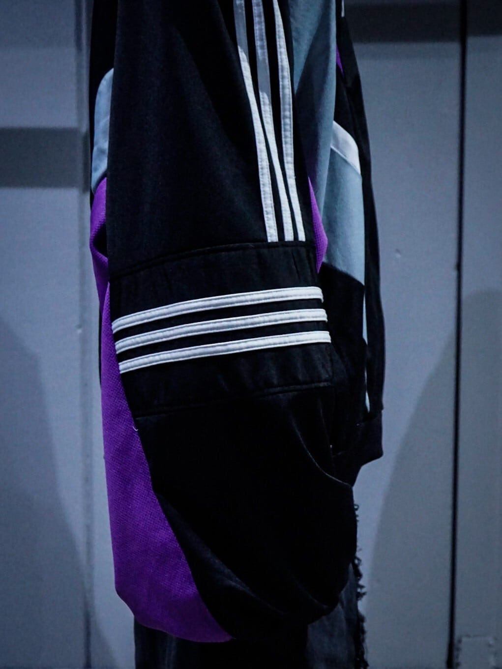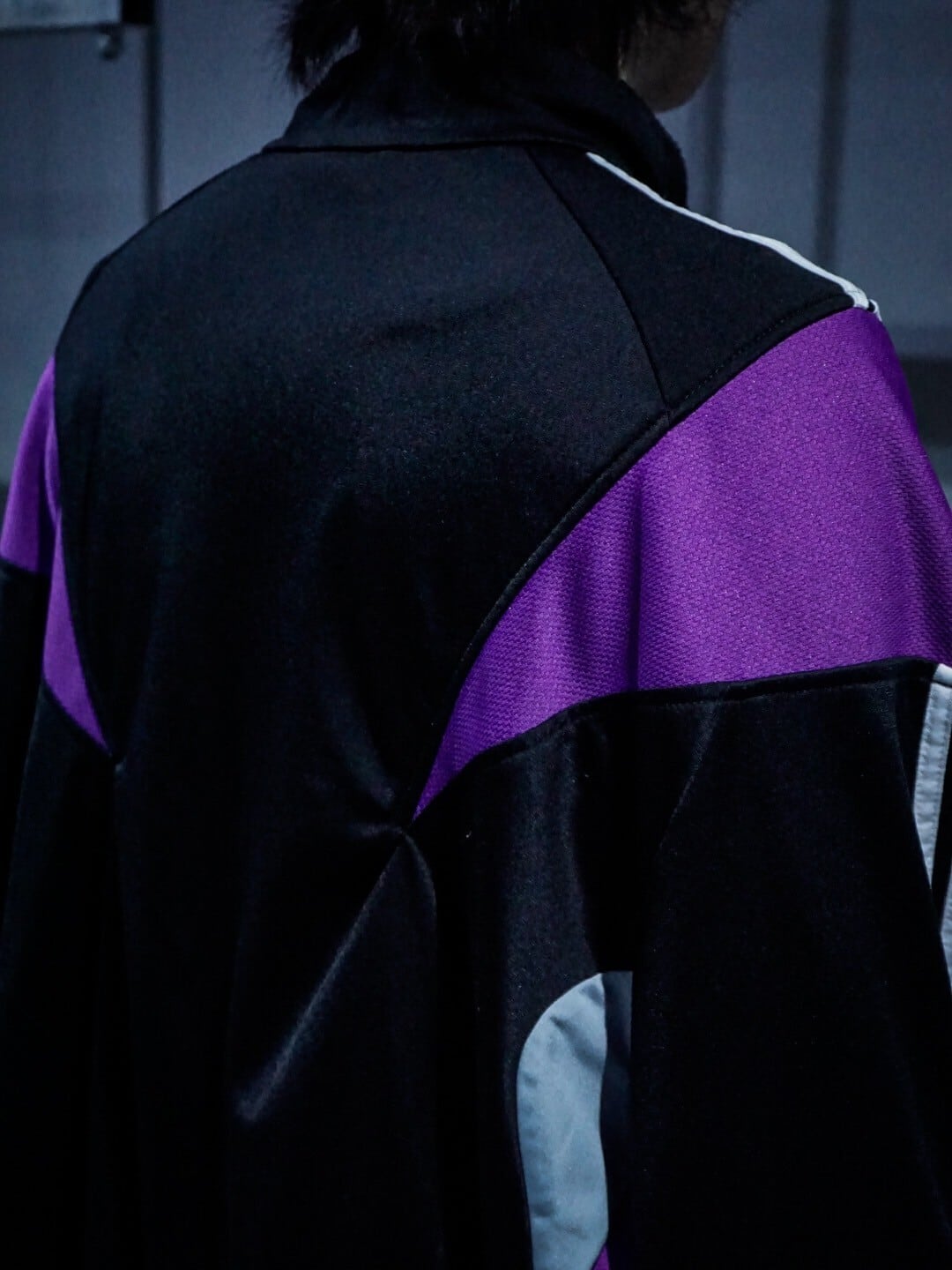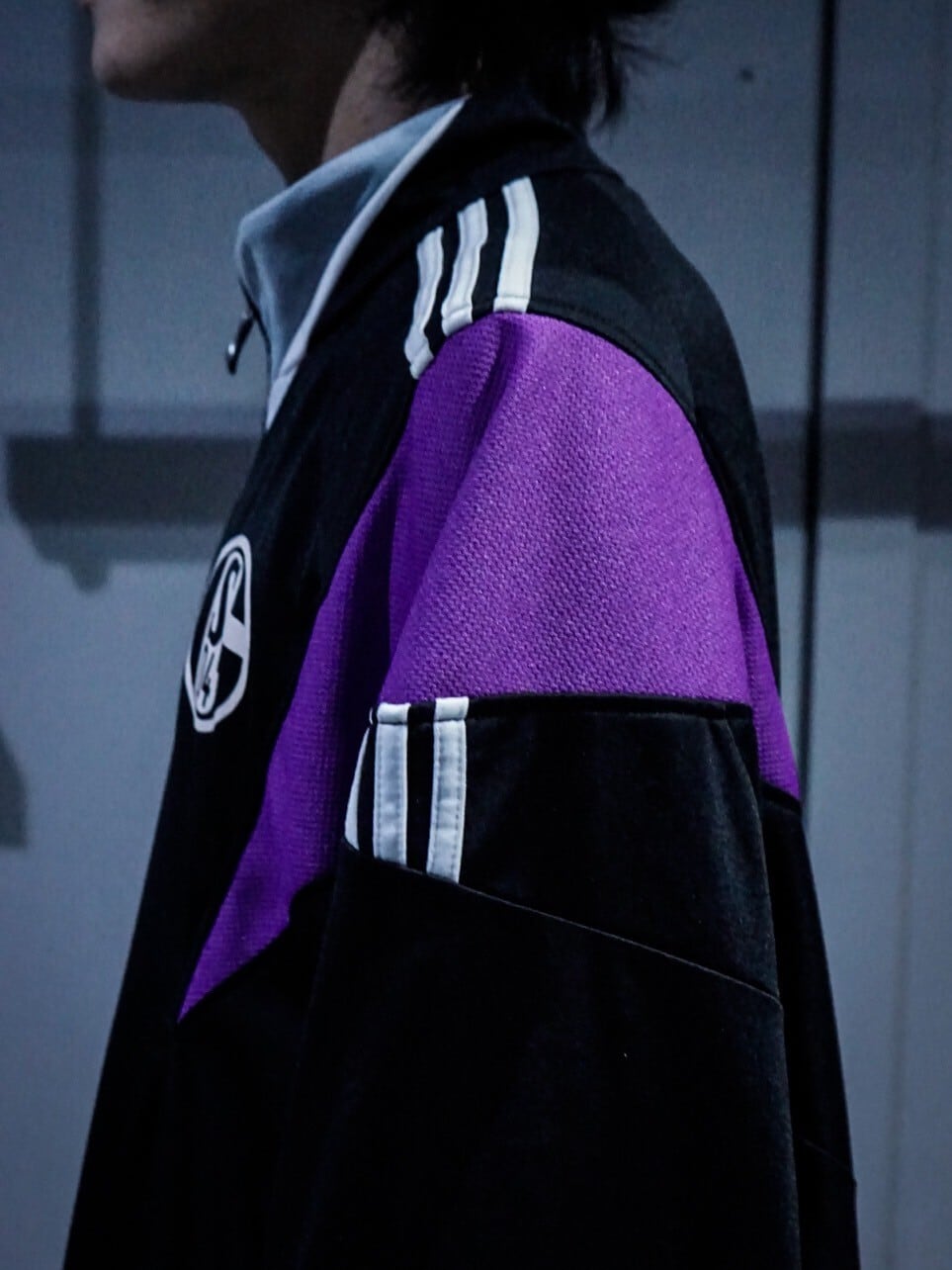 ブンデスリーガを代表するクラブ"シャルケ"のトラックジャケットに、肩、身頃から袖先にかけて通気性の良いパープルの生地をドッキング、ビッグスリーブに仕上げた逸品。