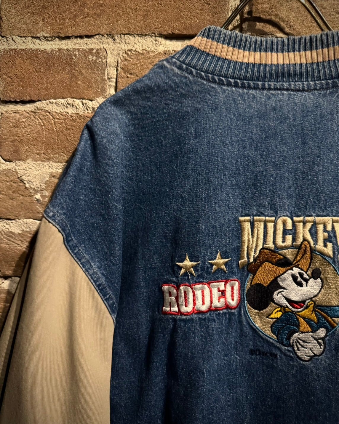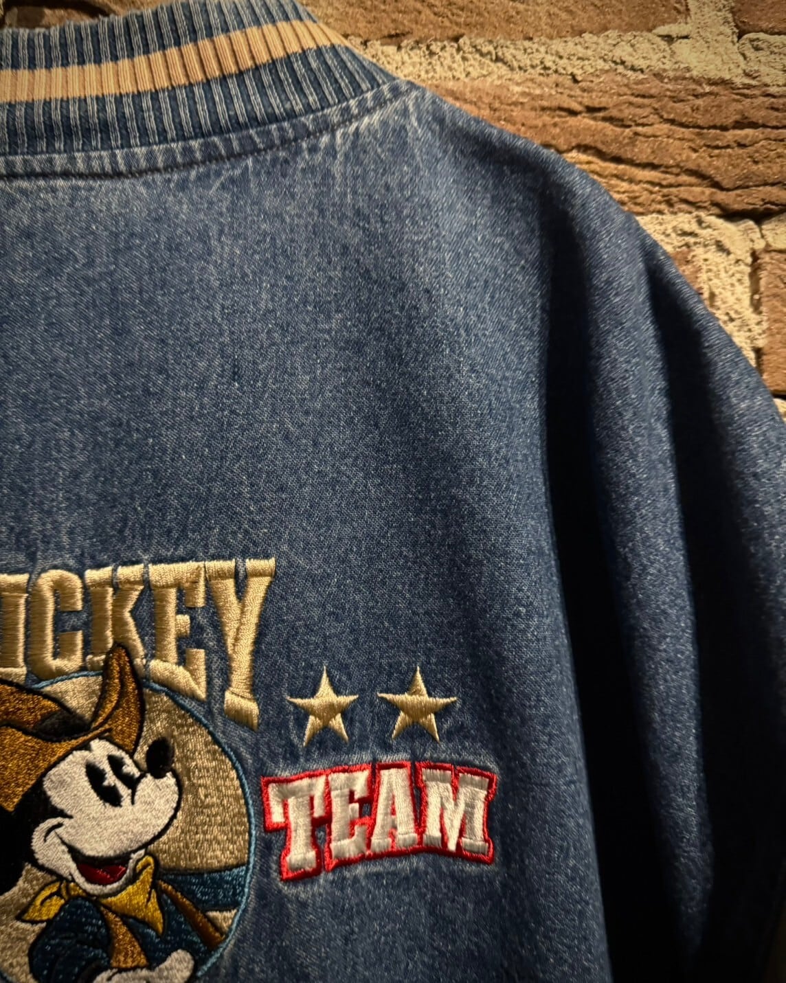 デニムのボディをベースに、カウボーイなミッキーを刺繍で刻んだデニムのスタジャン。