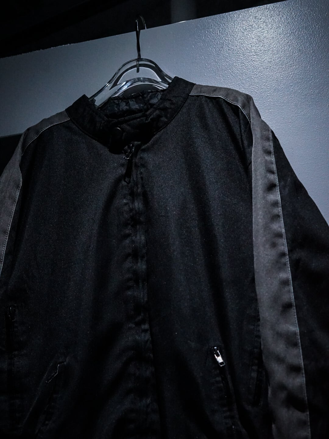 ブラックのボディをベースに、スリーブにグレーのラインを切り替え。サイドにジップポケットのギミックを載せた、メッシュのレーシングジャケット。