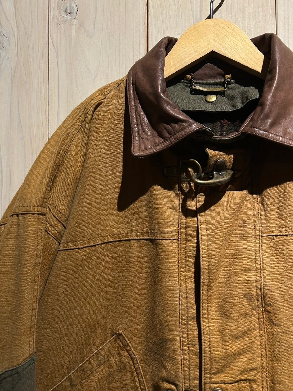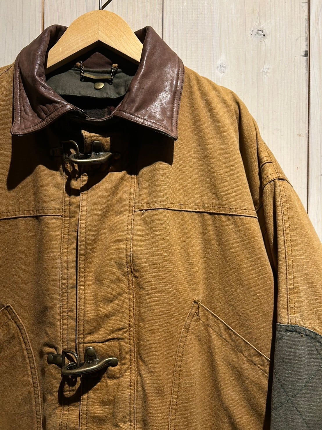 エルボーパッチに、襟はブラウンのレザーで切り替え。デザインのアクセントになると共に、摩耗からの耐久性の高さも誇ります。そして中綿入りのパデット仕様で保温性もバッチリです◎