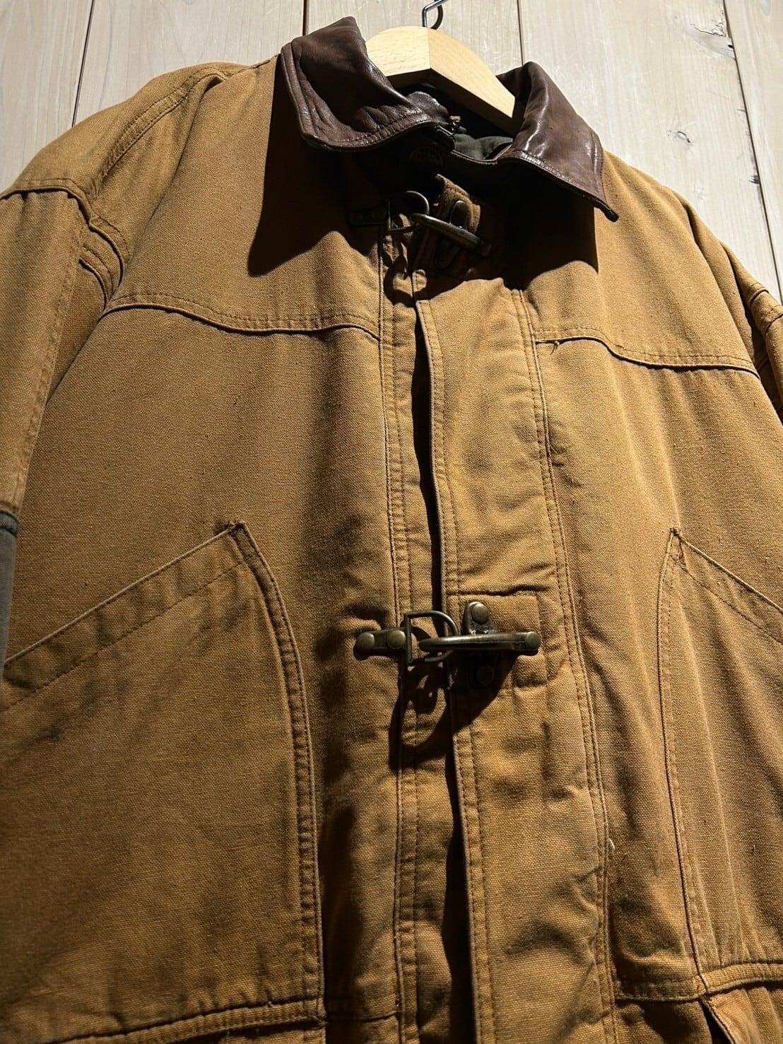 ガシッとタフなダック地のボディをベースに、フロントに名だたるブランドもサプリングしているファイアーマンバックルのギミックを載せたカバーオールジャケット。