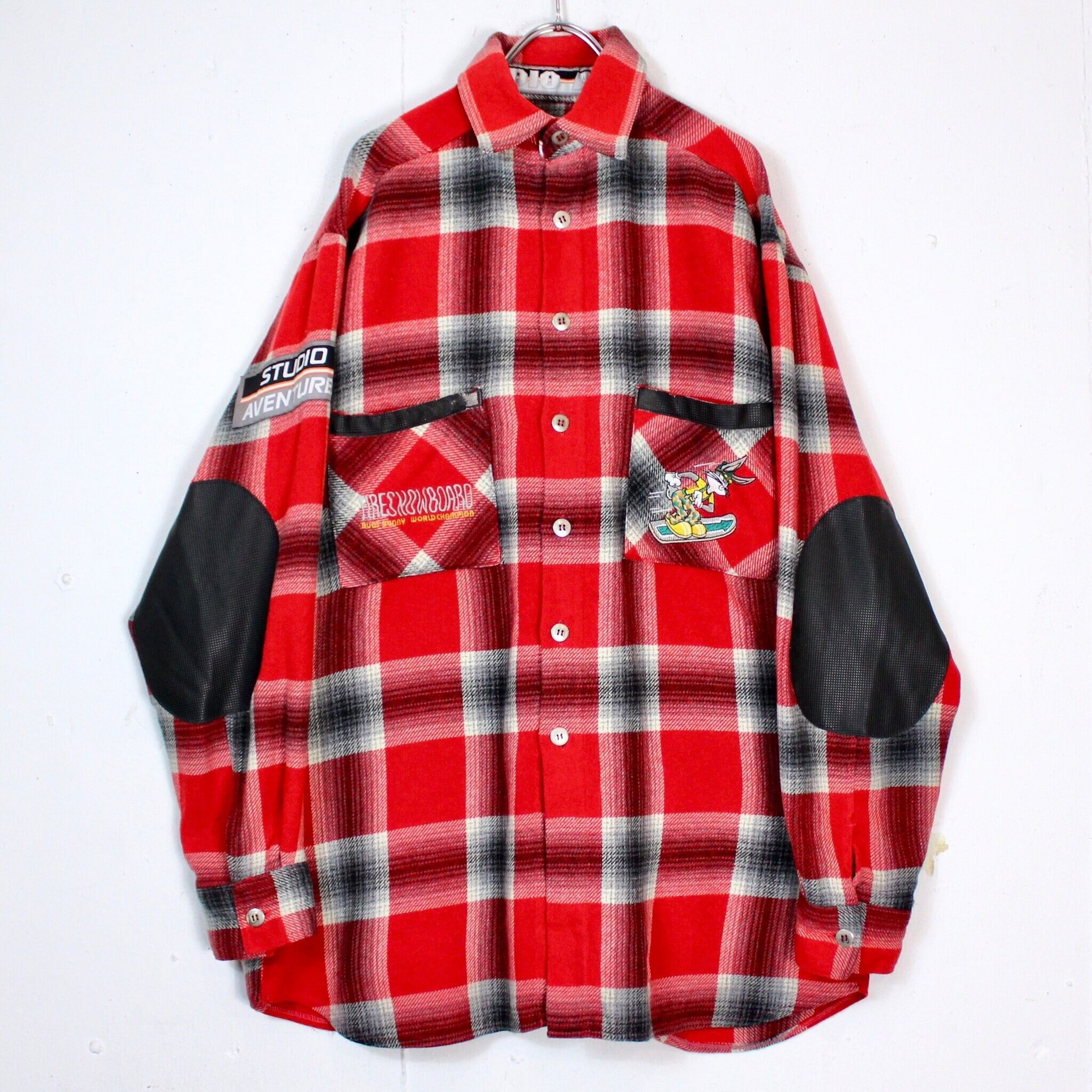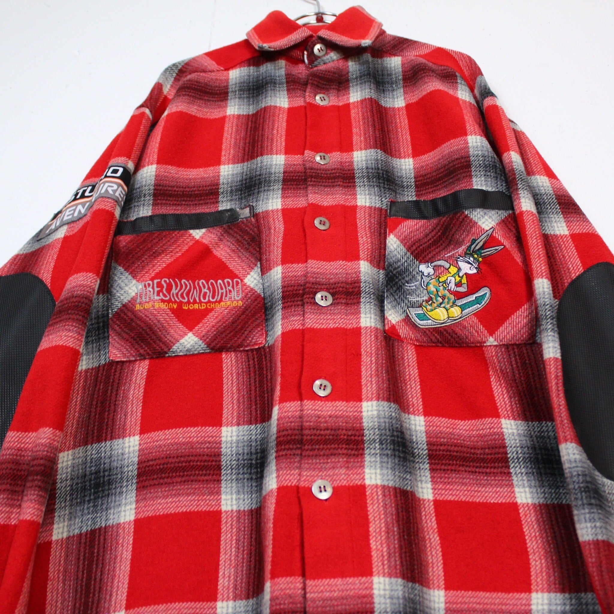 アメリカのワーナーブラザースが制作するアニメシリーズである"ルーニー・テューンズに登場する"バックスバニー"と、スノーボードブランドのコラボモノのオンブレチェックシャツ。