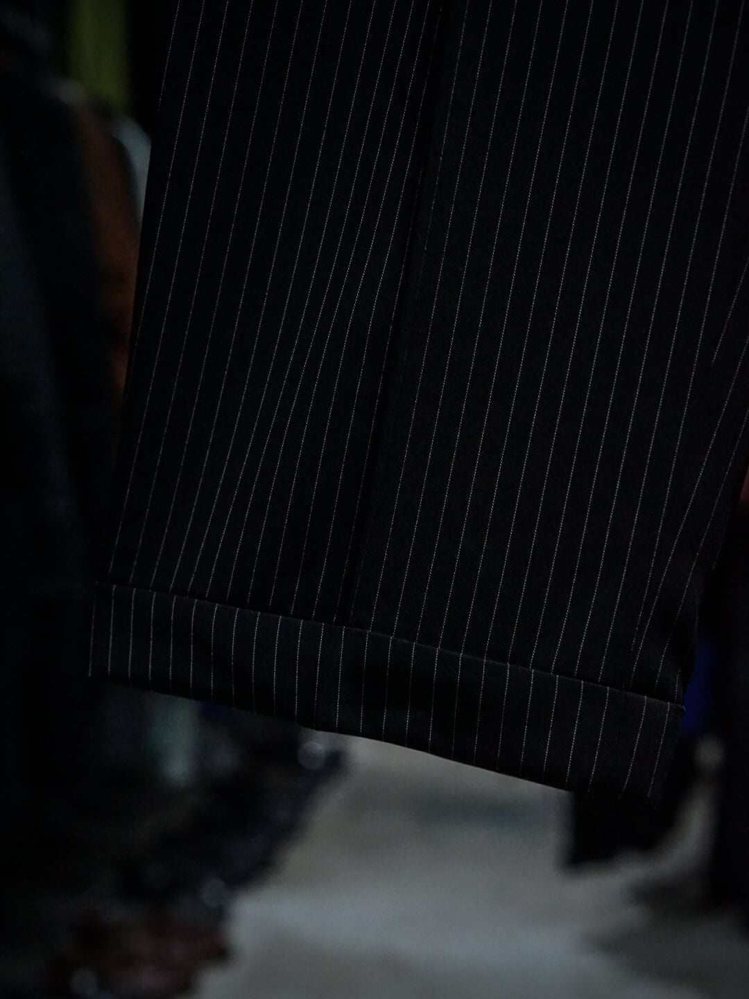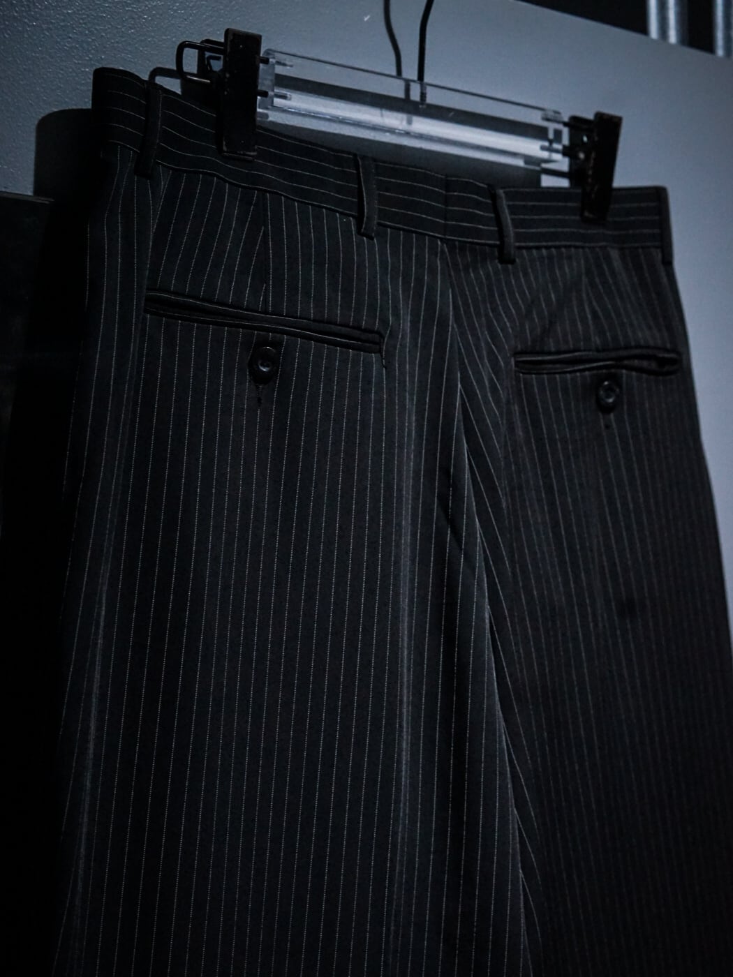 パンツは2タックで太腿周りはゆったりと、裾に向かって緩やかに細くなるテーパードシルエット。この美しくスタイリッシュなシルエット、是非一度体験して頂きたい、、、