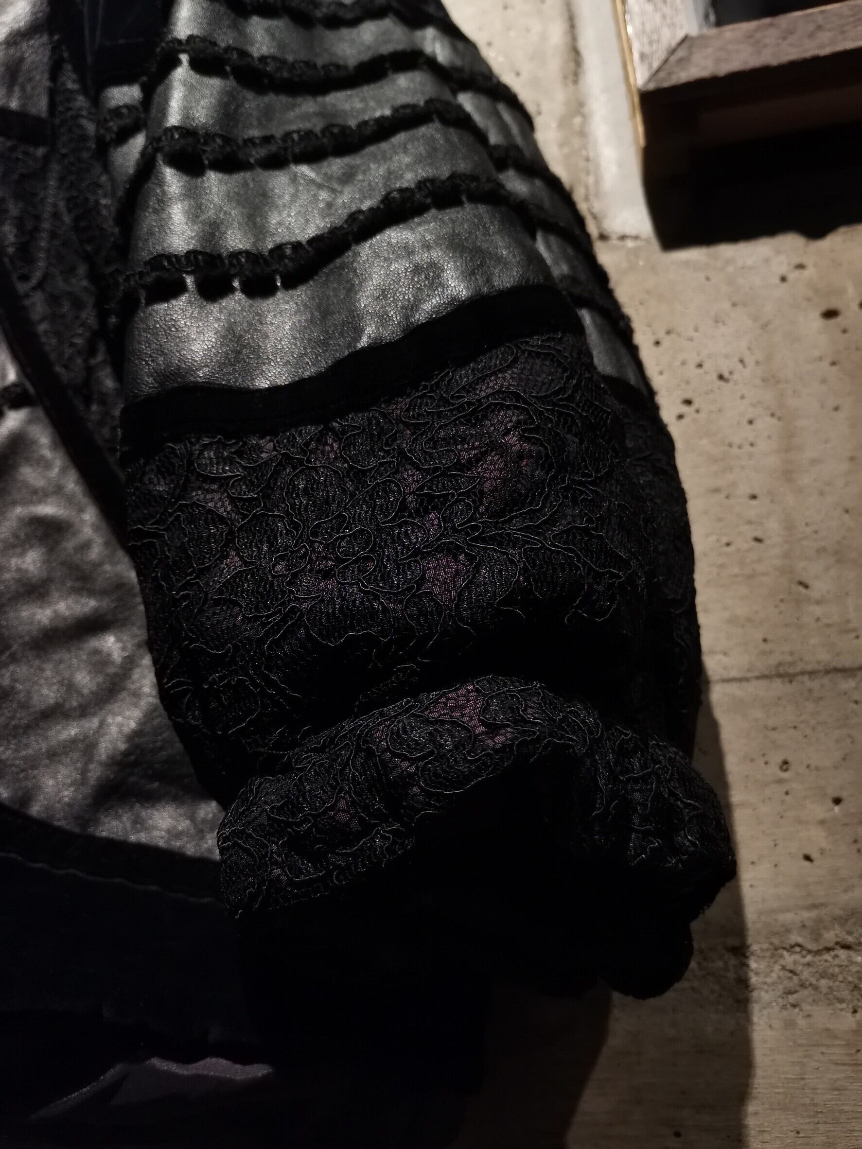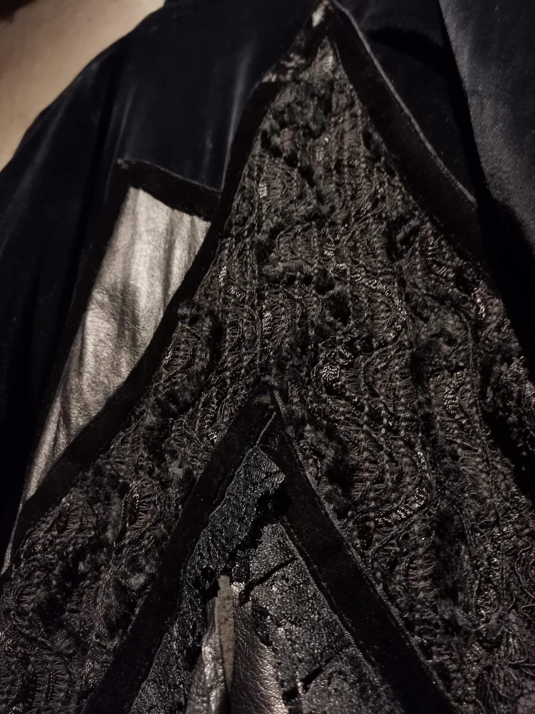 起毛感のあるベルベットを用いたボディに、レザー、レースを贅沢に切り替えた稀有なジャケット。