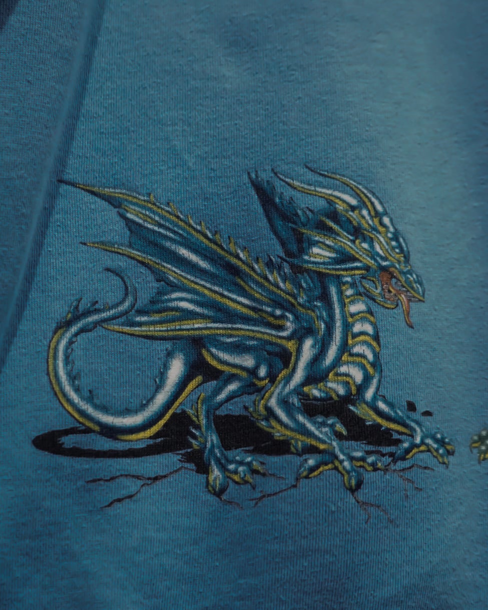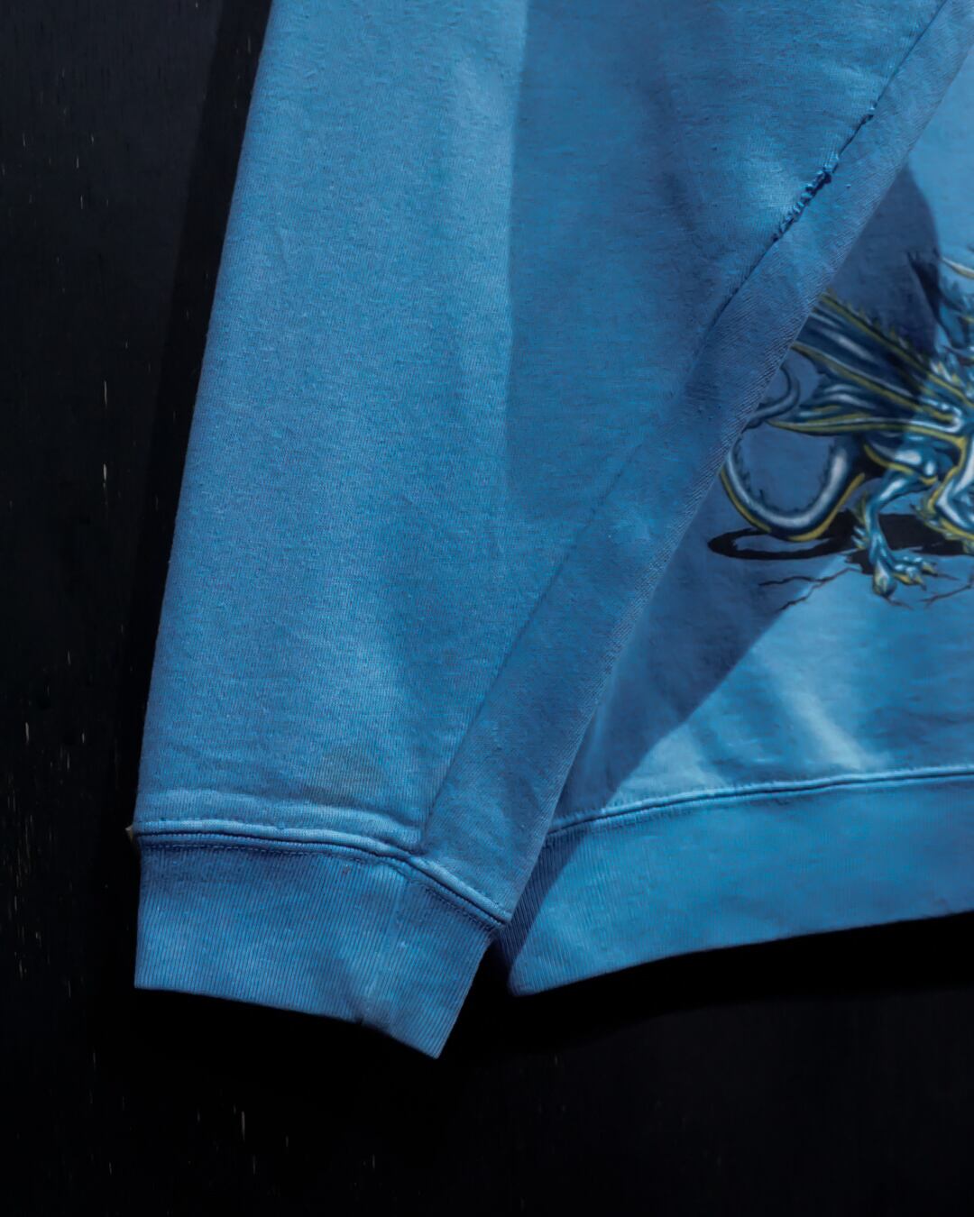 水色のボディをベースに、チャイナとはまた違った、厨二心くすぐられるドラゴンをプリントで載せたフーディ。
