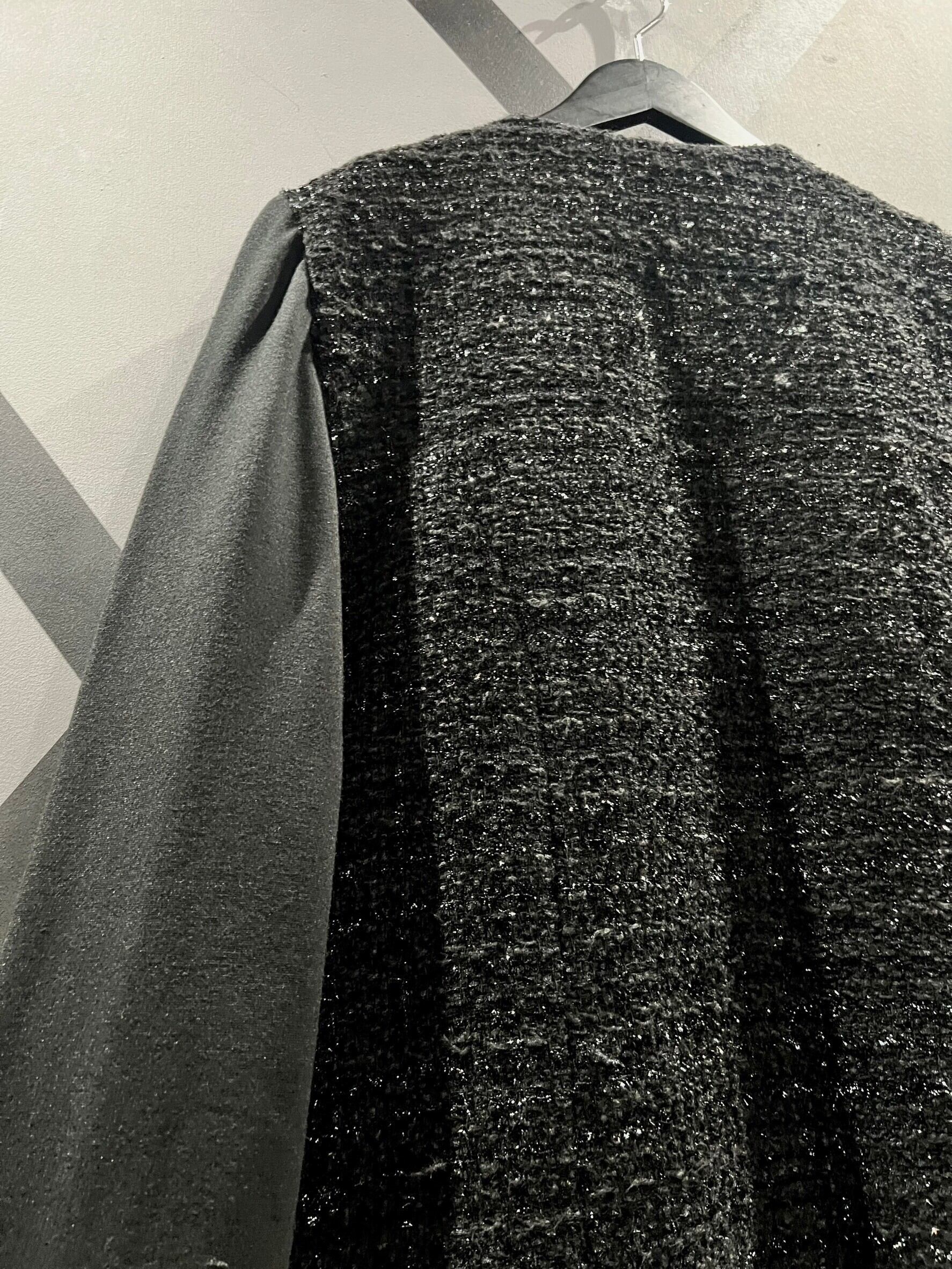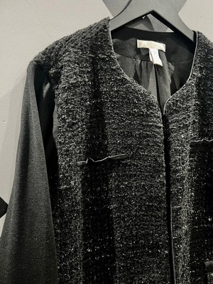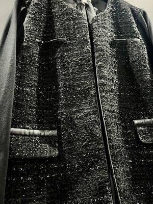 ココ・シャネルがこよなく愛したシャネルツイードを身頃に切り替えた羽織ジャケット。
