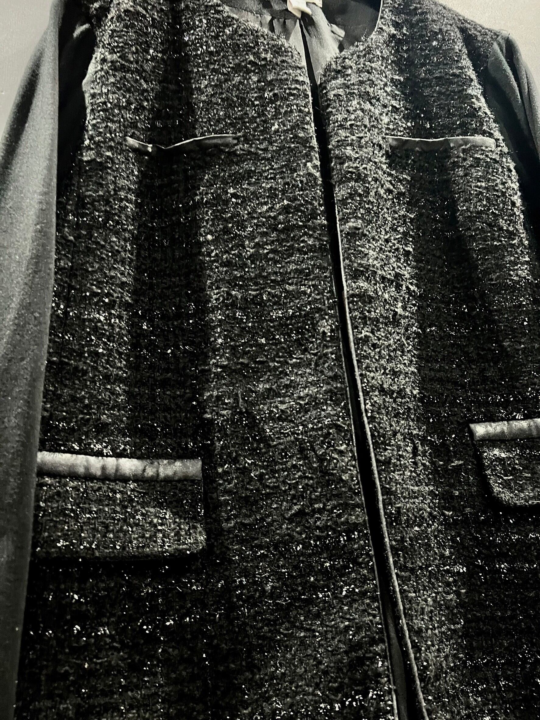 ファンシーツイードとも呼ばれカラフルな物がほとんどですが、こちらはオールブラックで織りあげた稀有な1着。
