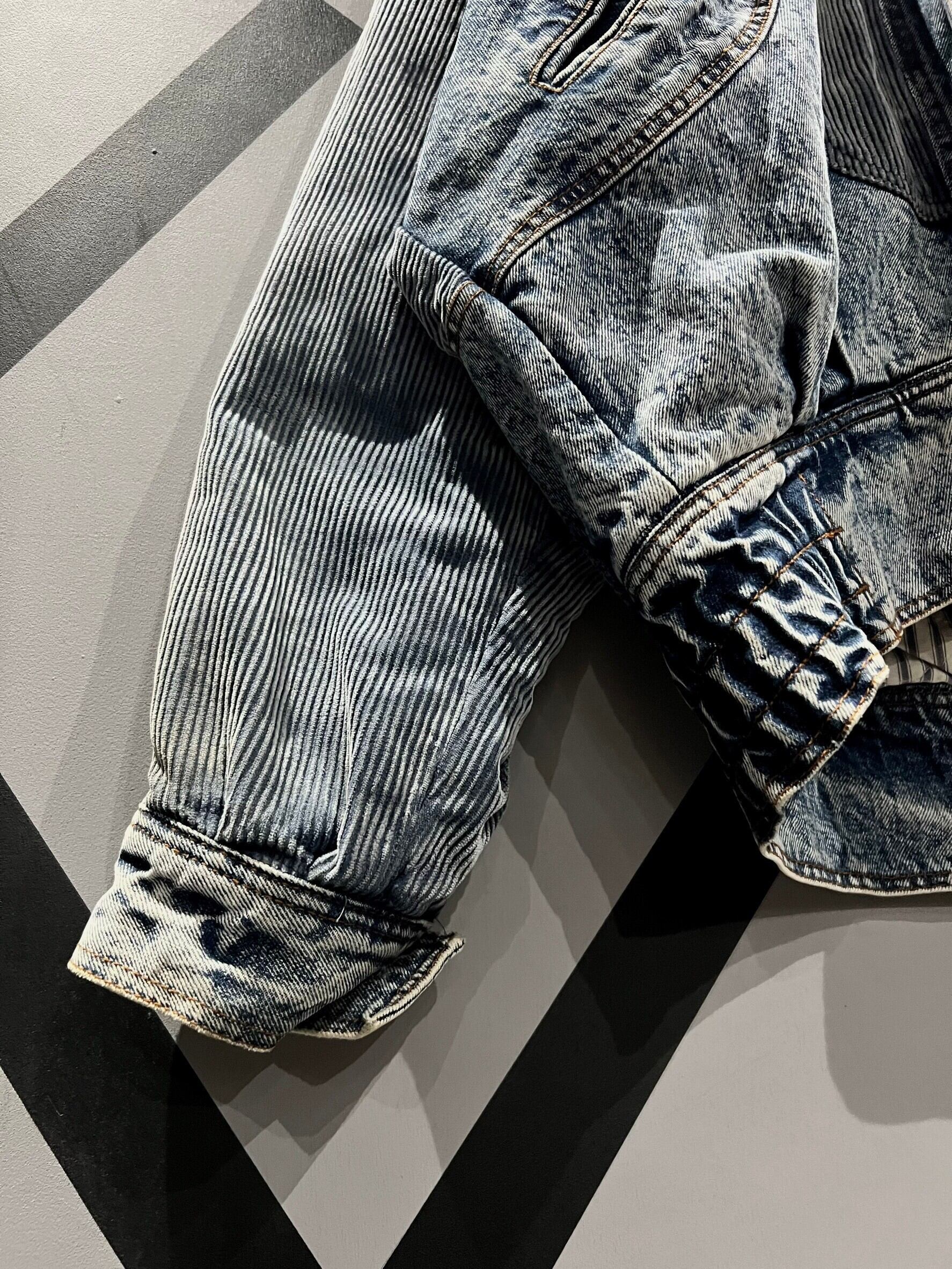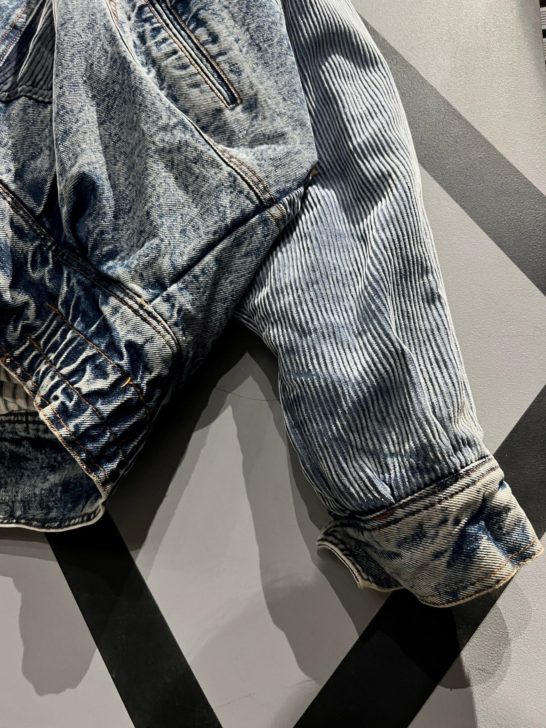 ケミカルウォッシュを施したデニムのボディに、随所にコーデュロイを切り替えたデニムジャケット。