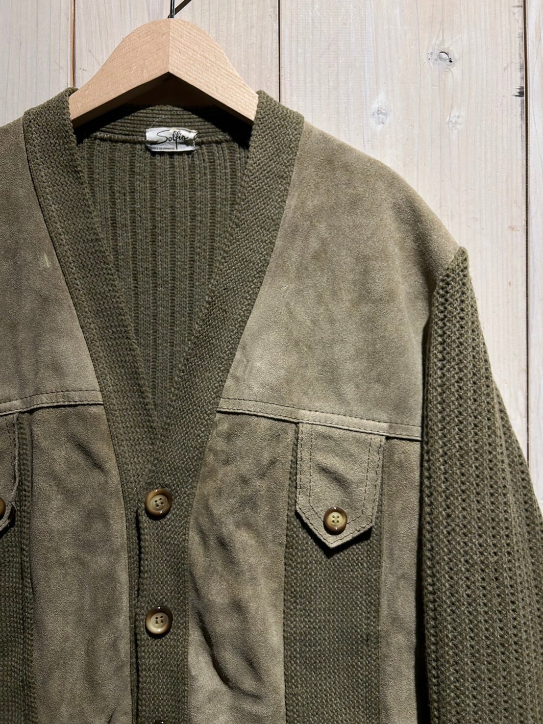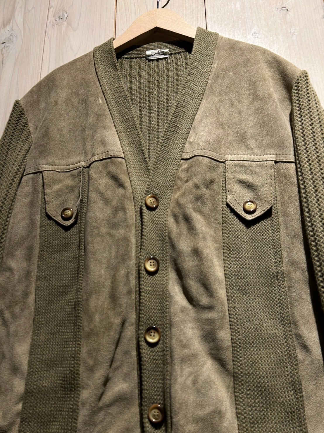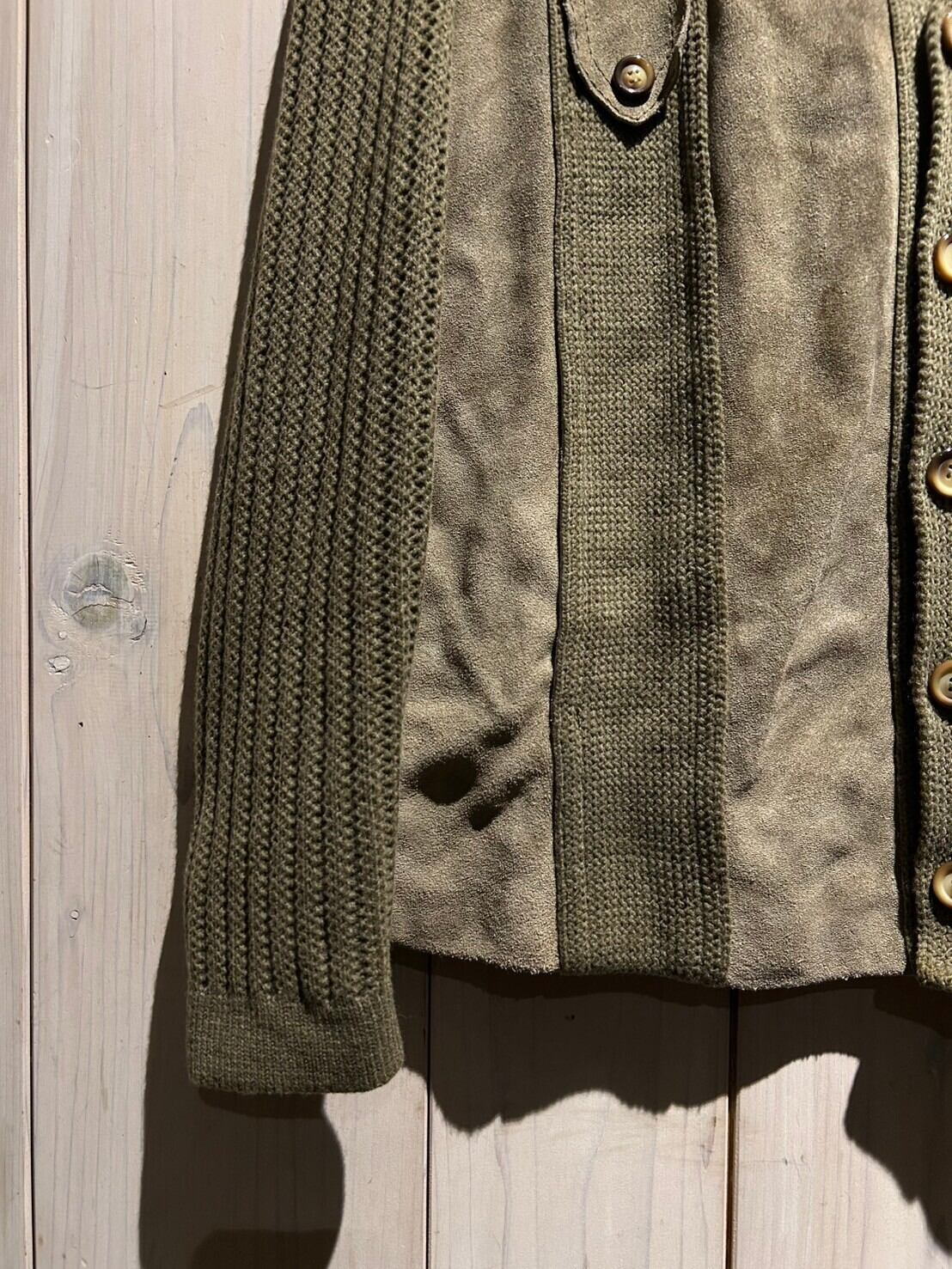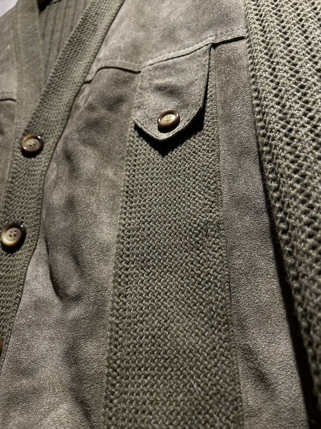 ニットカーディガンに大胆にスエードレザーを切り替えた稀有な1着。異素材を巧みに組み合わせ1枚に纏め上げたカーディガンジャケットのスペシャルな逸品です。