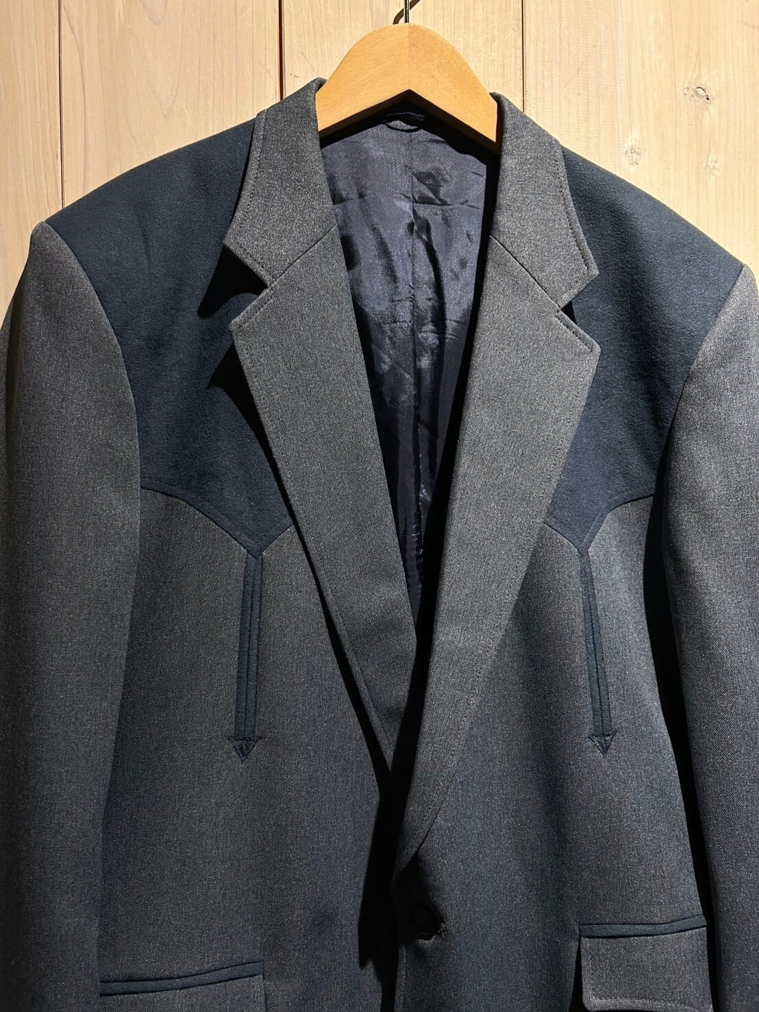 ブルーグレーのボディをベースに、ウエスタンヨークやアーチを描くフラップポケットと、ウエスタンディテールがふんだんに詰め込まれた気品漂うテーラードジャケット。