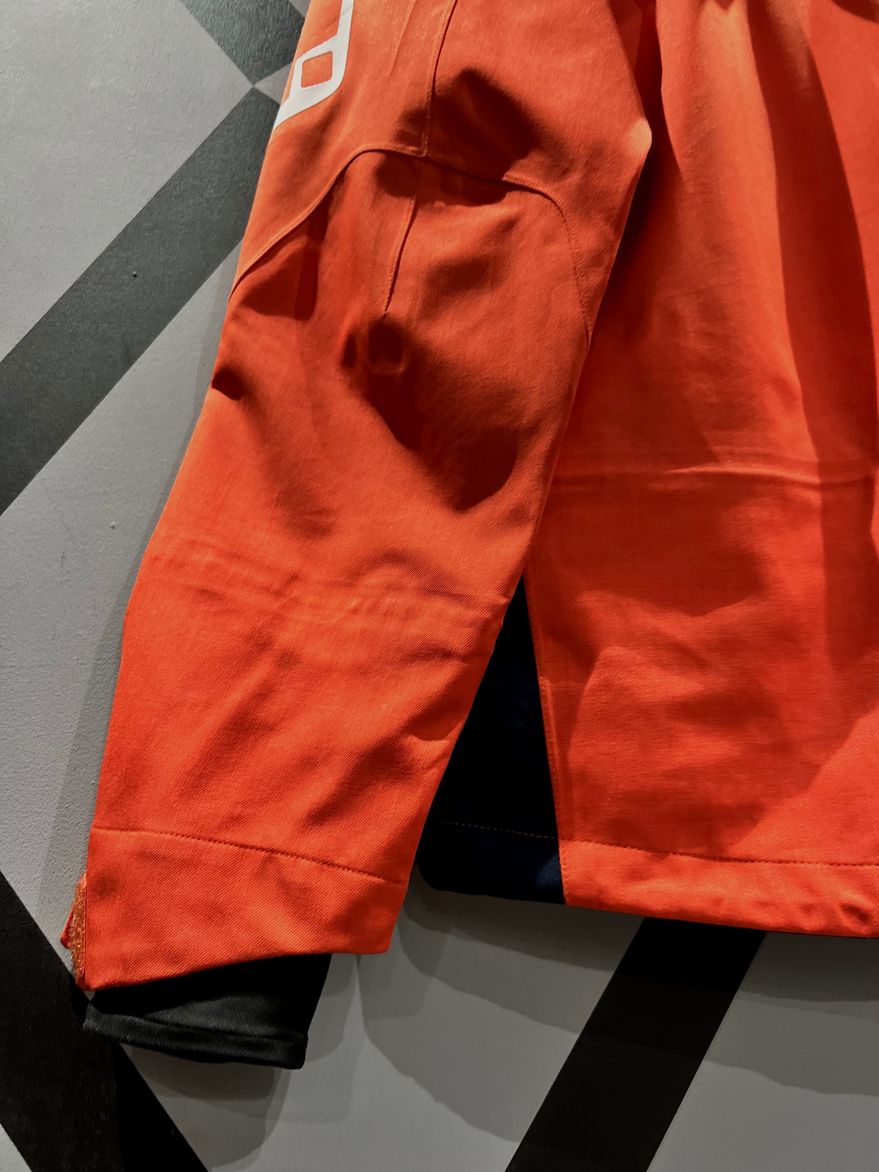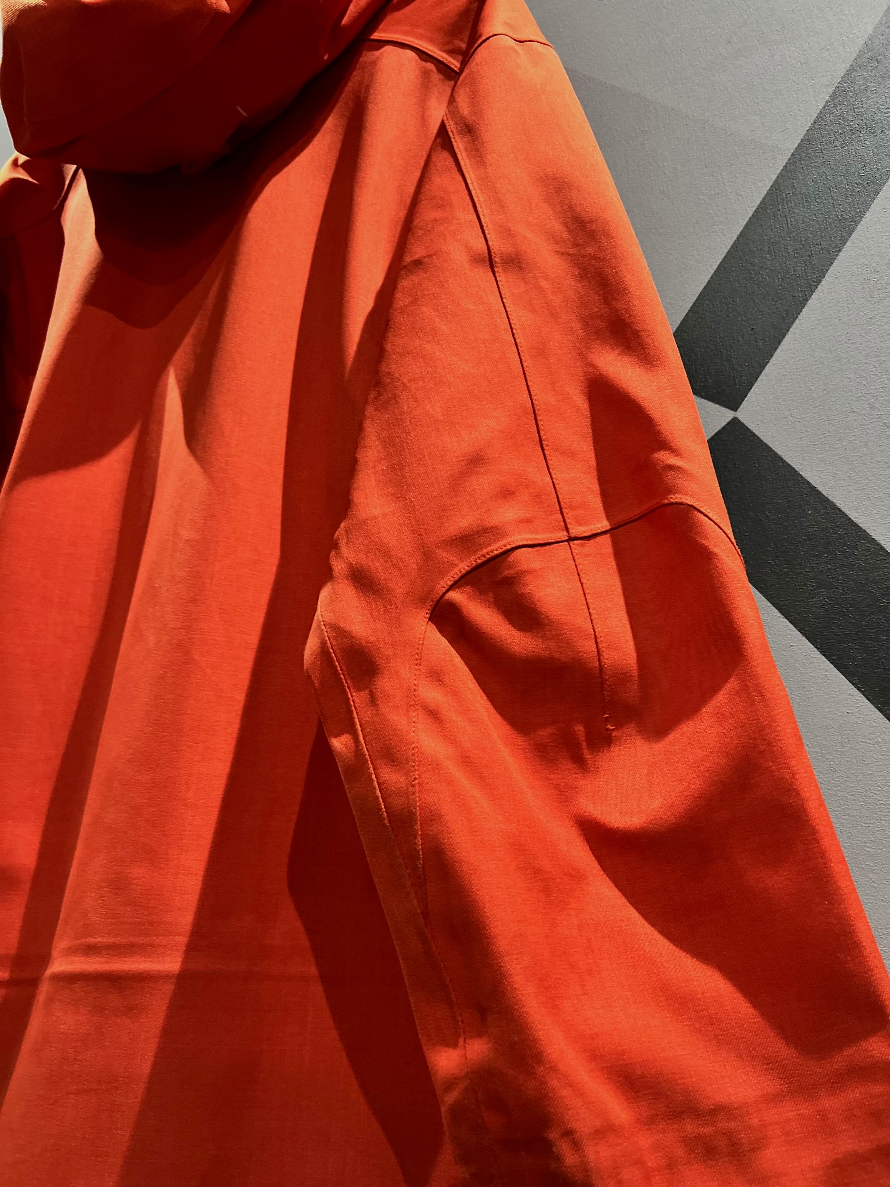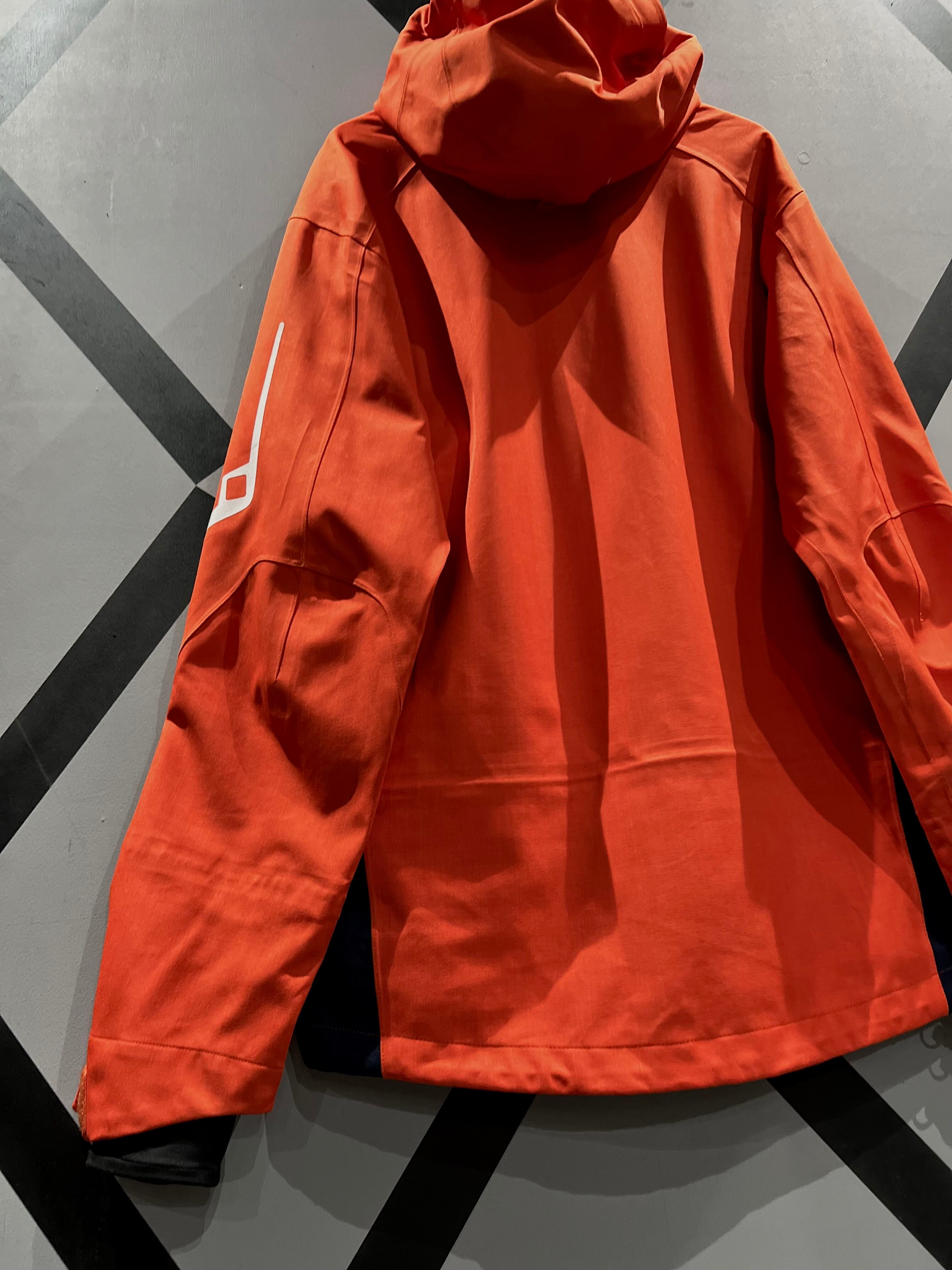 ガシッとタフな素材を用いたビビッドオレンジのボディに、ギアジャケットらしいギミックを盛り込んだ1着。