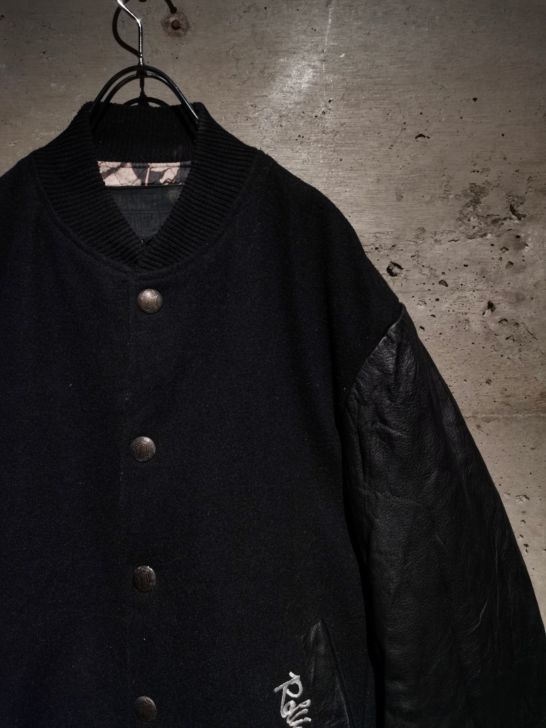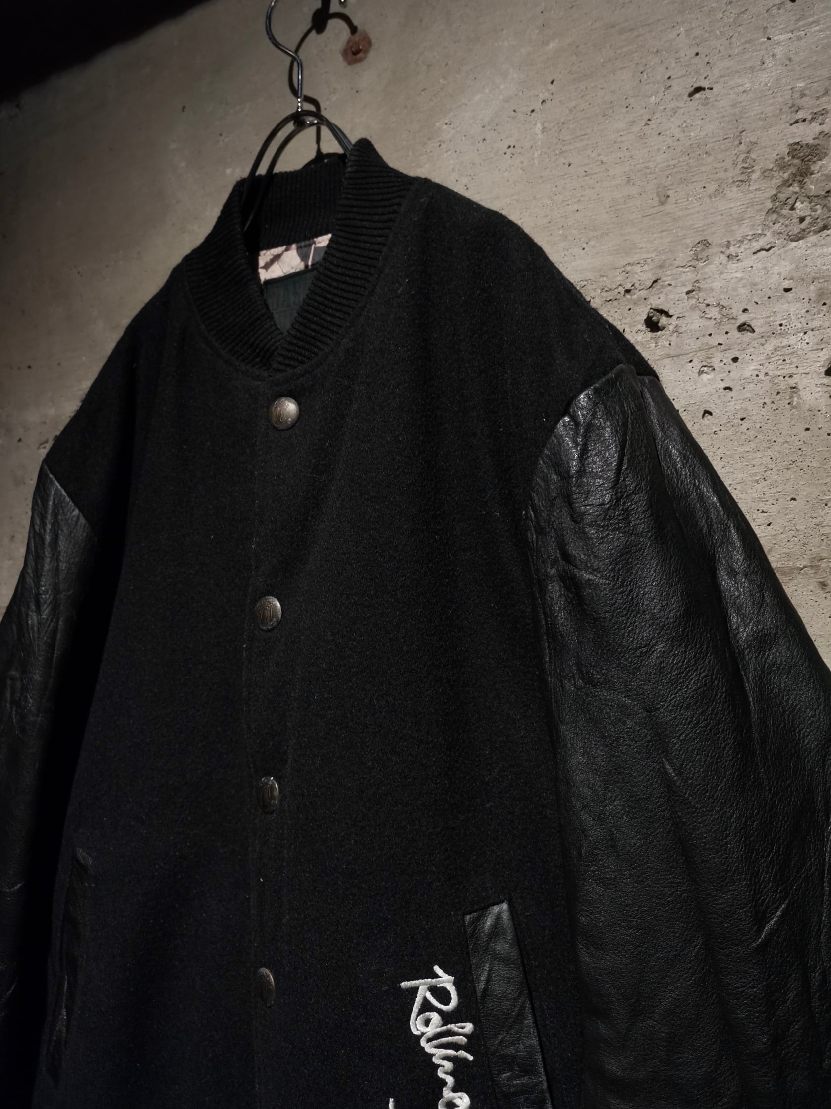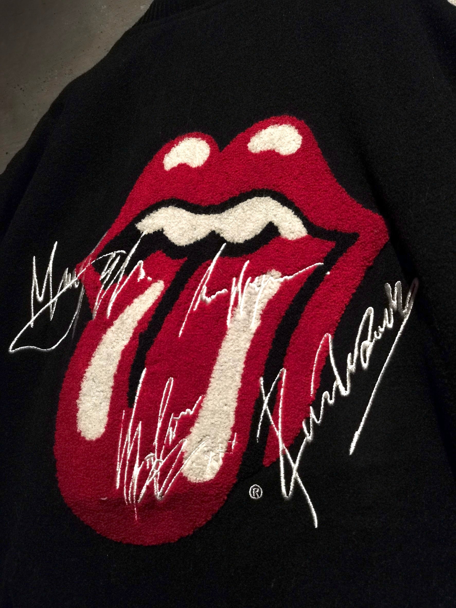 ボディにはメルトン、アームにはブラックレザーを切り替え。背面にアイコニックな"Lips and Tongue"のパッチ、メンバーのサインを刺繍で刻んだ稀有なスタジャン。