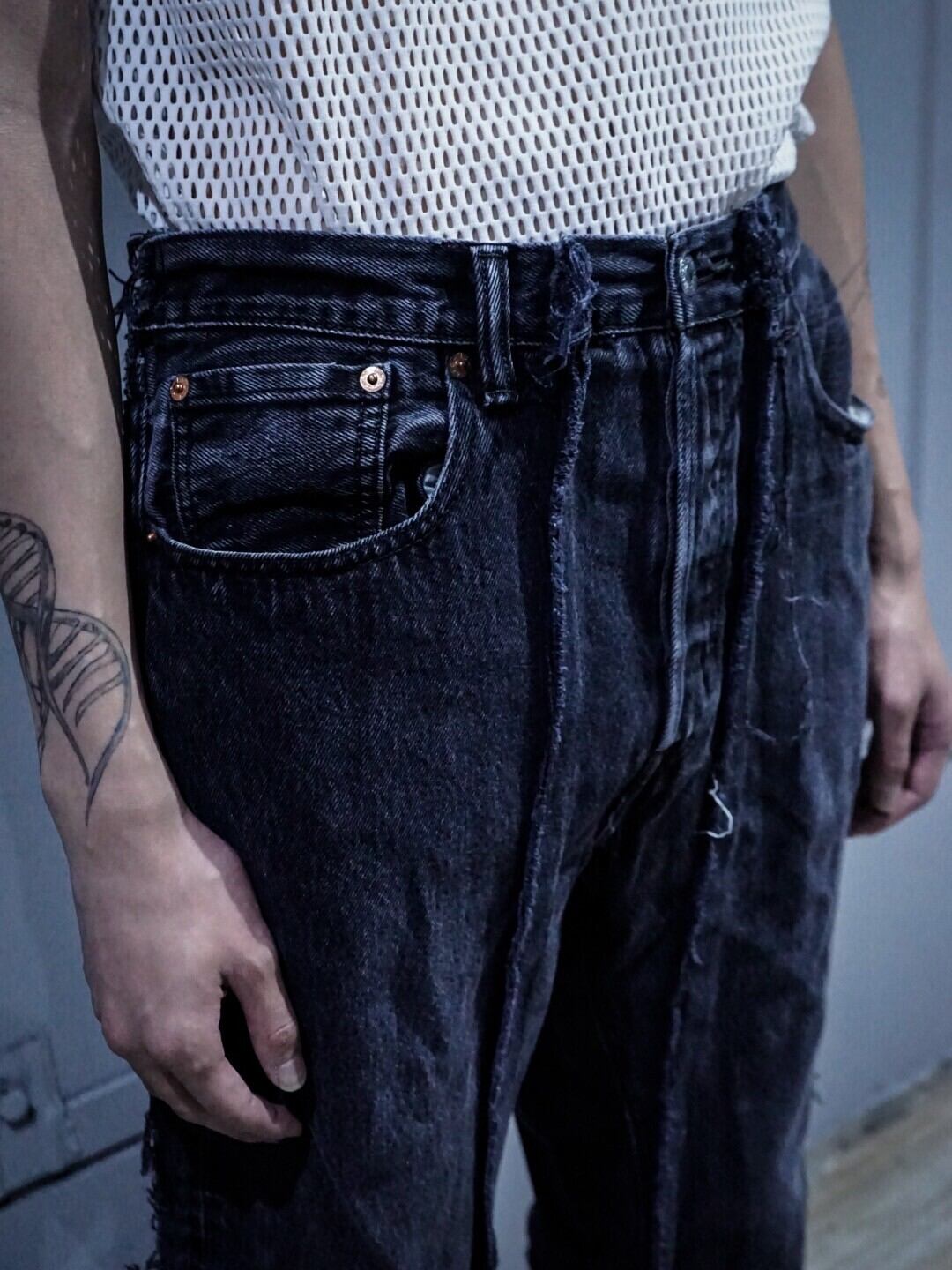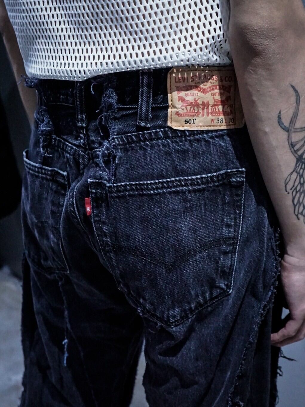 ブラックデニムをベースとし、レディースのジャケットに用いられるパネルパターンを施しシルエットを改造したスペシャルなOriginal Remakeの1本。