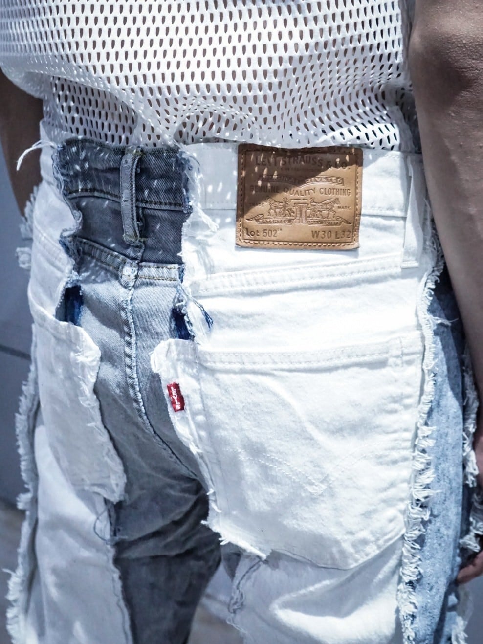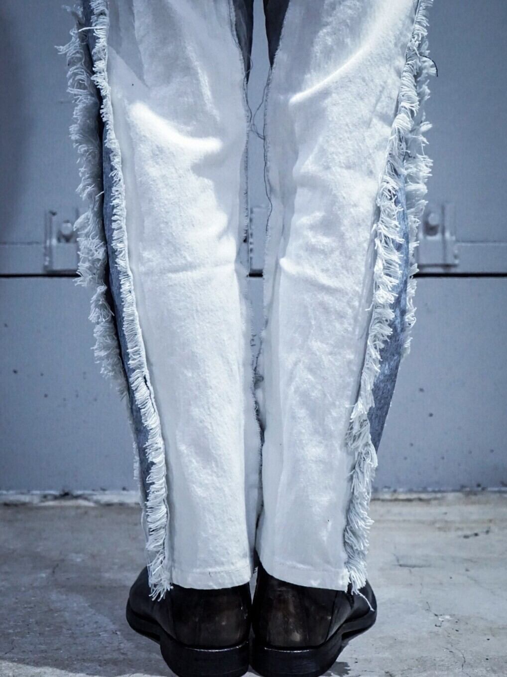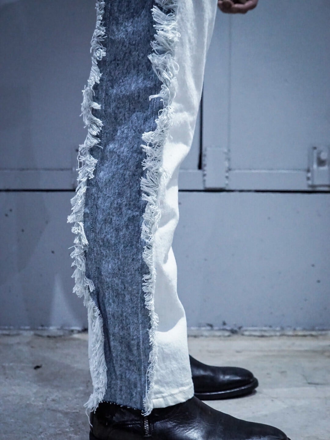 ホワイトジーンズをベースとし、レディースのジャケットに用いられるパネルパターンを施し、シルエットを改造したスペシャルなOriginal Remakeの1本。
