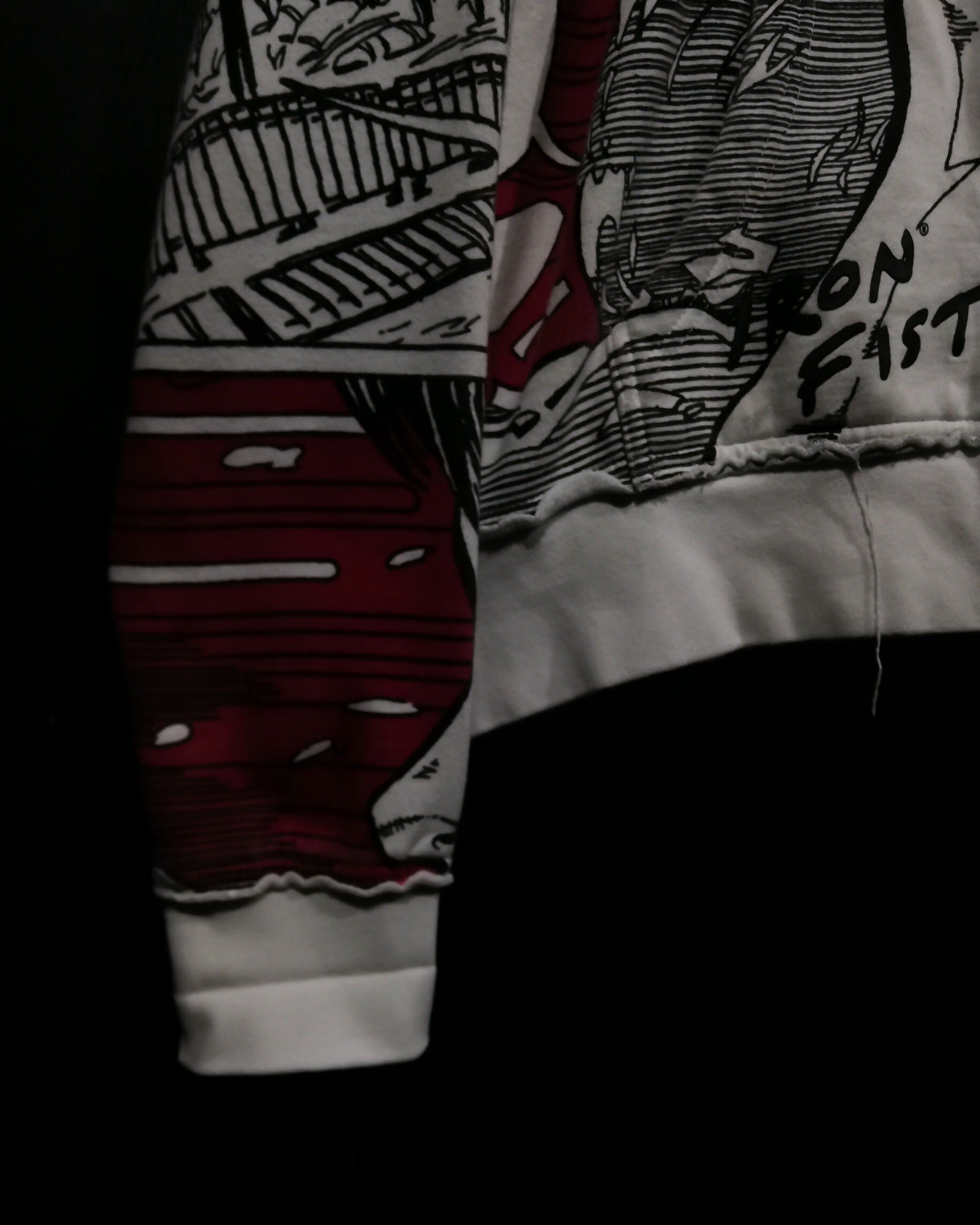 ホワイトのボディをベースに、アメコミなタッチで描かれたコミックのデザインを載せた1着。