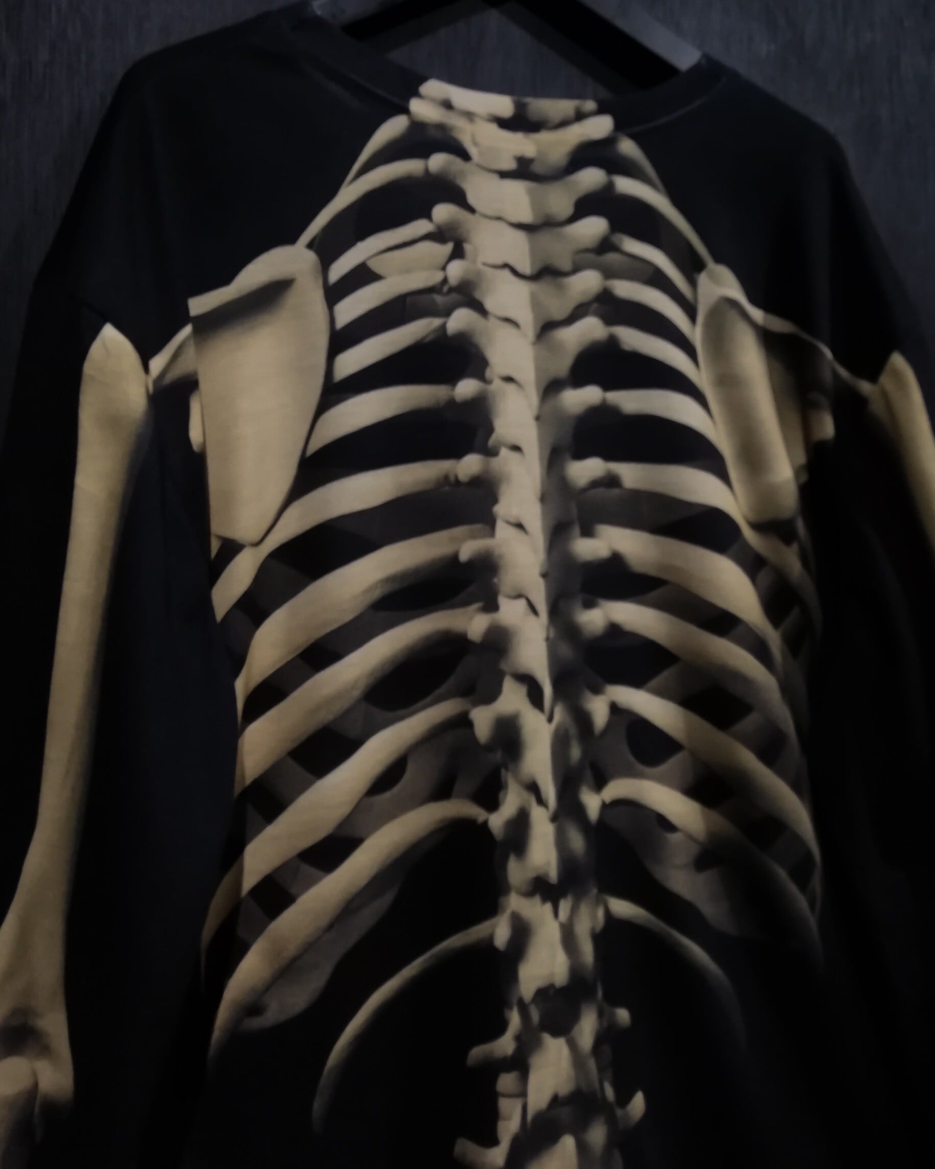 ブラックベースのボディに、スケルトンのデザインを載せた稀有なロンT。
