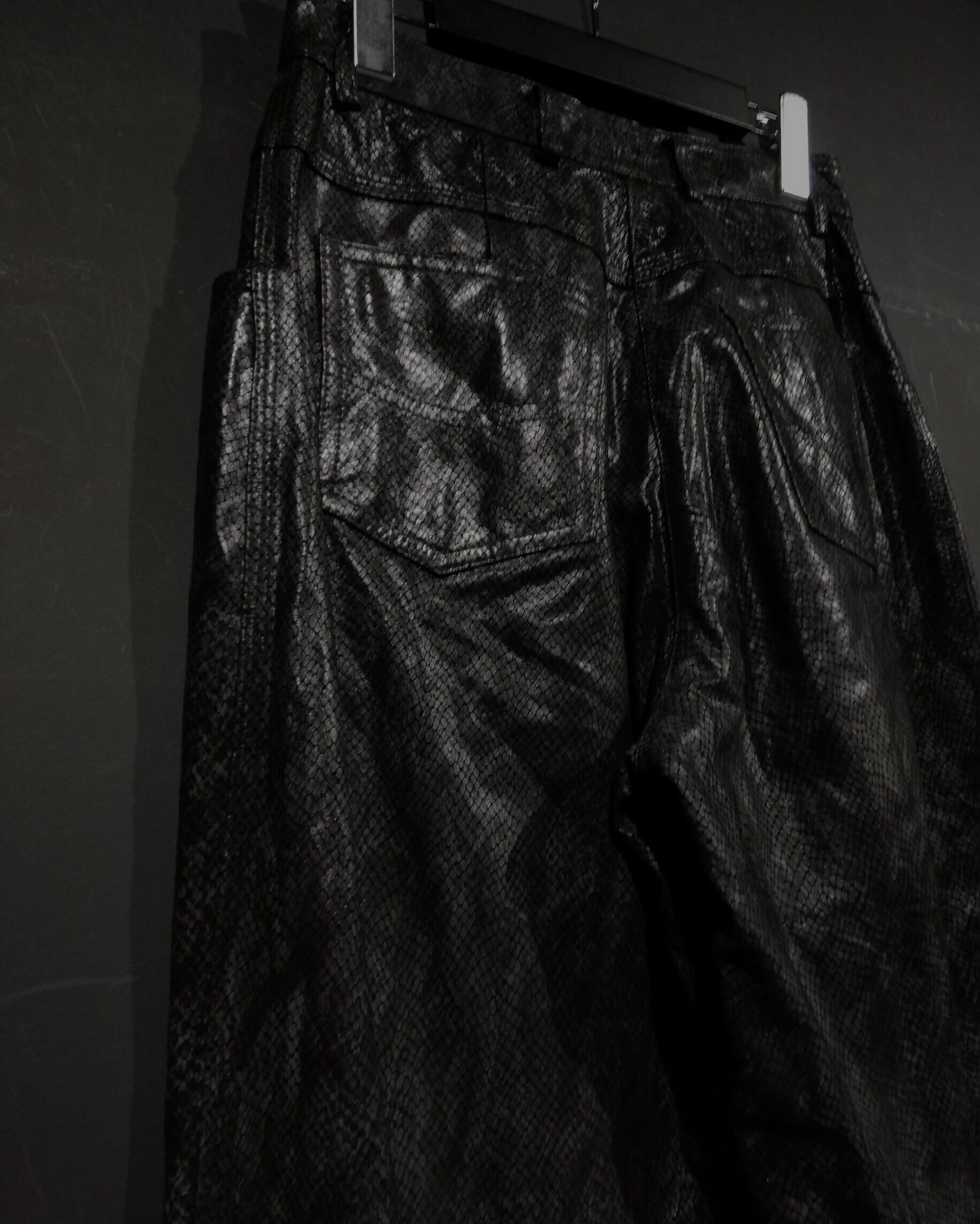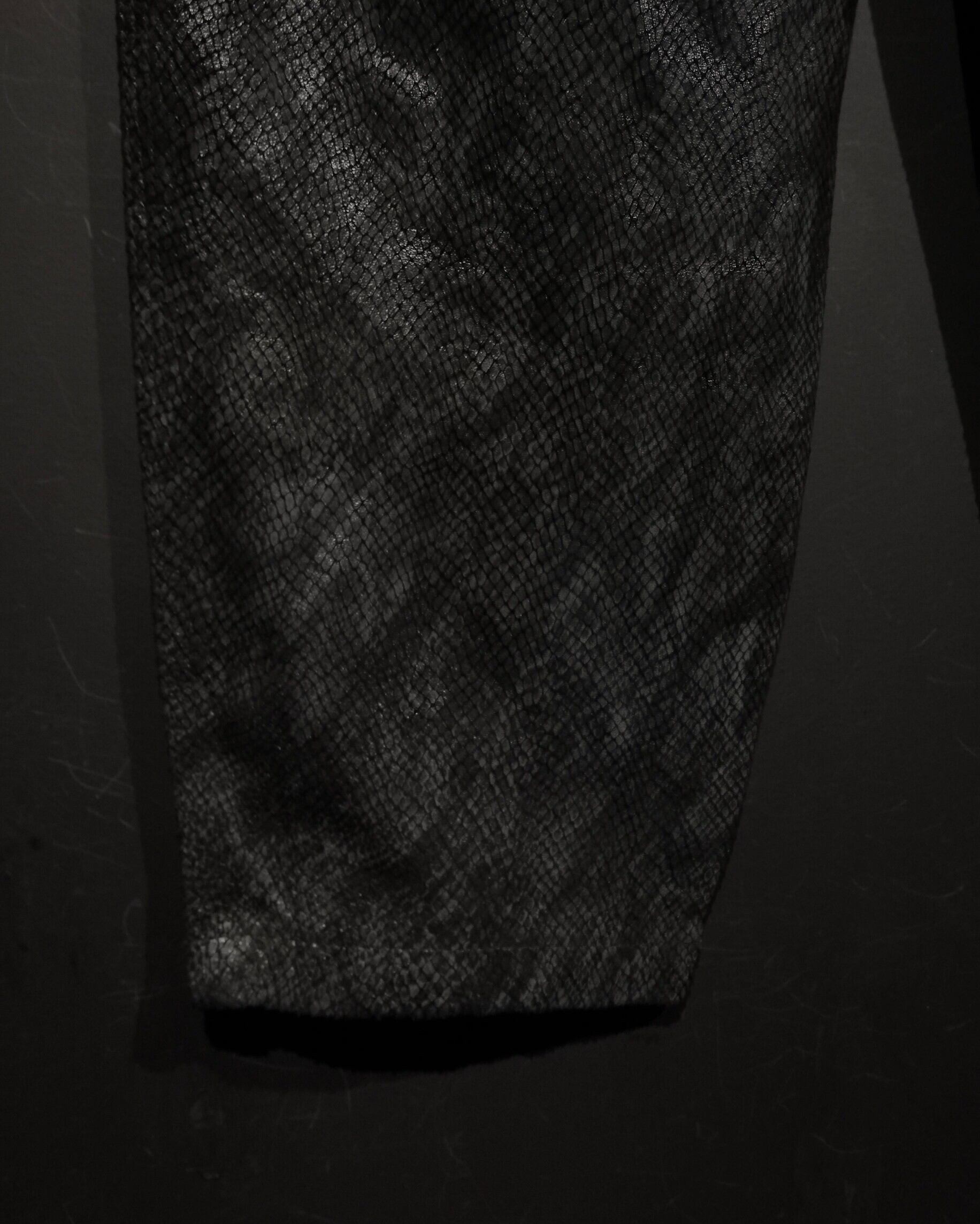 ハリ、しなやかさを兼ね備えたボディに、パイソン柄を載せたレザーパンツ。