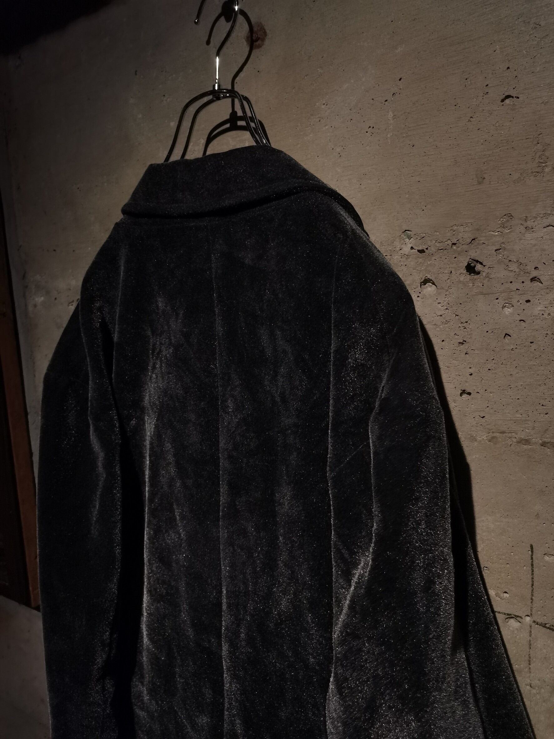 ベロアのように起毛感があるブラックボディに、ハの字のジップポケット、ボディ下部にスラッシュポケットを載せた、ミドルジャケット。